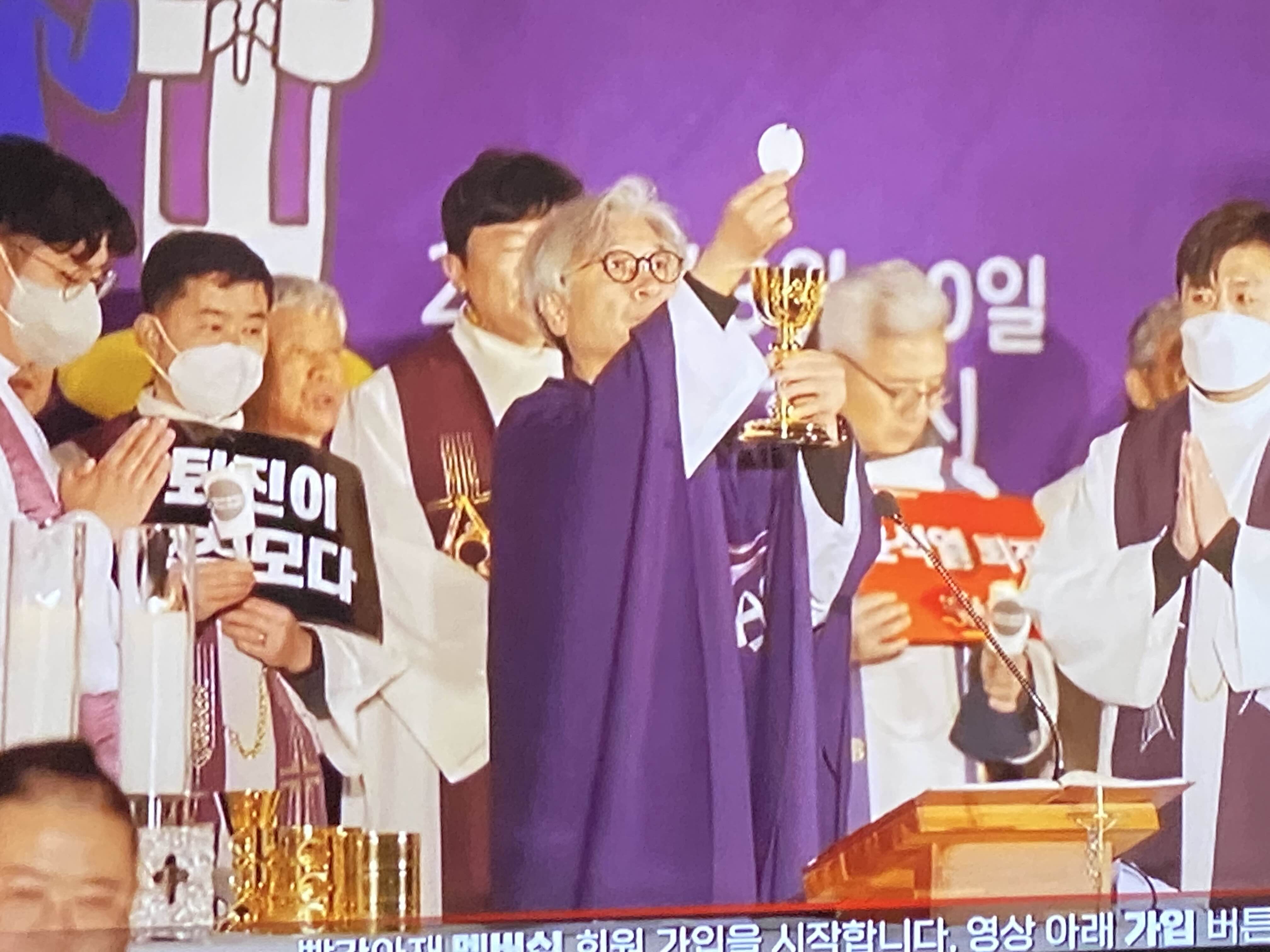 위의 사진들은 올해 3월 20일 전주의 전동성당 부근 풍남문 광장에서 2시간 30분 정도 계속 되었던 시국미사, 김영식 신부님께서 미사를 집전하는 유튜브 방송 장면을 내가 찍은 것이다. <매판 매국 굴욕 굴종 검찰독재 윤석열 퇴진을 명령한다. 민주주의 회복과 평화를 염원하는 시국미사>라는 기치 아래 천주교정의구현전국사제단 신부님들의 강렬한 메시지는 전국적으로 퍼져나갔는데, 그 장면을 시종일관 지켜보면서 그 날의 감동을 일기삼아 티스토리에 기록해 놓기도 했다.