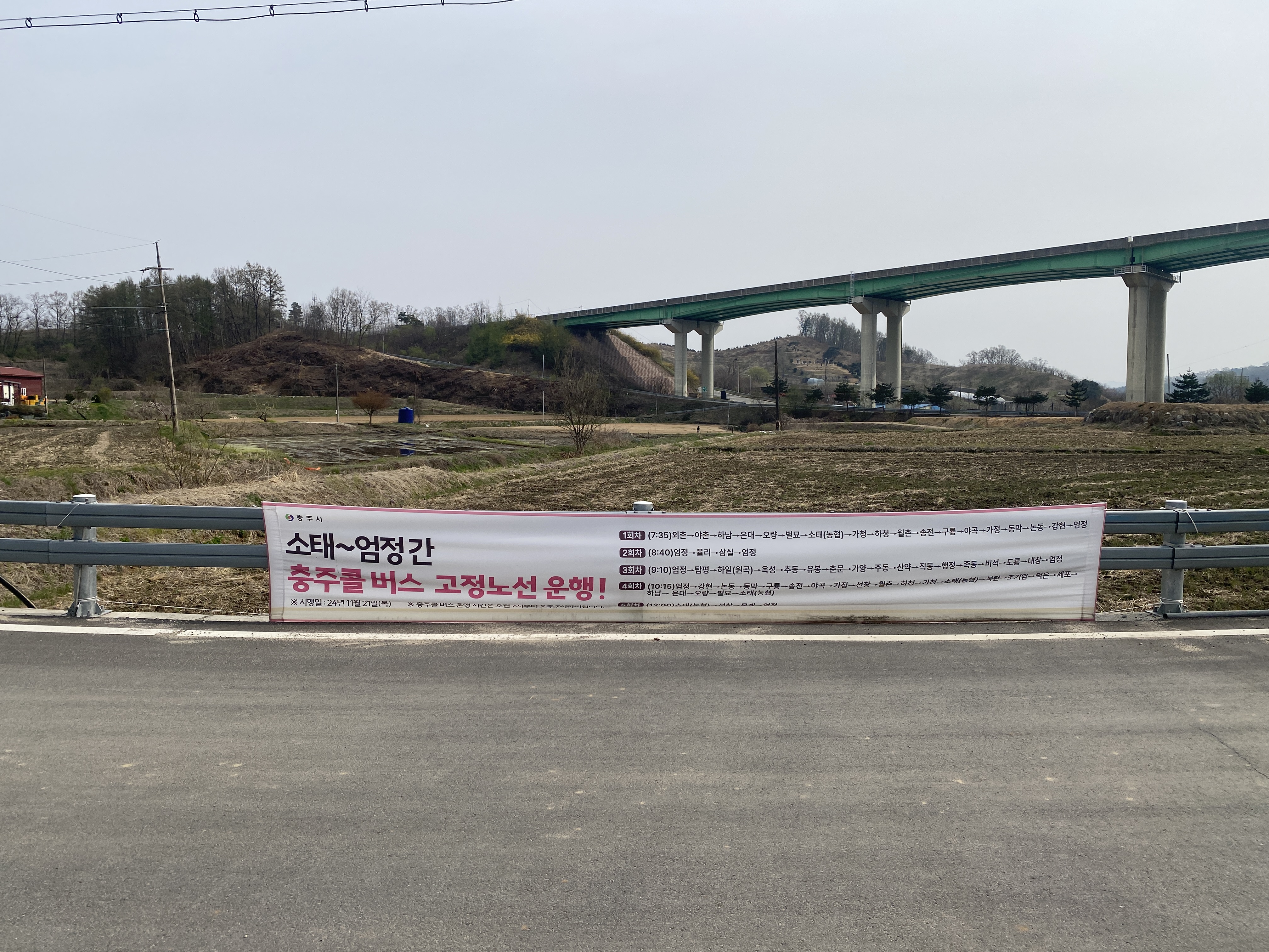 강현마을에서 한 마장 떨어져 있는 마을이름은 '논동마을', 나의 고향 '강현마을'과 이름이 합쳐져서 '논강리'라는 행정구역 이름이 생긴 것이다. '충주시 엄정면 논강리'다. 현수막에 써 있는 '소태'는 내 외갓집 동네가 있는 행정구역 이름이다.