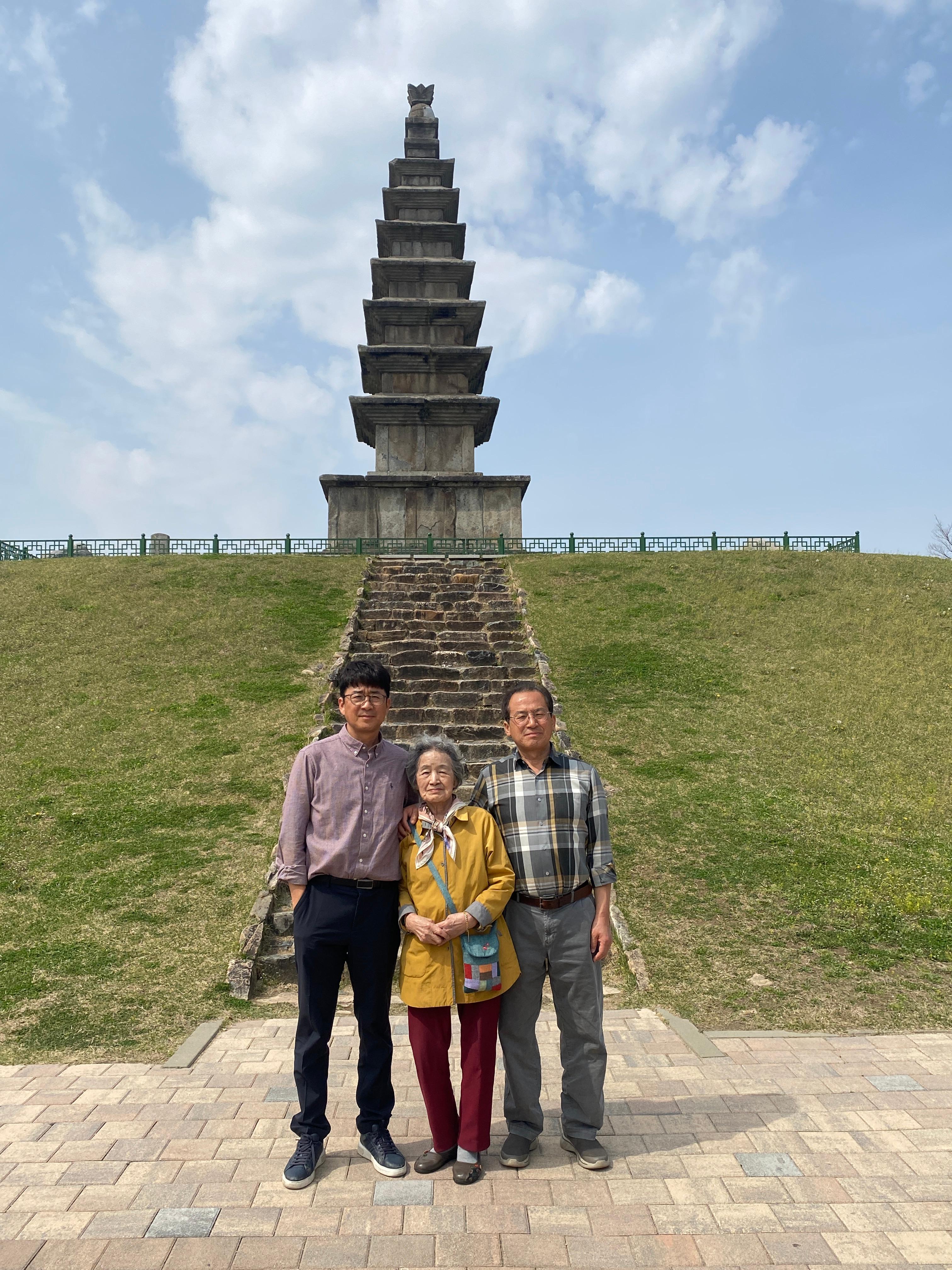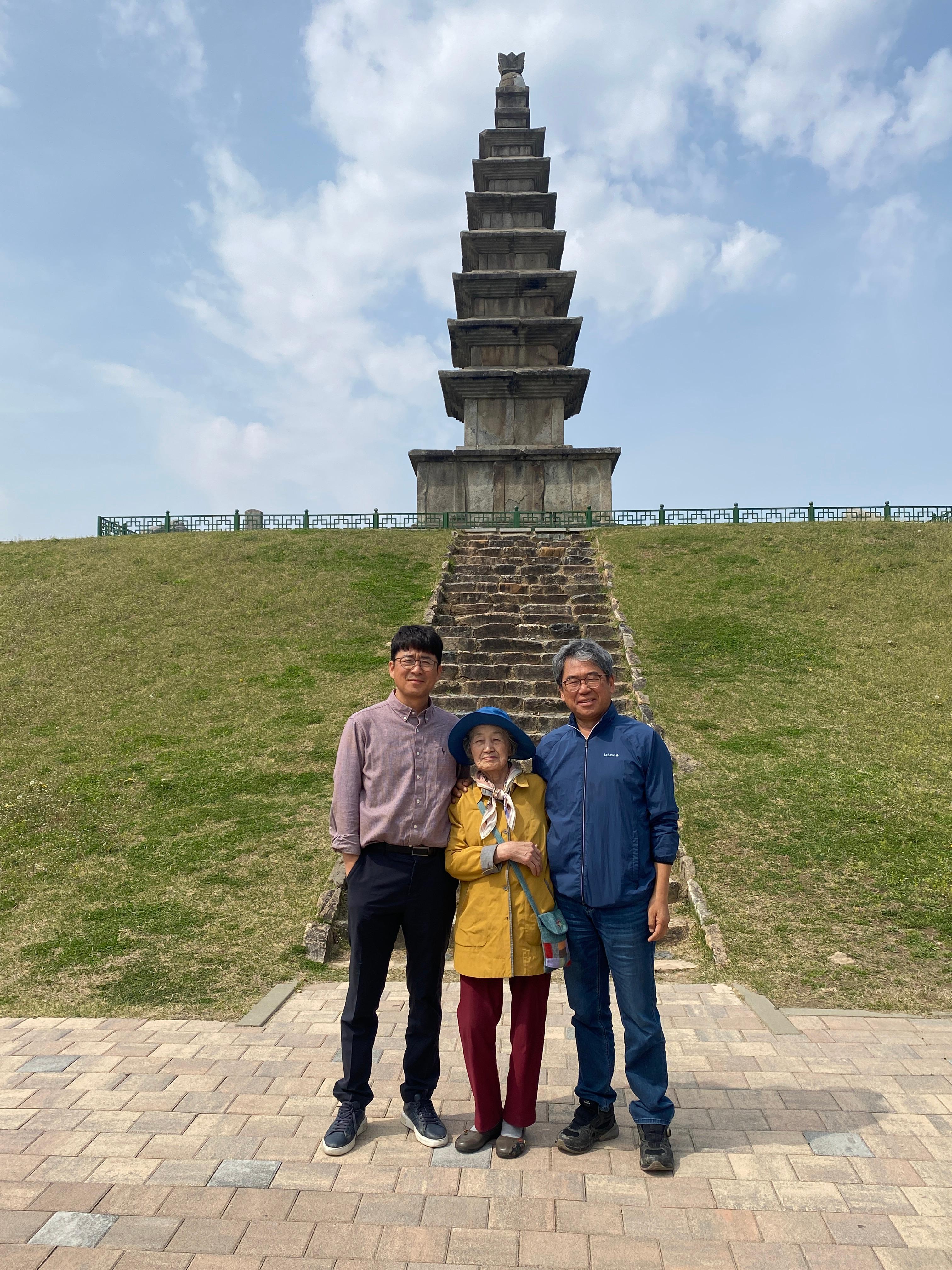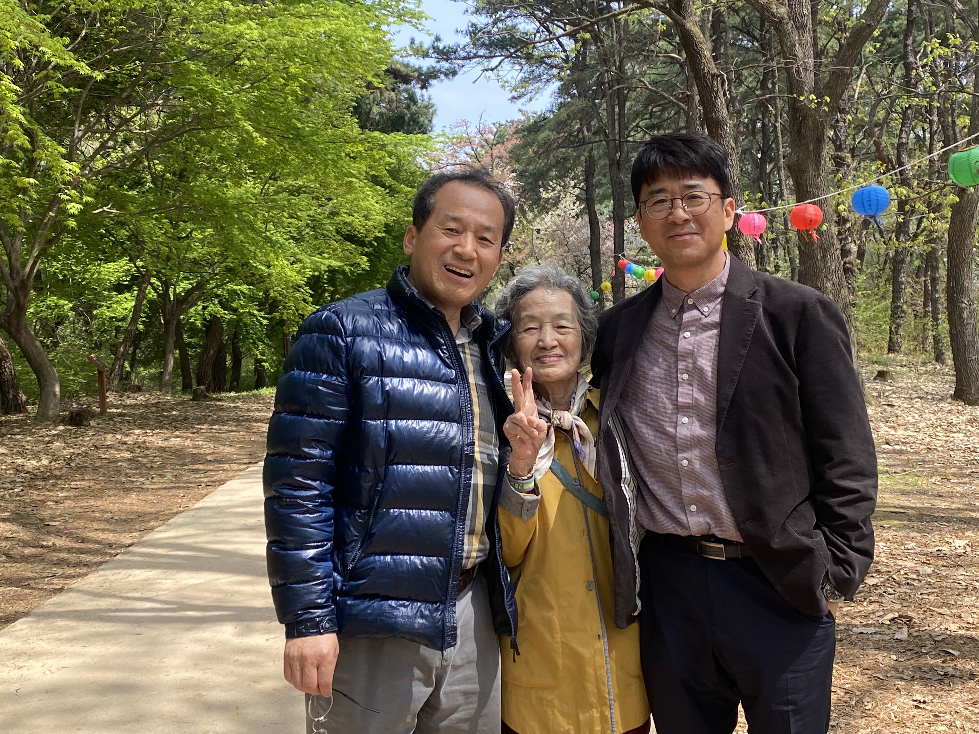 몇 년 전에 아내와 함께 찍었던 곳이기도 한 조각작품 앞에서 어머니는 두 아들과 함께 기분좋게 기념사진 한 장을 남겼다.