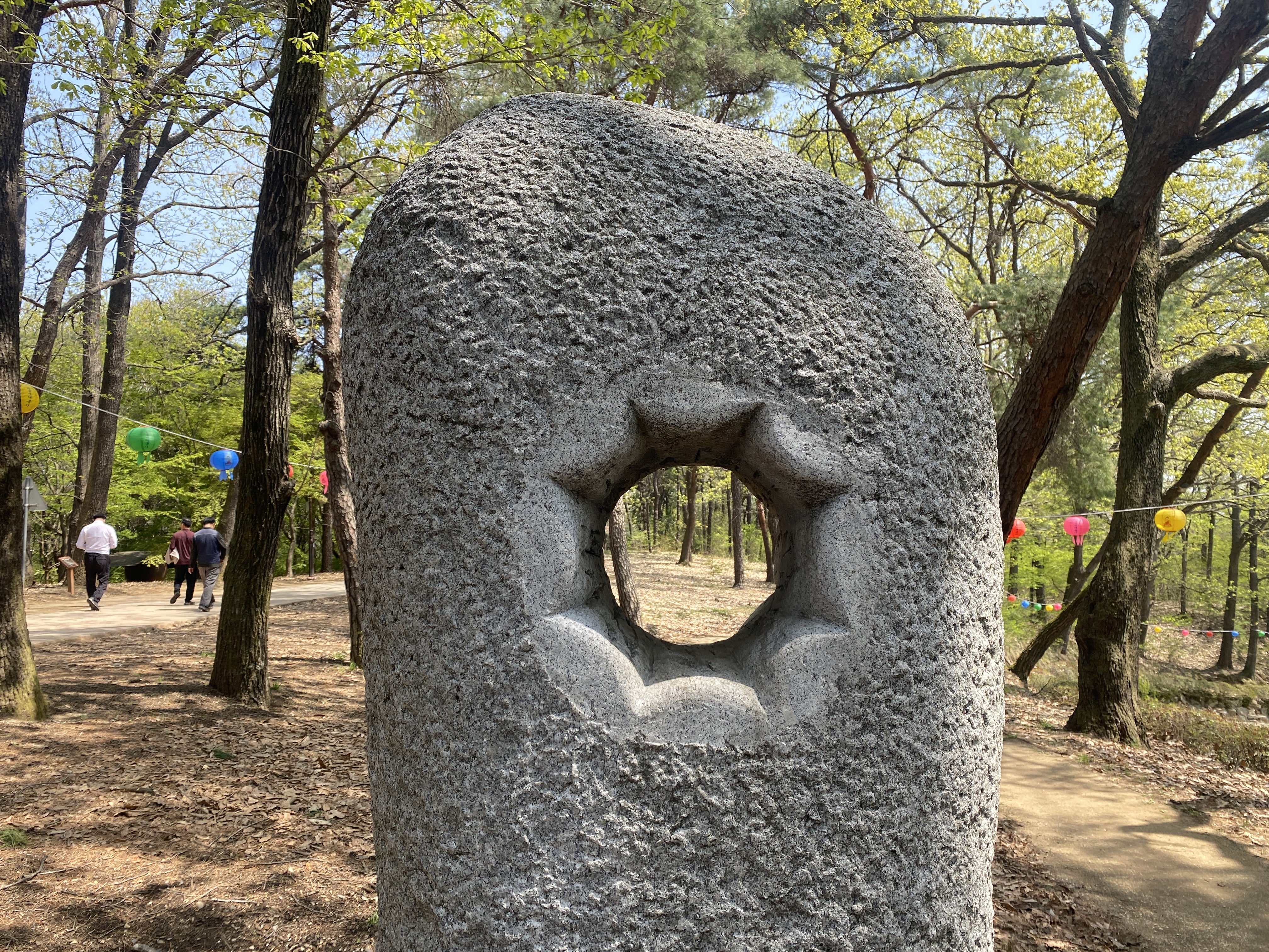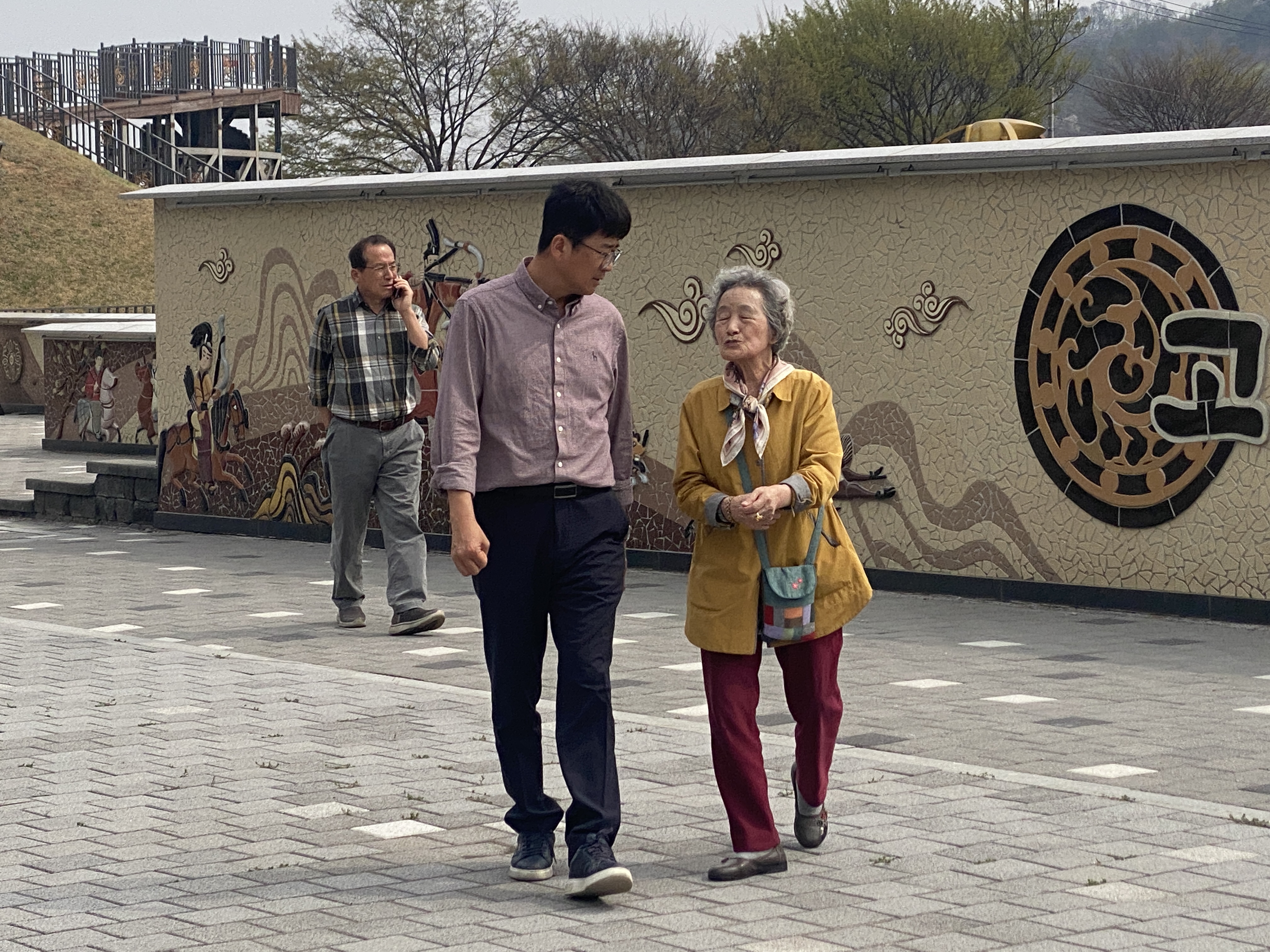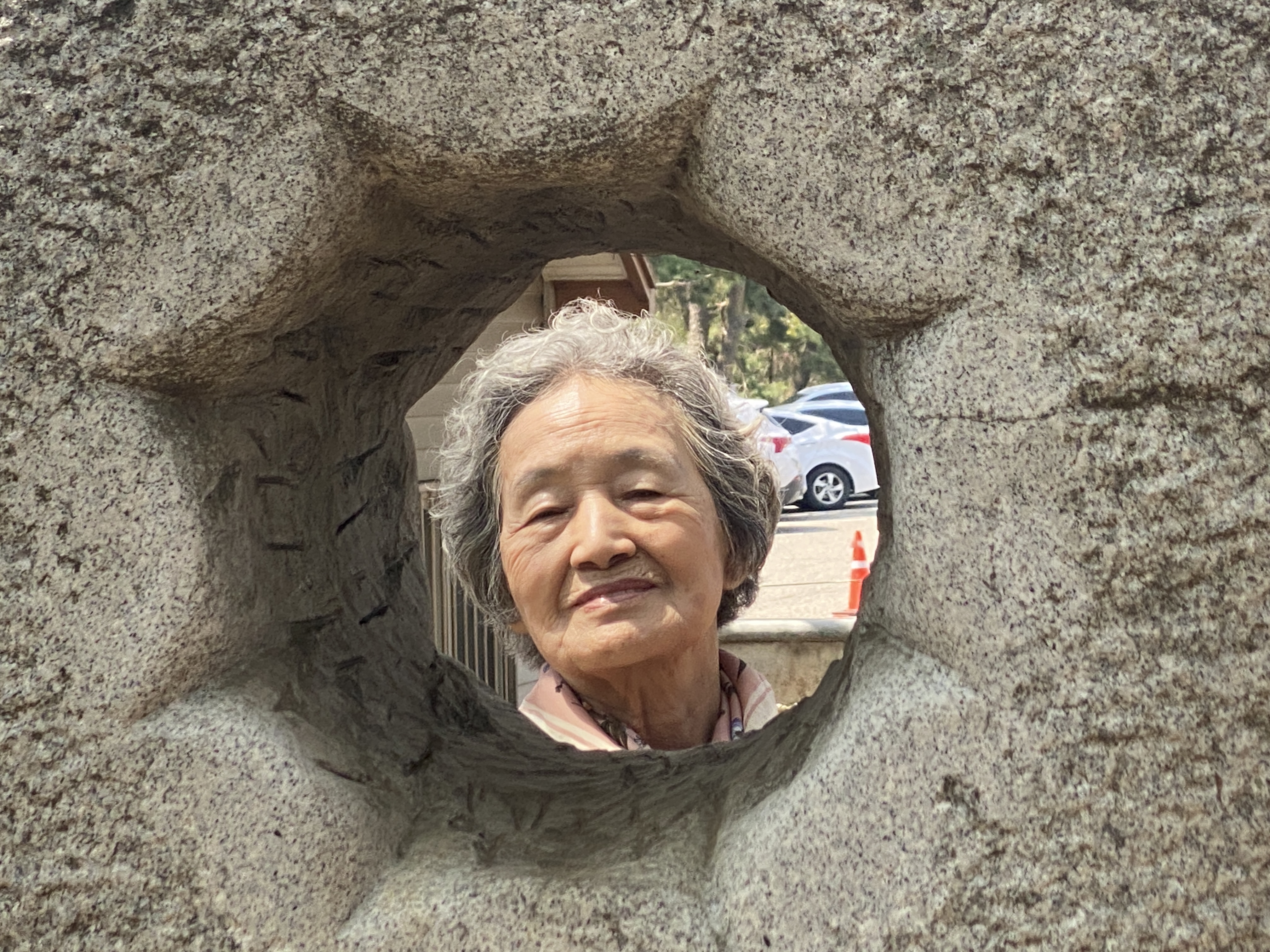 몇 년 전에 아내와 함께 찍었던 곳이기도 한 조각작품 앞에서 어머니는 두 아들과 함께 기분좋게 기념사진 한 장을 남겼다.