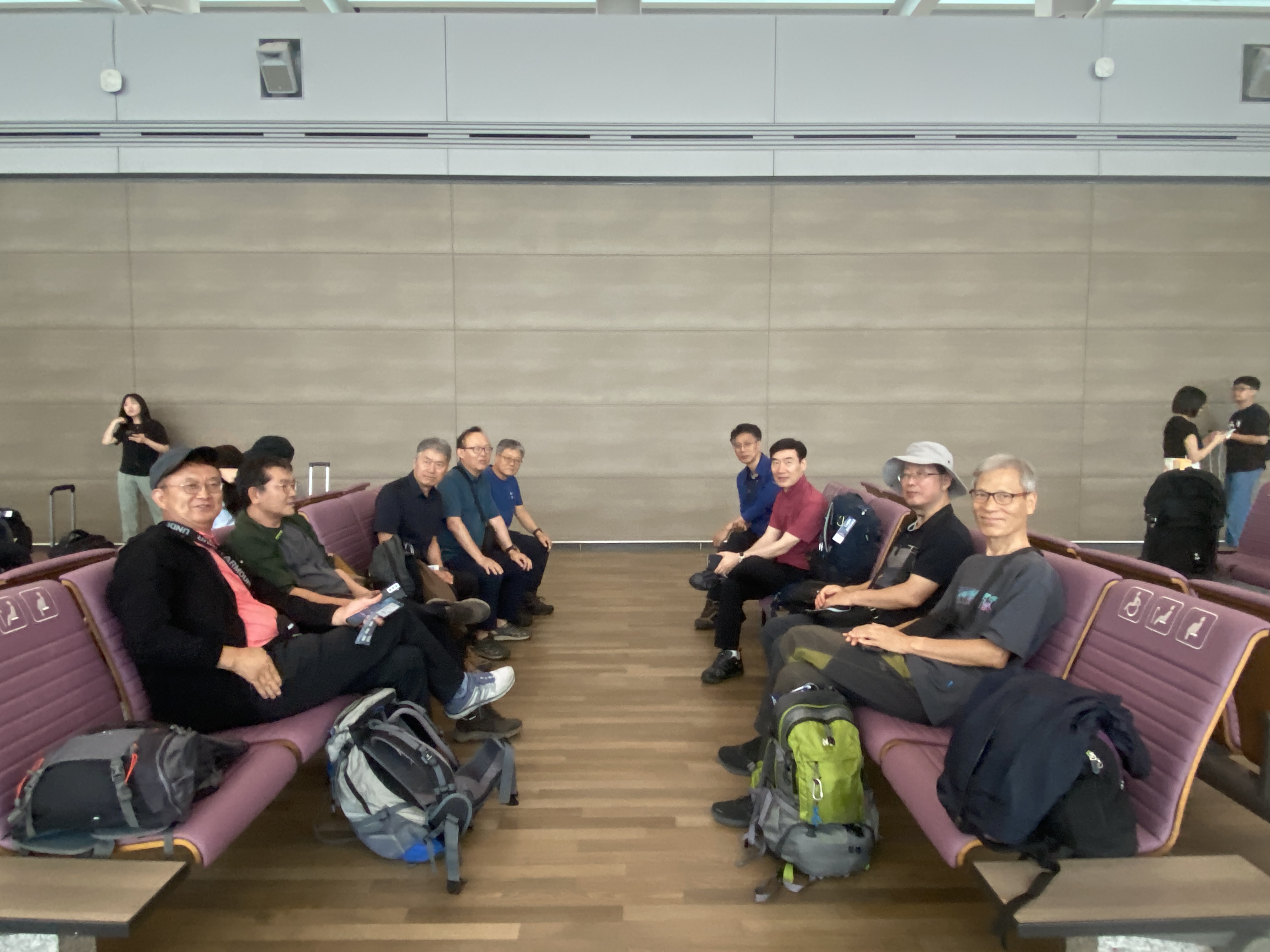 제네바로 향하기 직전, 몽블랑 트레킹팀의 환한 미소를 담아두기로 한다. 상당한 시간을 비행기 안에서 보내야 하는 멀고 먼 여행길일지언정 가슴 설레게 하는 그 무엇이 있어서 우리는 웬만한 어려움 정도는 다 받아들일 수 있다. 올해 초 히말라야 안나푸르나 베이스 캠프 트레킹에 참여했던 6명의 용사들(창열, 휘동, 태국, 춘수, 정우, 권주)과 새롭게 합류한 6명(순박, 정태, 상근, 명배, 원룡, 항도)의 건각들이 이렇게 자리를 차지하고 있으니 포스가 장난이 아니다. 다 일가를 이룬 멋쟁이들이니 누구인들 몽블랑 트레킹에 대한 기대가 크지 않으랴! 일단 목적지인 스위스 제네바에 도착하자마자 시작되는 여행에 대비해서 비행기 안에서나마 수면을 충분히 취할 필요가 있을 것이다.