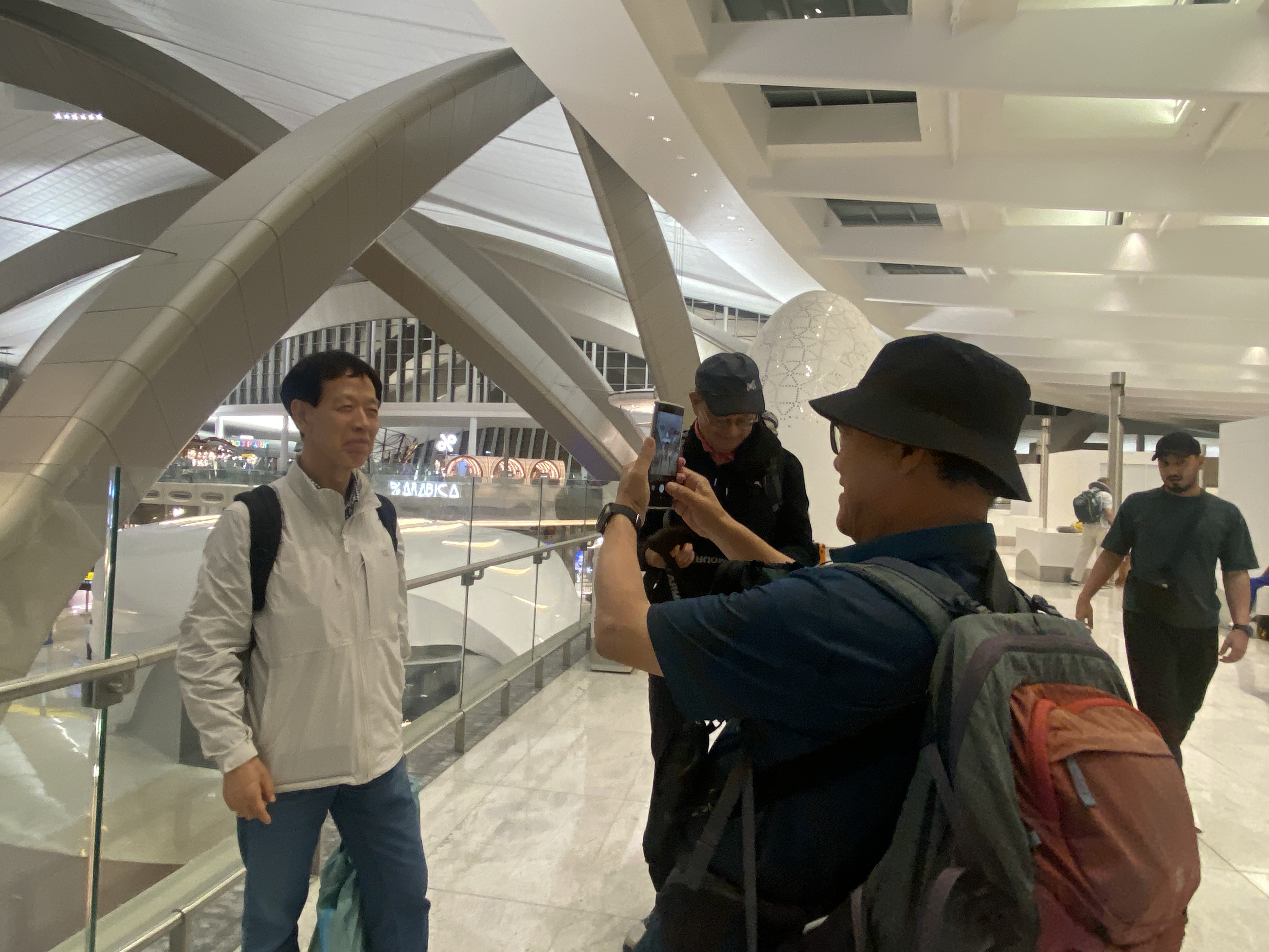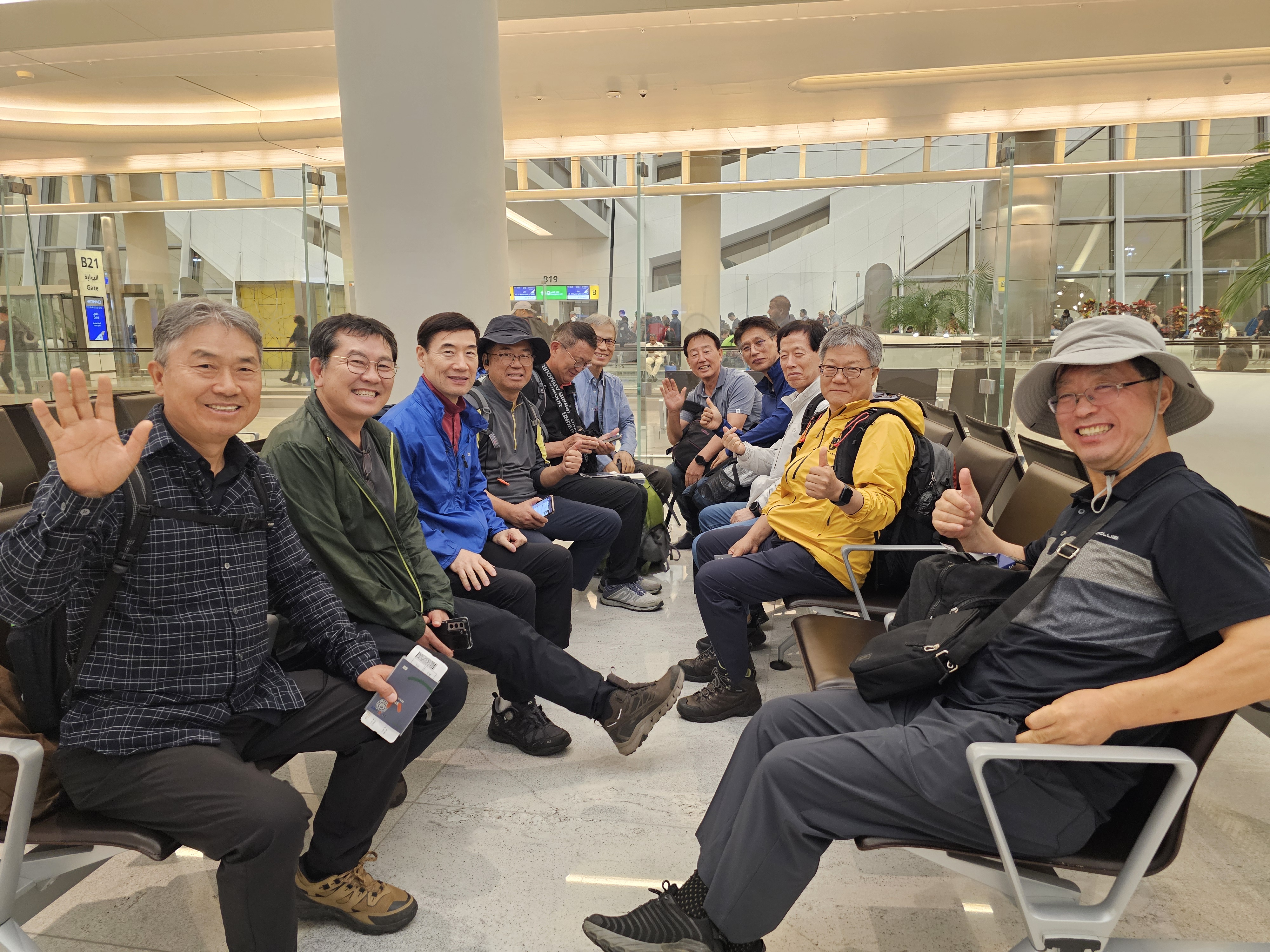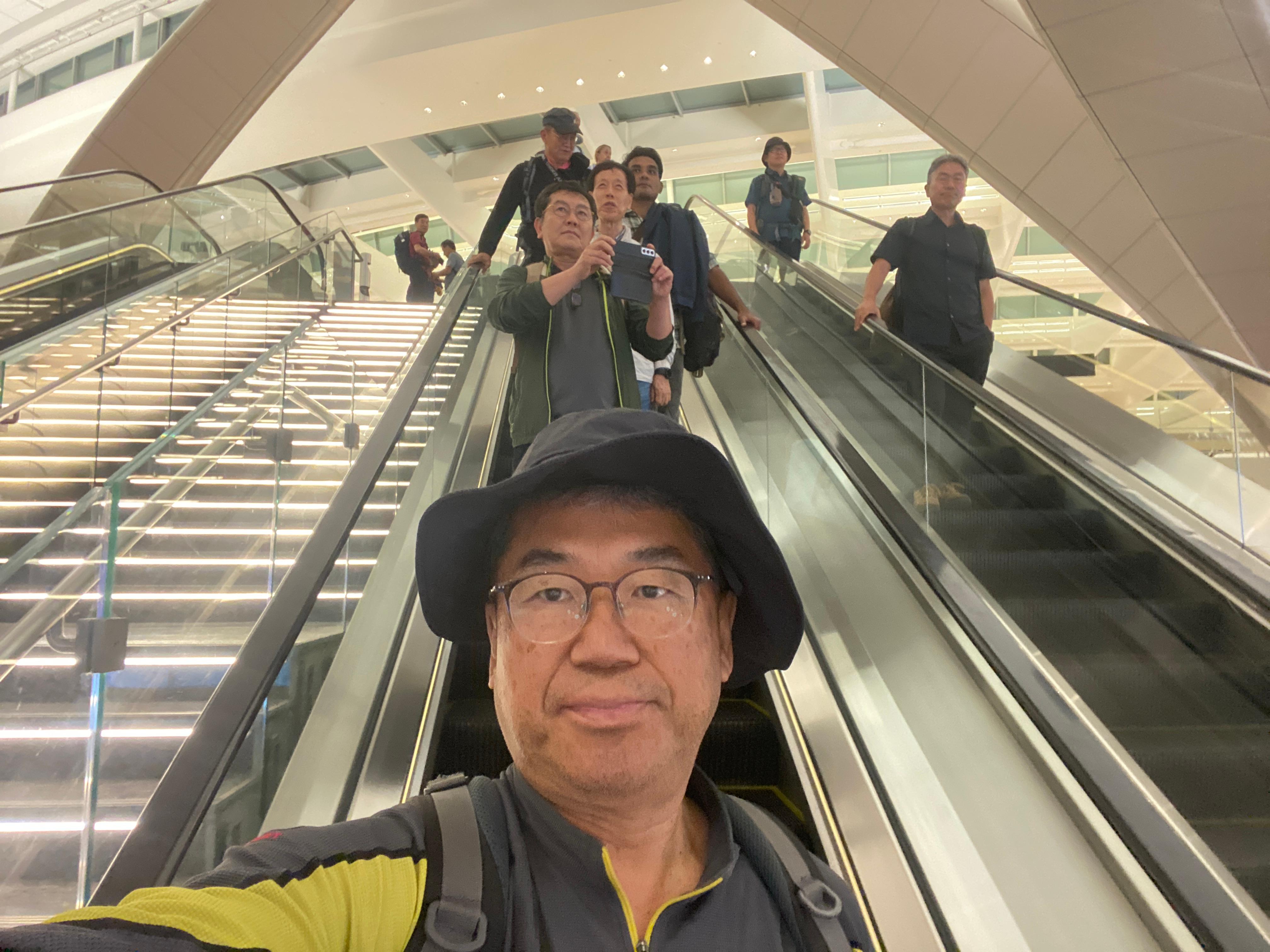 하루 일찍 먼저 출발해야 했던 중동의 사업가, 항도는 중간 경유지인 UAE 아부다비 공항에 도착해서 우리를 기다리고 있다가 만났다. 인천 공항에서 11명의 머그샷을 찍어놓았던 휘동이가 이곳 아부다비에서 마지막으로 항도의 머그샷까지 찍음으로써 12명 모두의 머그샷이 완성되었고, 고딩 단톡인 무애산방에 곧바로 전송되었다.