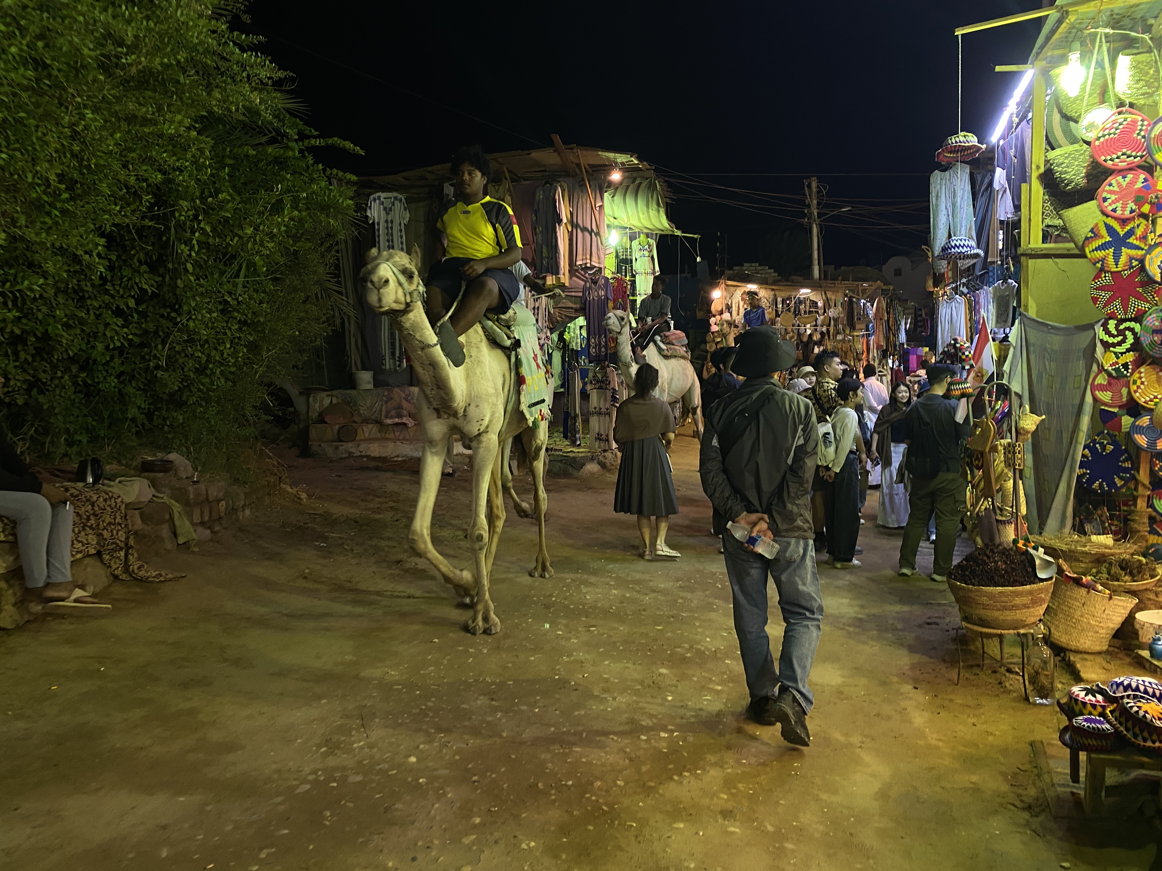 누비안 마을 상가를 오가는 낙타를 탄 사람들, 저들이 바로 누비아인들일 텐데, 외모적 특징을 하나 발견했다면 구릿빛 피부에 긴 눈썹, 선명한 눈매와 입술, 짧은 곱슬머리 머리 정도가 아닐까 하는 생각이 들었다.