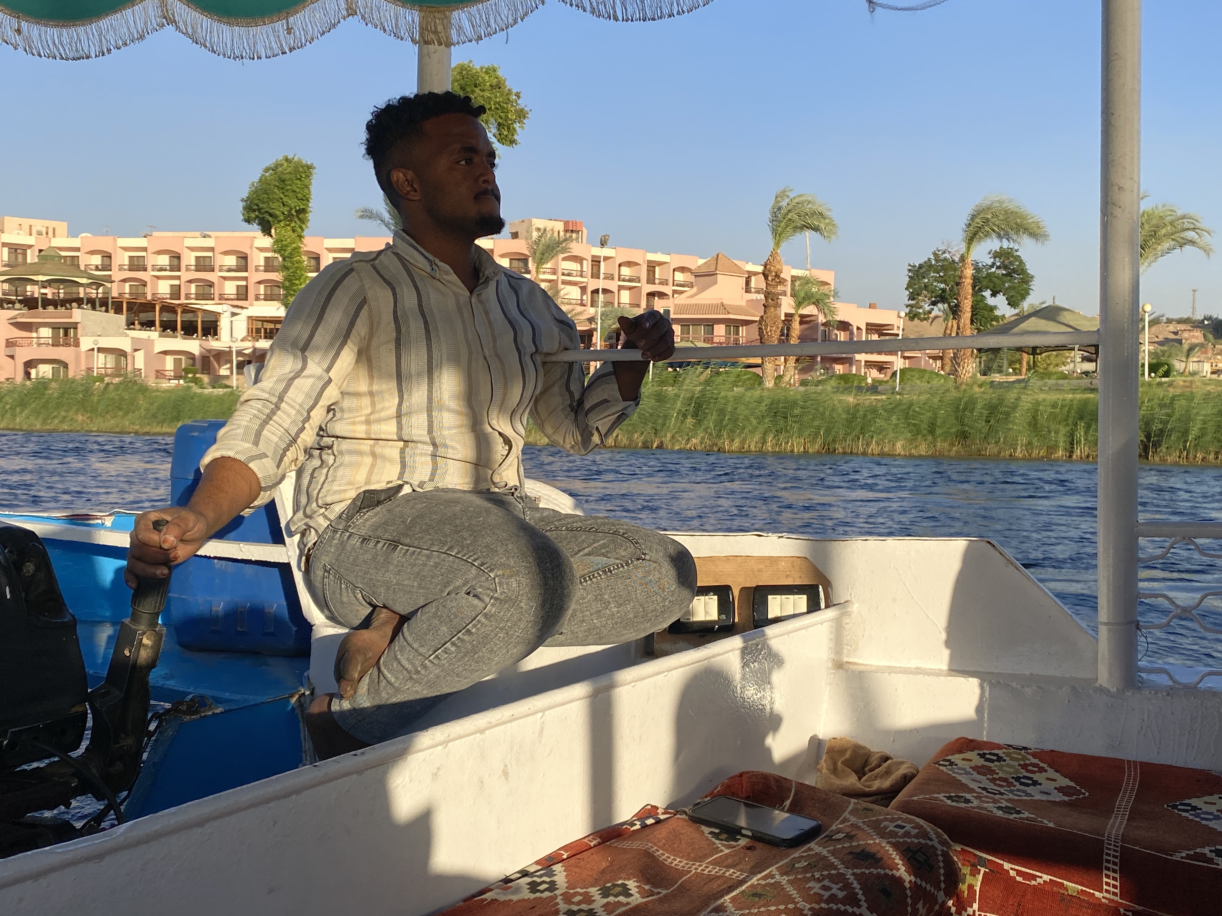 몸집 좋은 뱃사공의 여유로움과 운전 능력에 눈길이 저절로 갔다. 크루즈가 정박하고 있는 부두와 누비안 마을을 오가면서 관광객들을 태워주는 서비스업 종사자일테지만 사공의 포스가 대단하다.
