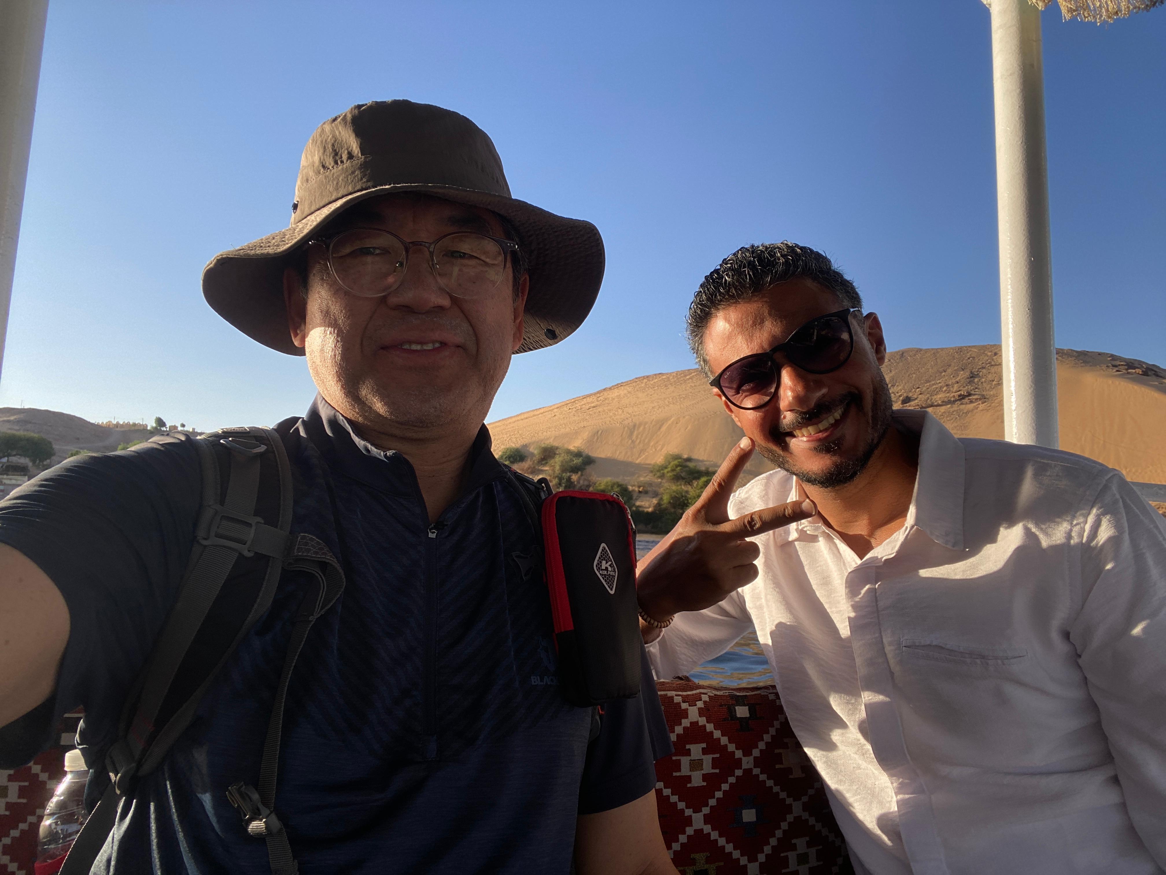 이집트 한낮의 날씨가 따갑긴 해도 그늘 속에 들어가면 시원한지라, 이 때는 정우가 어느새 준비한 저 가벼운 파라솔이 제격일지 모른다. 보기와 다르게 준비성이 참 좋은 정우다.^^ 퇴임 이후 틈나는 대로 지구촌 부부 여행을 진행하고 있어서 머지않아 5대양 6대주를 두루두루 섭렵하는 대기록을 세울 수 있으리라 믿고 기대한다. 정우 화이팅!!