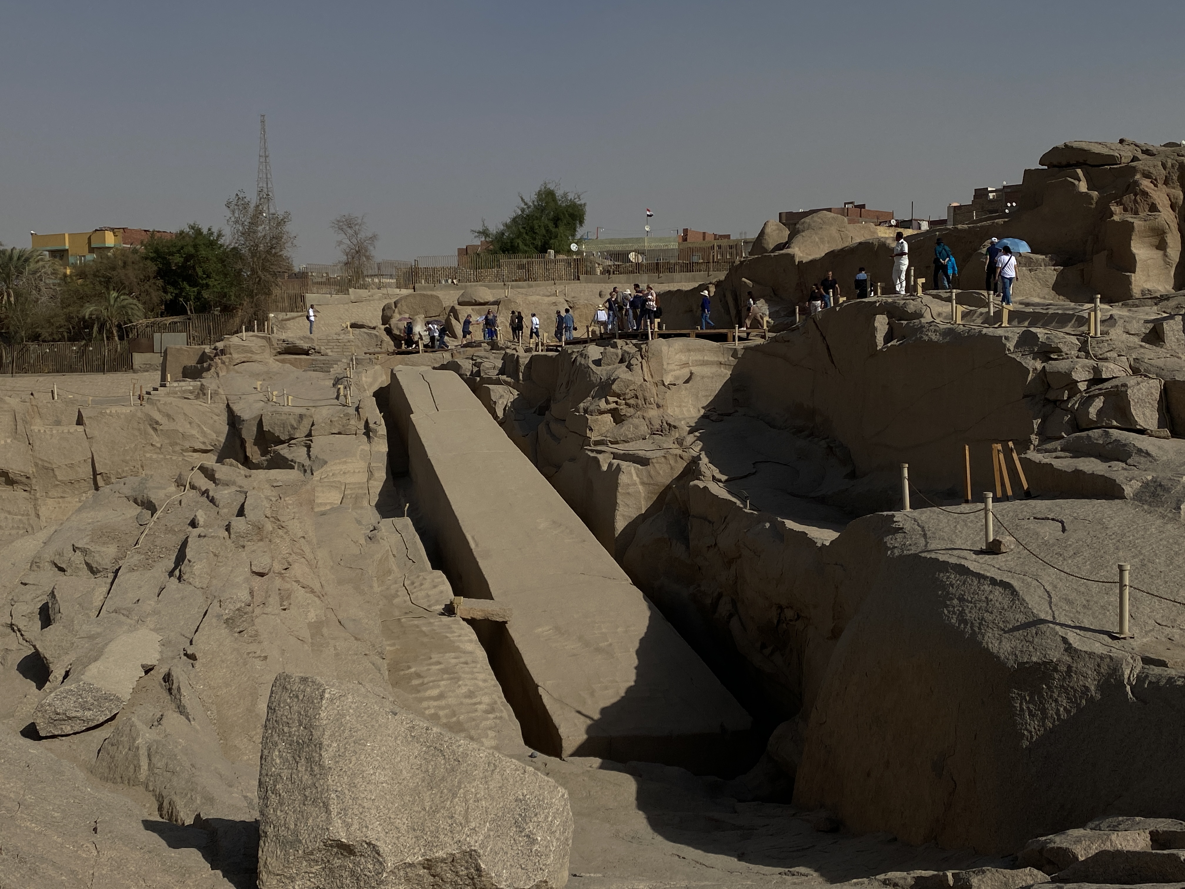 우리가 도착한 곳은 미완성 오벨리스크가 길게 누워있는 곳이다. 거대한 화강암의 오벨리스크를 만들었던 4000년 전의 흔적이 있는 곳이다. 아스완 지역은 고대 이집트에서는 화강암 채석장으로 유명해서 채석장에서 화강암을 잘라 멀리까지 운반하여 피라미드, 신전, 오벨리스크 등의 재료로 사용한 것으로 알려져 있다.