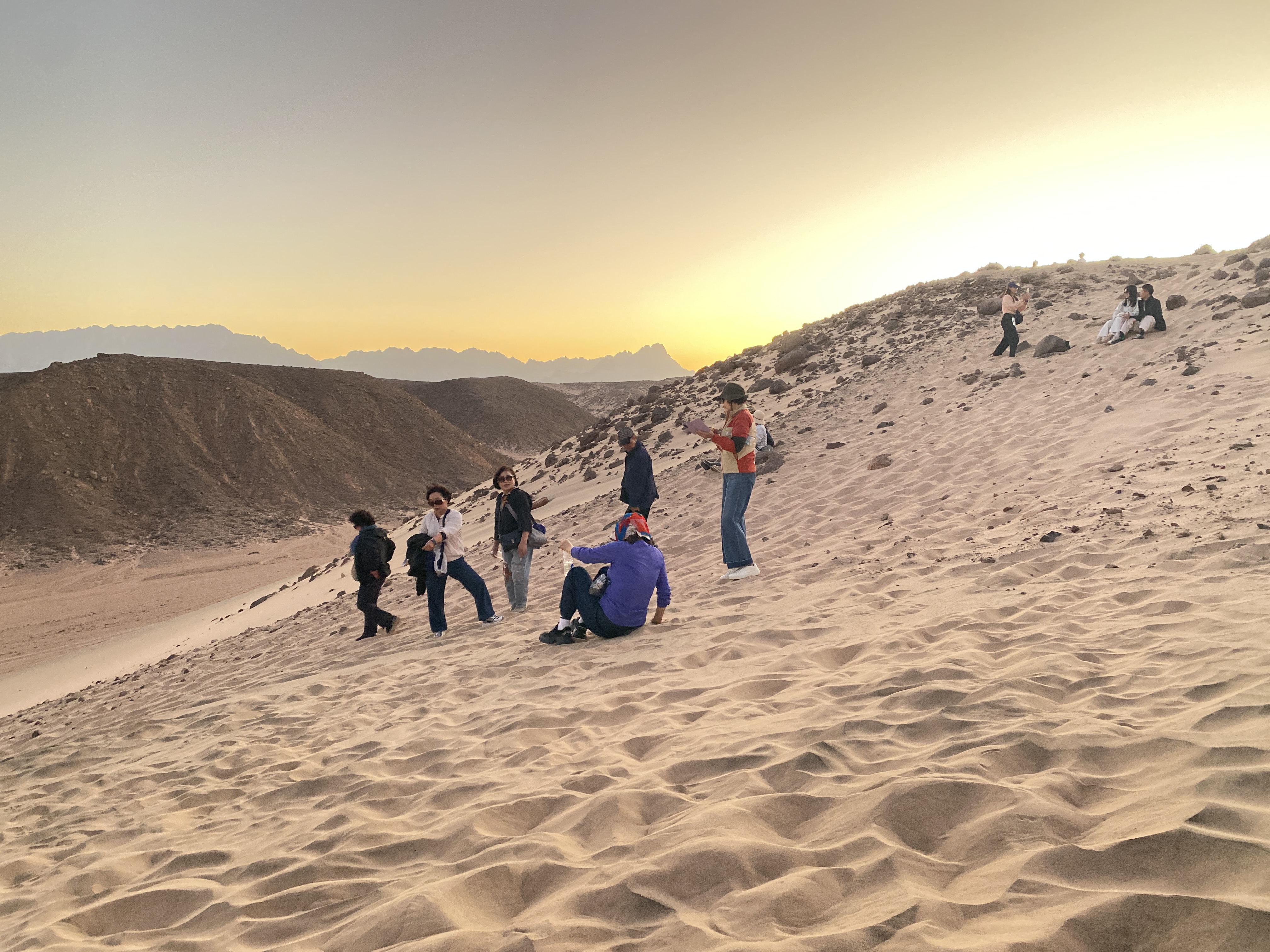 사막의 모래언덕, 사구에 올라 이렇게 사방을 조망할 수 있으니 그 얼마나 즐거운가. 우리 모습을 놓치지 않고 사진을 찍어주려는 유진씨가 참 고맙다. 네 친구가 먼나라 이집트까지 와서 이렇게 즐겁게 어울릴 수 있어서 마냥 좋기만 한 순간들을 덕분에 사진으로나마 기록하고 담아둘 수 있으니 얼마나 감사한가!