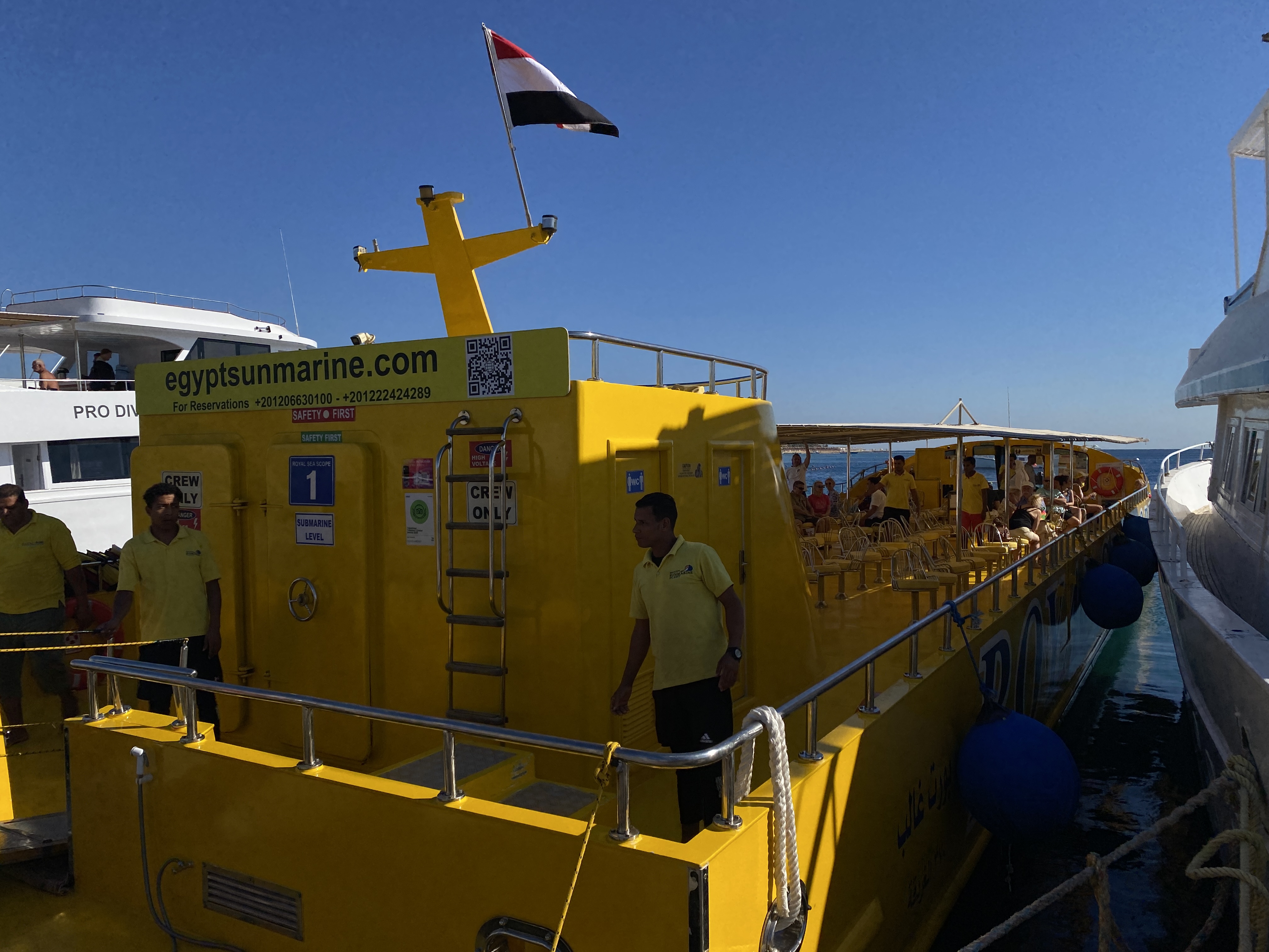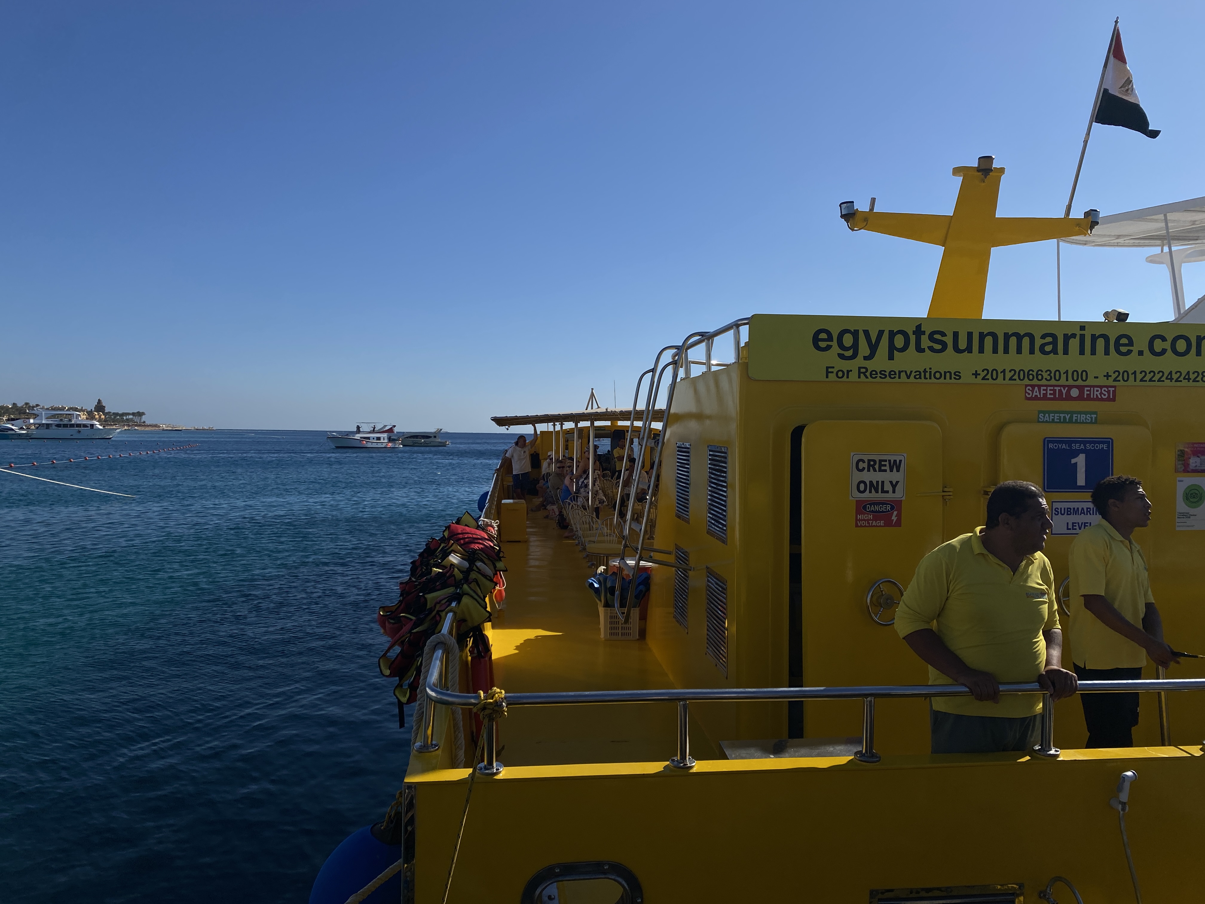 아침 식사 후 호텔 밖에 대기하고 있던 몇 대의 봉고차에 올라 옵션여행으로 선택한 반잠수함 체험을 위해 선착장으로 갔다. 숙소에서 30분 정도는 달린 것 같다. 후루가다는 계획된 휴양도시이고 유럽과 비교적 가까워서 유럽인들이 많이 찾는 도시인가 보다. 이곳을 관광 중심지로 부상시킨 투명하게 빛나는 바닷물은 다이버들을 유혹하고 세계적인 명성을 떨치고 있는 홍해의 산호초와 희귀 어종을 즐기기 위한 수상 스포츠의 천국으로 알려져 있다고 한다.