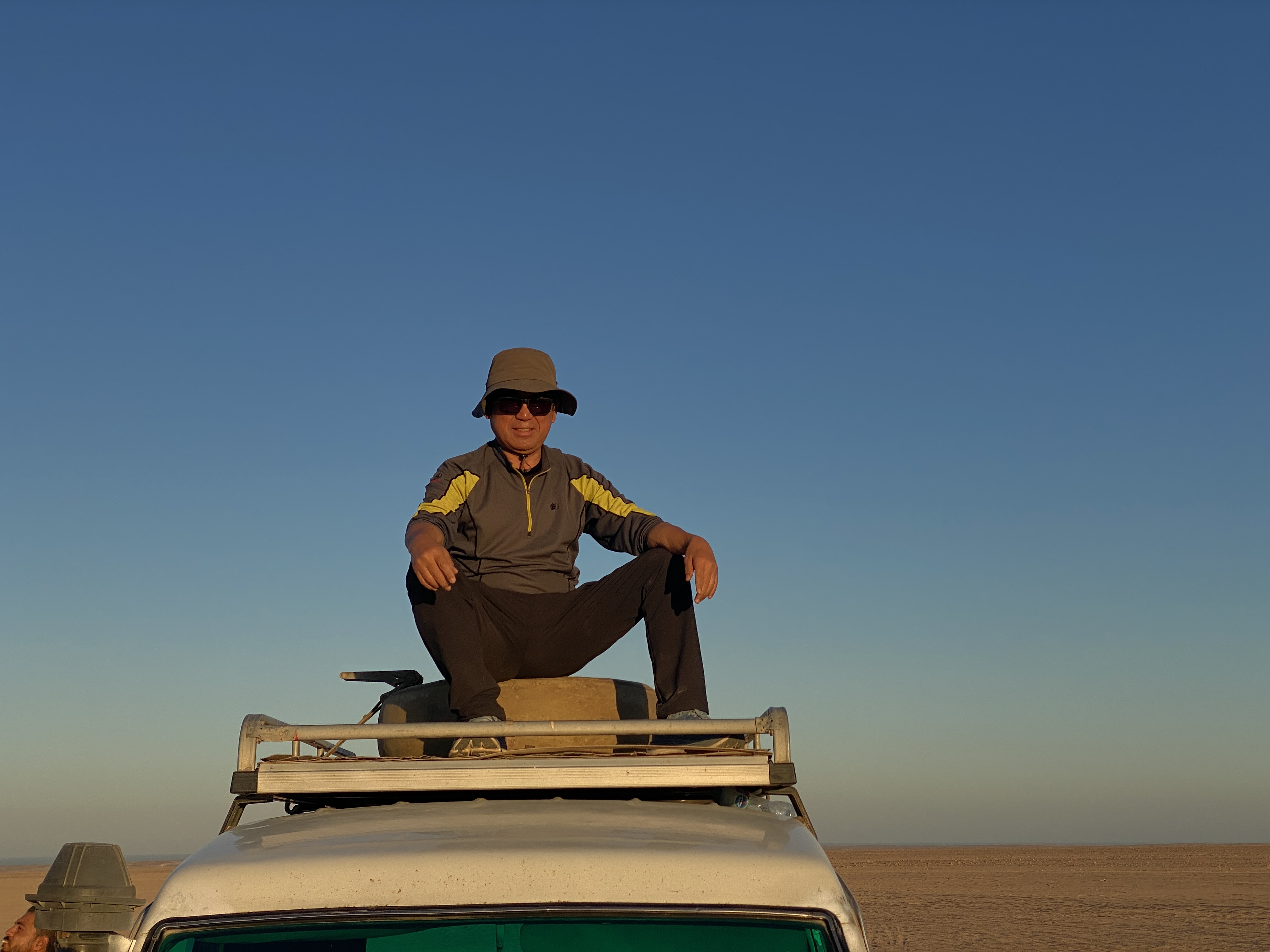 어느 한 지점에 차를 세우더니 짚차 위로 올라가서 포즈를 취해 보라는 운전기사의 권유를 받고, 사진을 찍기 위해 생전 처음 짚차의 지붕에까지 올라갔다. 서 있으려니 몸이 흔들리고 어지러워 그냥 점잖게 앉아서 한 장 찍기로 했다.