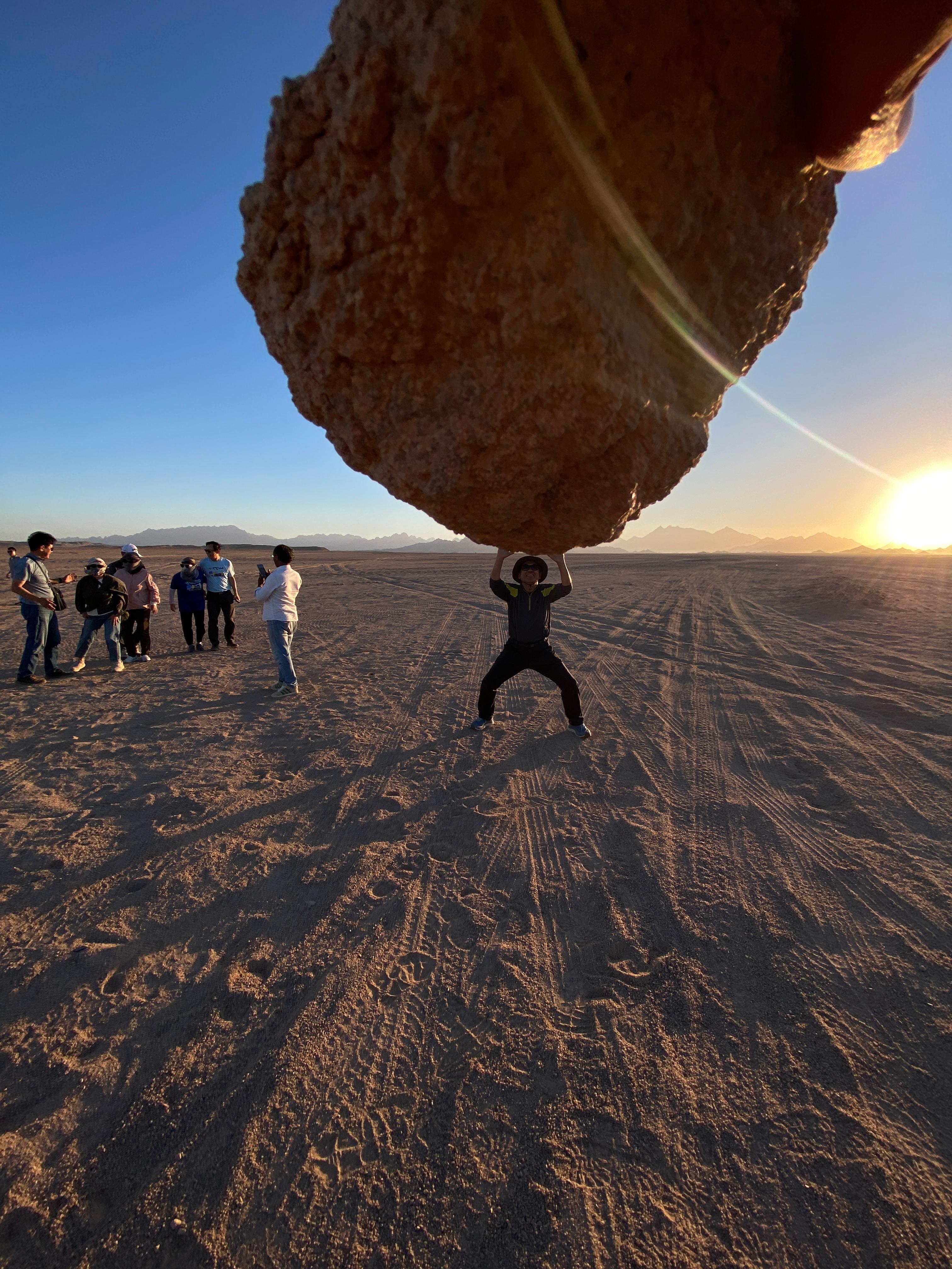 이 사진도 운전기사의 연출된 사진이다. 과장이 심하긴 해도 그냥 봐 줄만 하다. 힘좋은 헤라클라스 흉내를 잠시 해 본 것에 만족한다. 왼쪽의 일행들이 놀라운 듯 바라본다면 격에 어울리는데, 다들 아무런 관심이 없으니.....