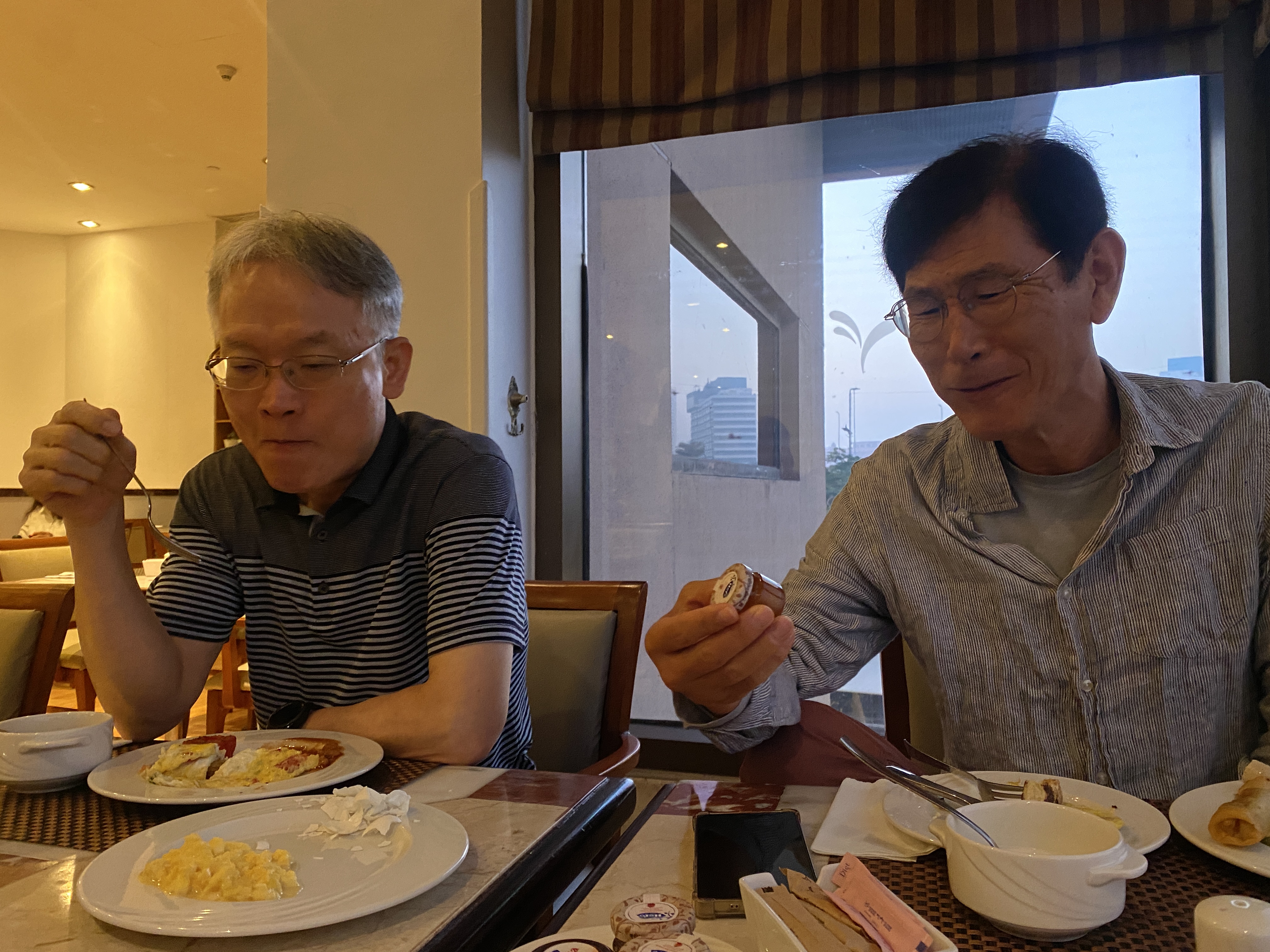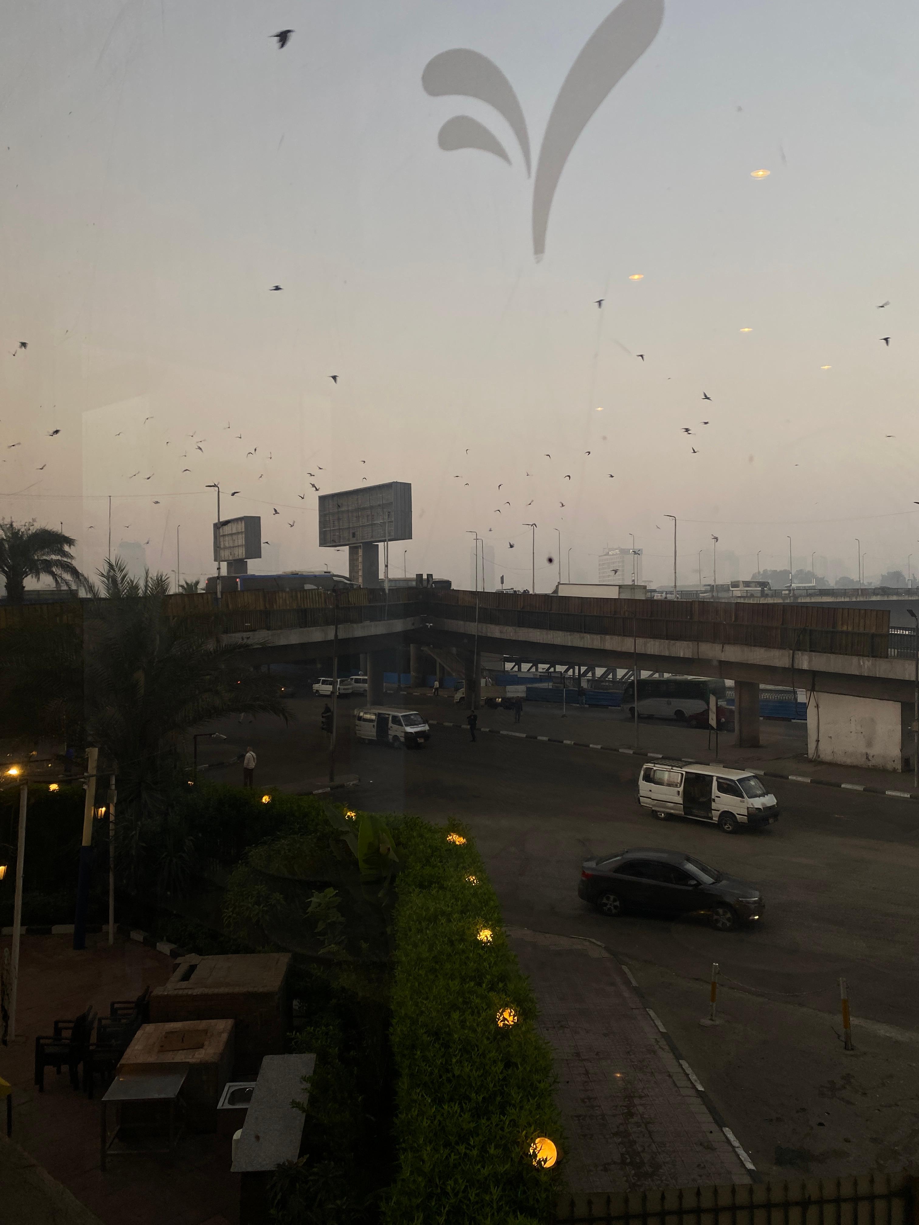 람세스 힐튼호텔 레스토랑에 앉아 친구들과 아침 식사 중인데, 창밖의 비둘기들도 떼지어 날면서 먹이사냥에 바쁘다.