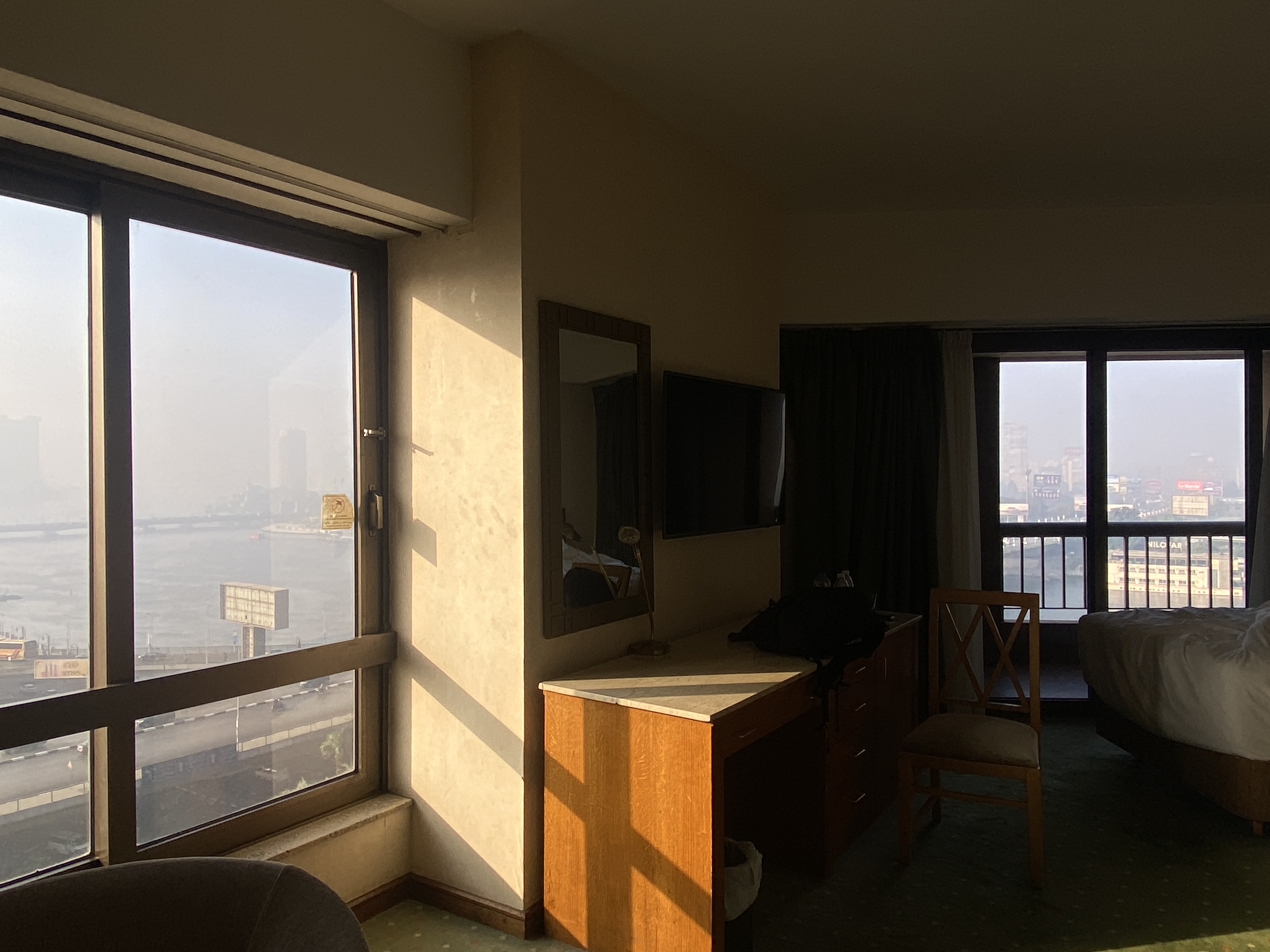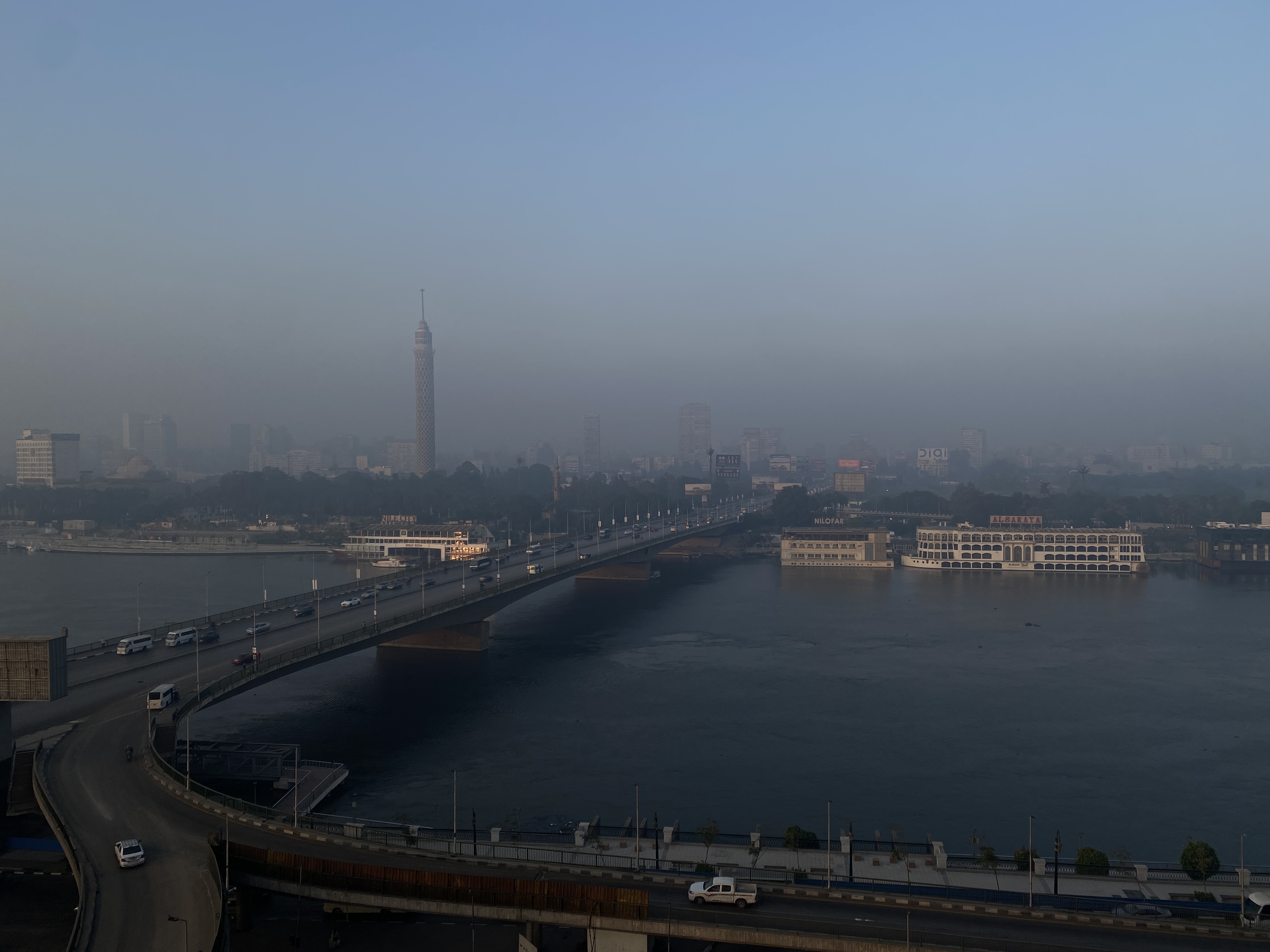 8층의 숙소에서 내려다본 나일강, 수천 년을 흘러왔을 테지만 늘 똑같은 모습이 아닐까 싶다. 며칠 전의 3일이 똑같았고 오늘 보는 나일강이 그 전과 똑같아 보인다. 그 주변의 환경도 별다른 변화가 없다. 여전히 저 다리 위로 차와 사람들이 오가고, 강물 위로 크고 작은 배들이 늘 그렇게 떠 있을 뿐.