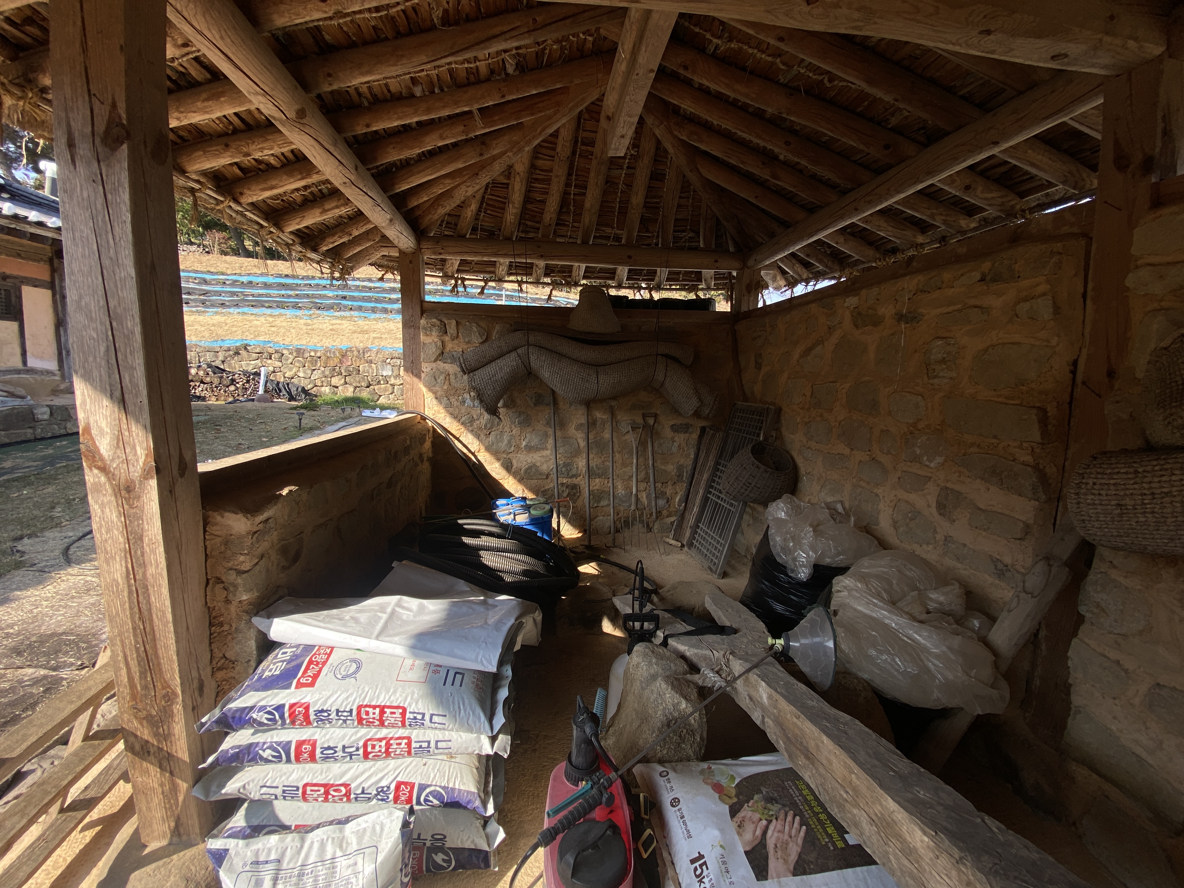 거의 보기 힘든 디딜방아가 유일재 종택에는 남아 있다.