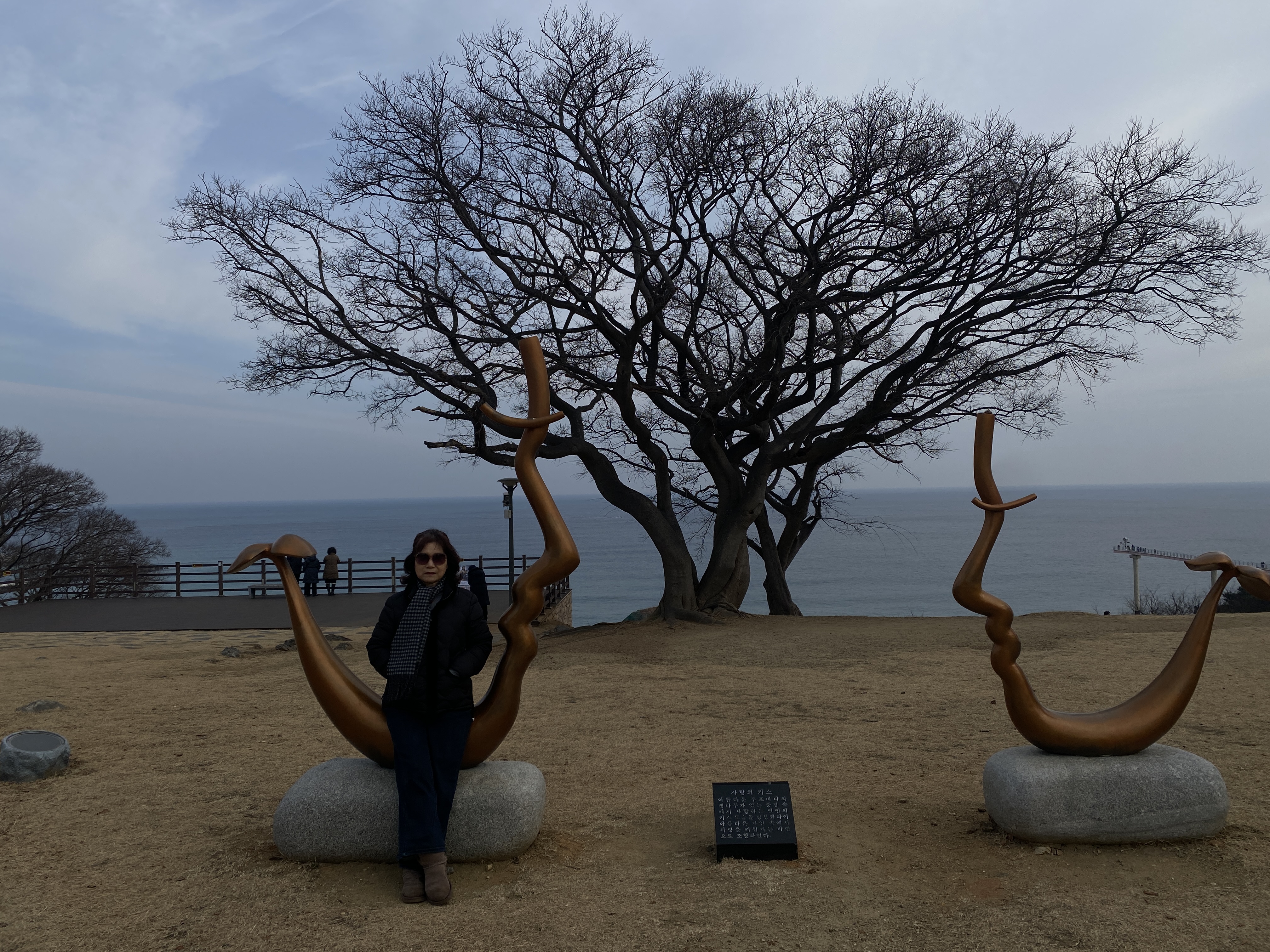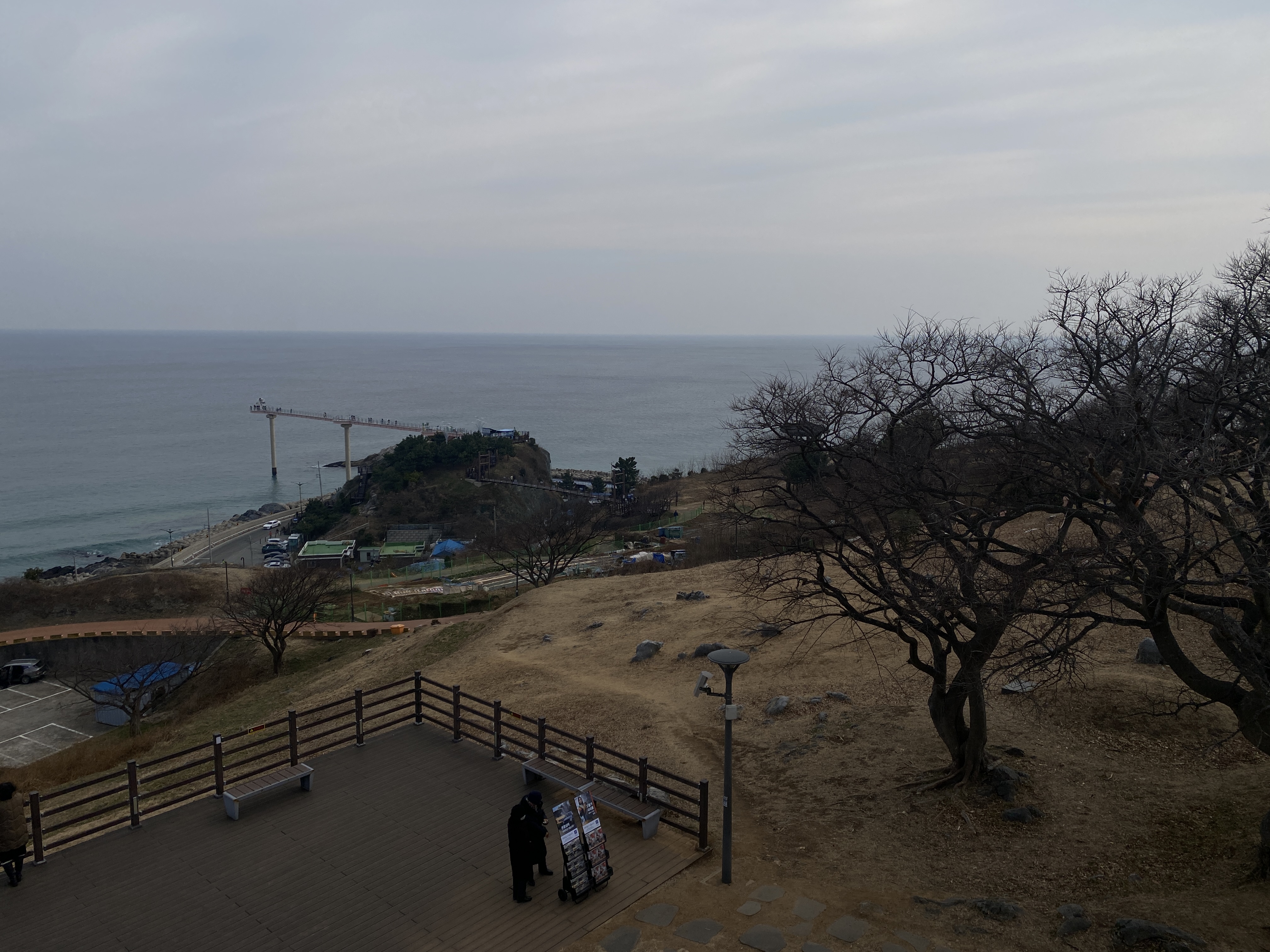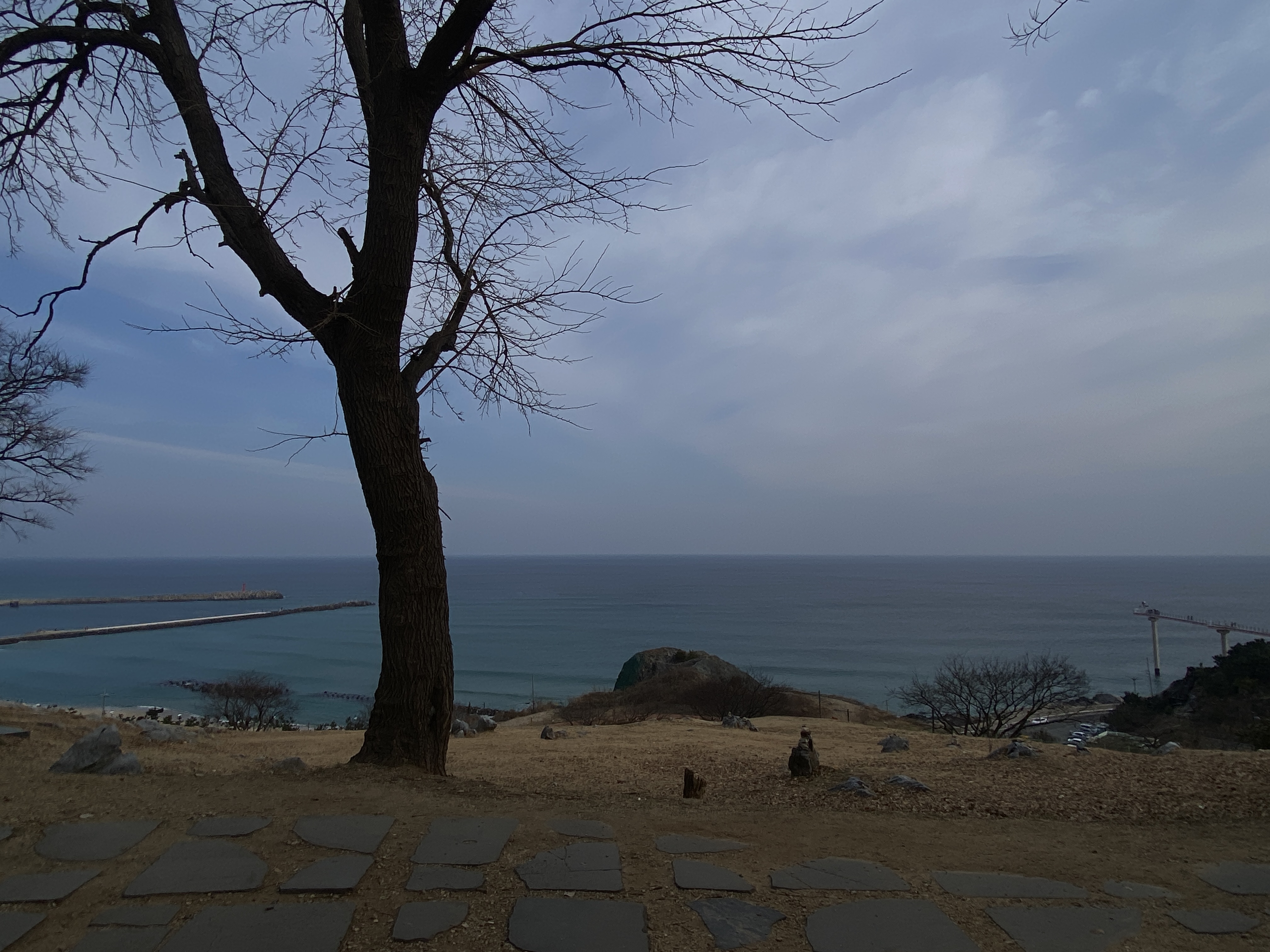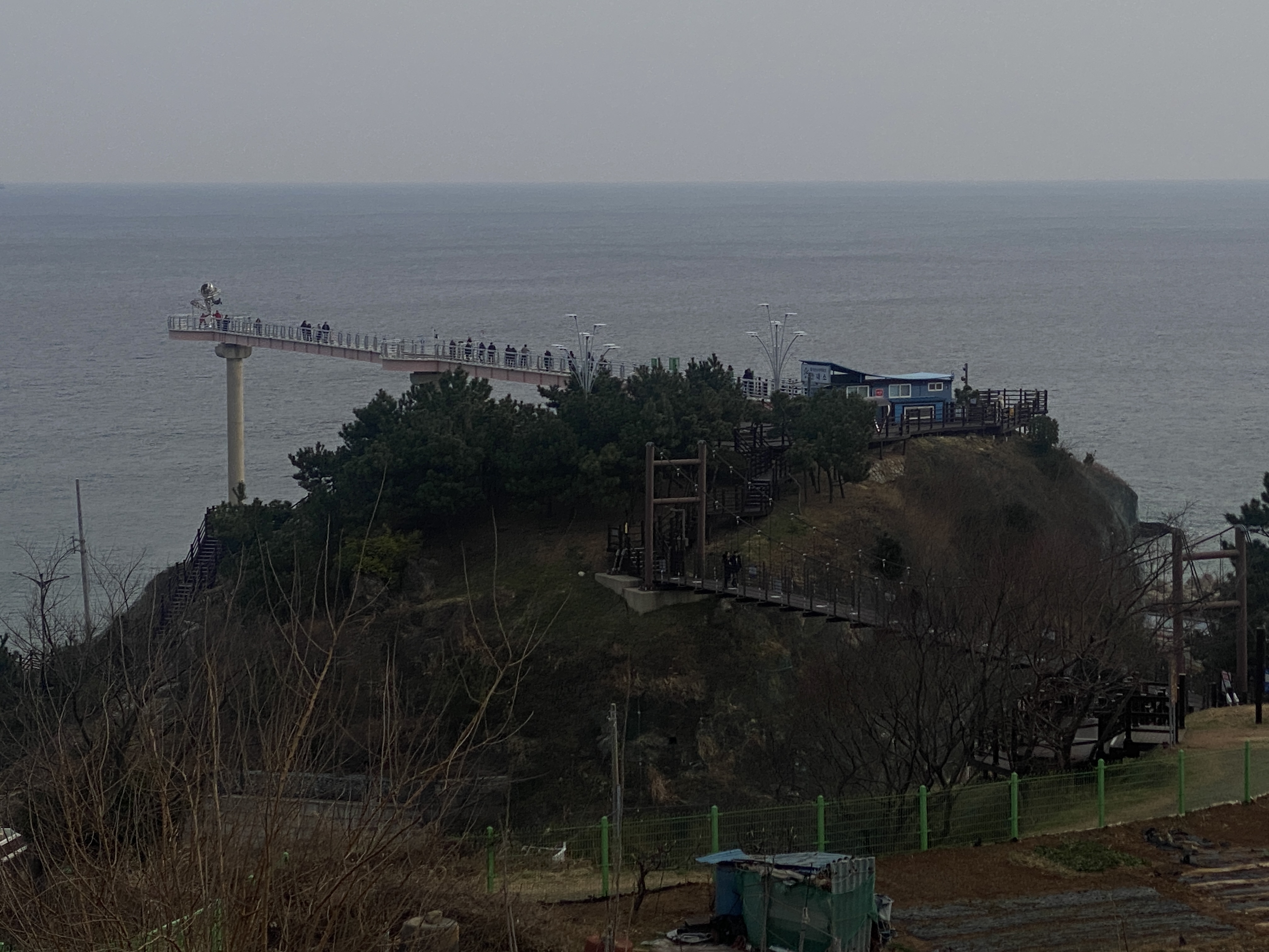 스카이워크 위에서 해안 쪽으로 보이는 해안, 아내는 무섭다면서 스카이워크 입구쪽에 조금 오다가 돌아갔고, 나는 끝까지 가야 했다. 선녀가 똑같은 모습으로 날고 있는 형상을 조각한 인공물이 있는 곳이다.