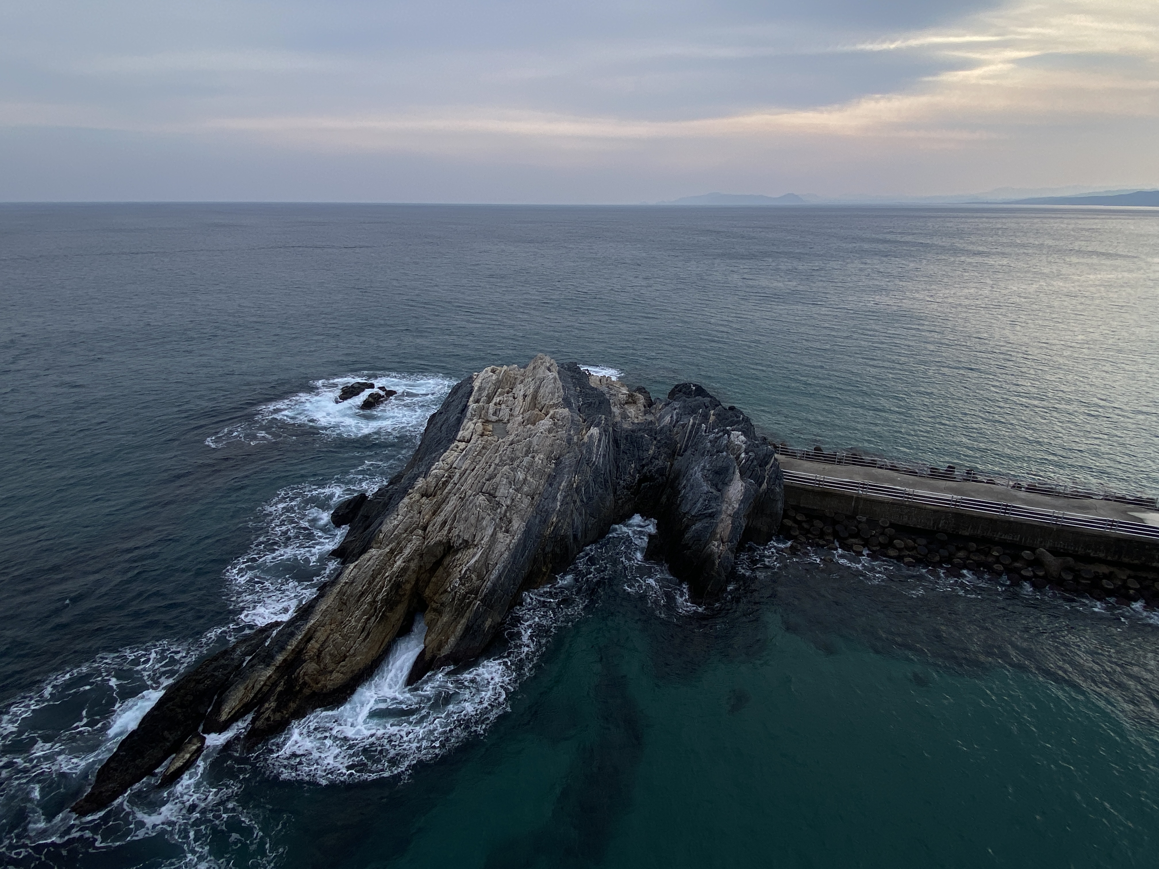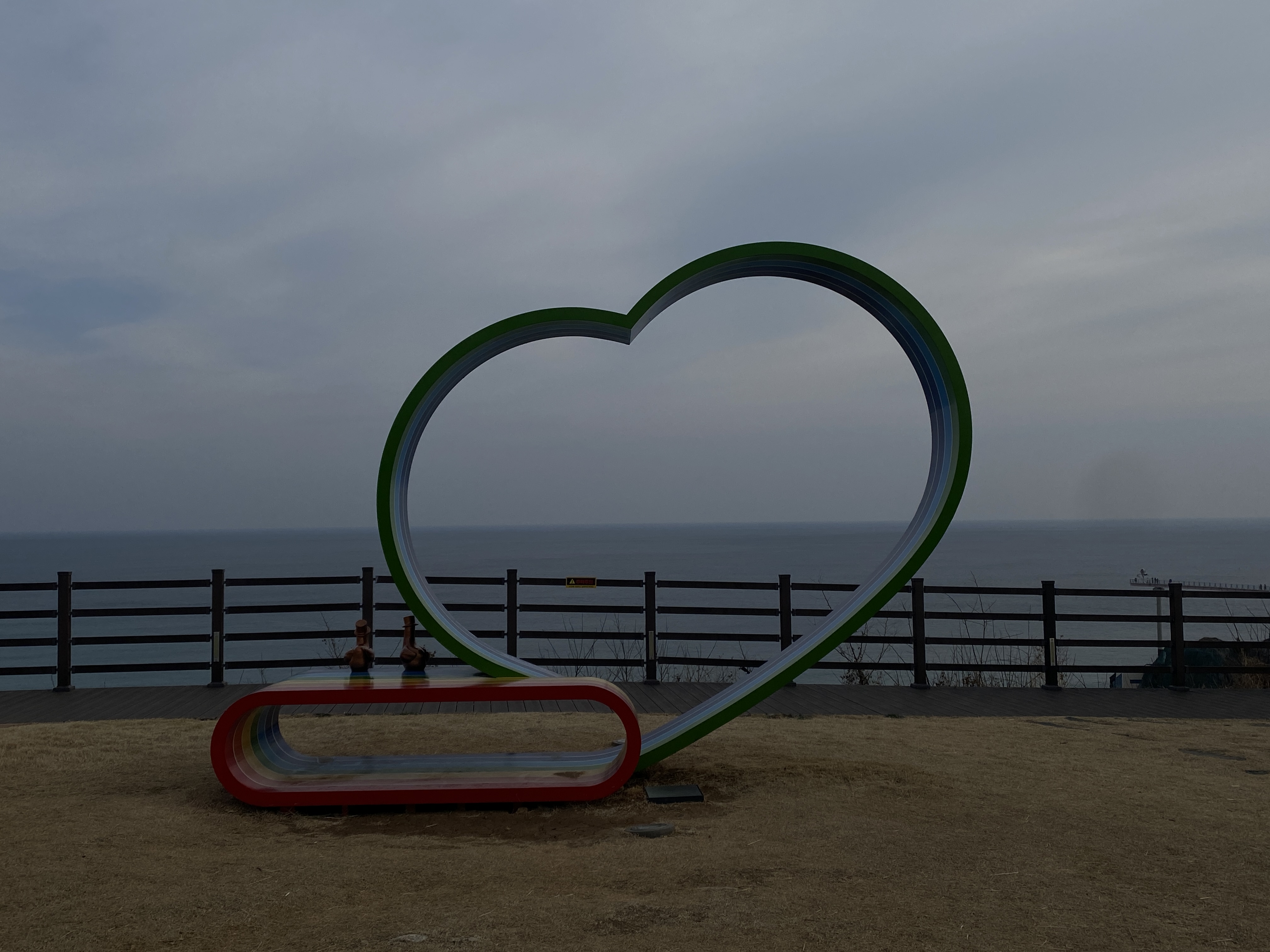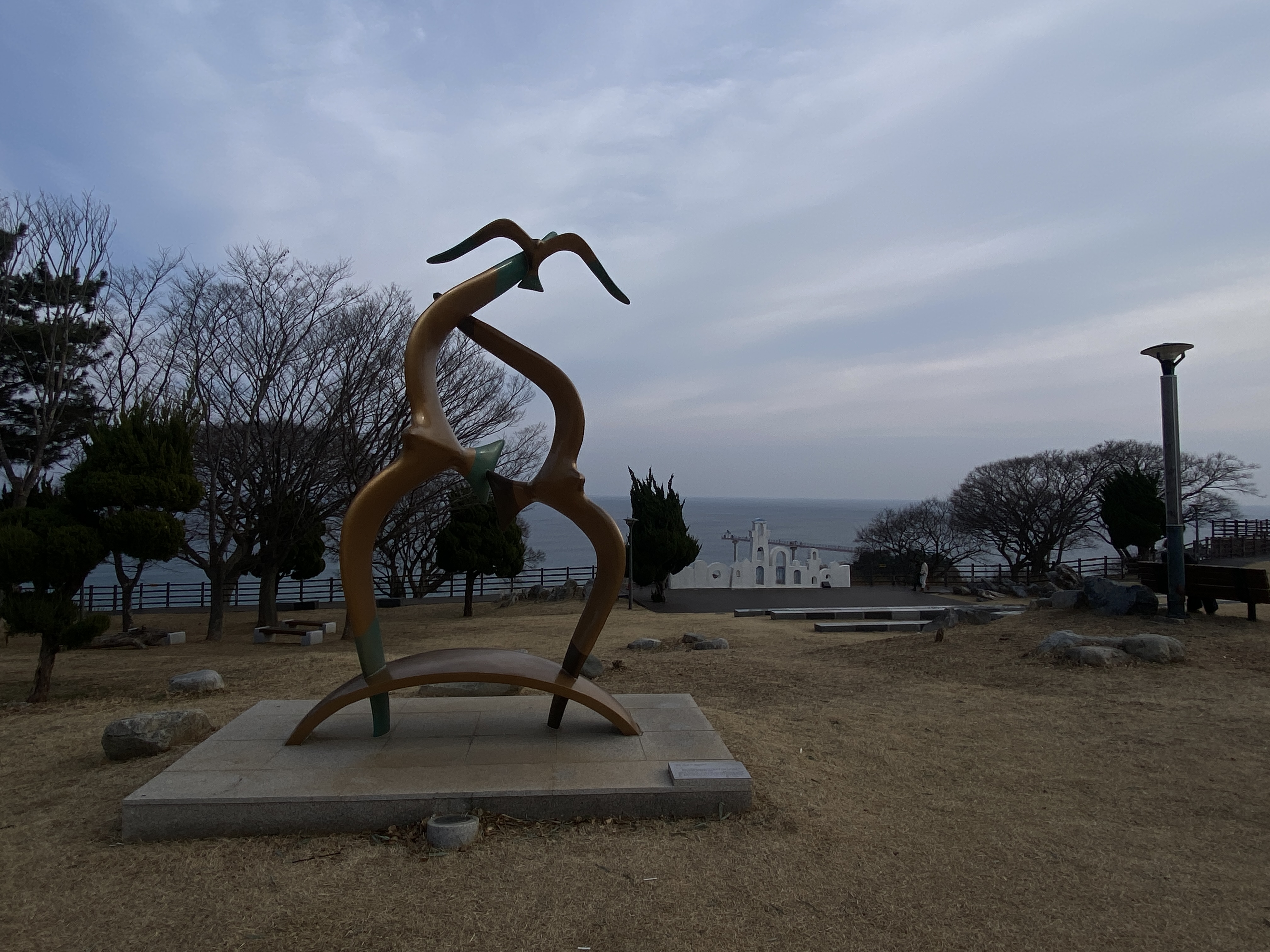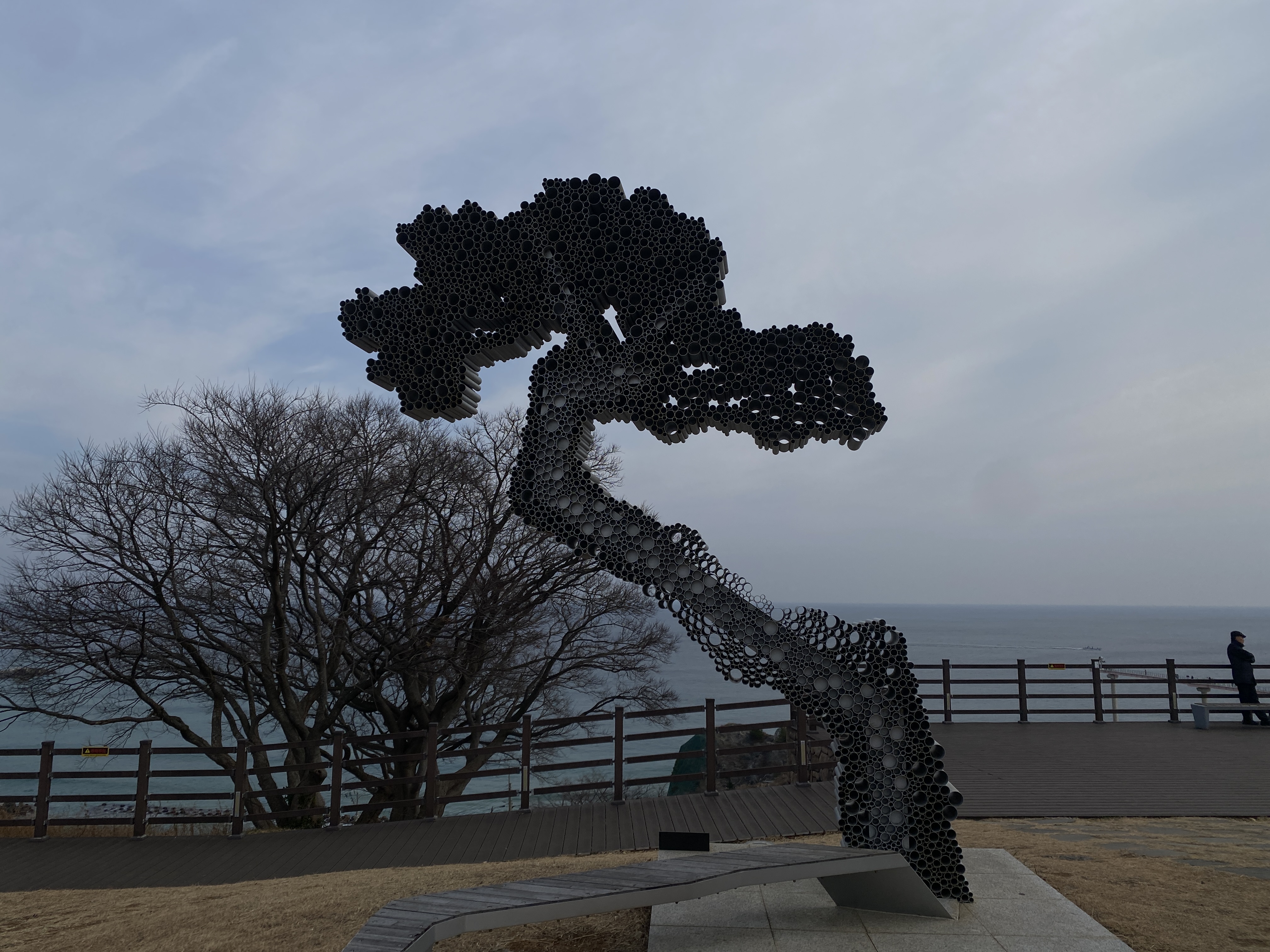 스카이워크 위에서 해안 쪽으로 보이는 해안, 아내는 무섭다면서 스카이워크 입구쪽에 조금 오다가 돌아갔고, 나는 끝까지 가야 했다. 선녀가 똑같은 모습으로 날고 있는 형상을 조각한 인공물이 있는 곳이다.