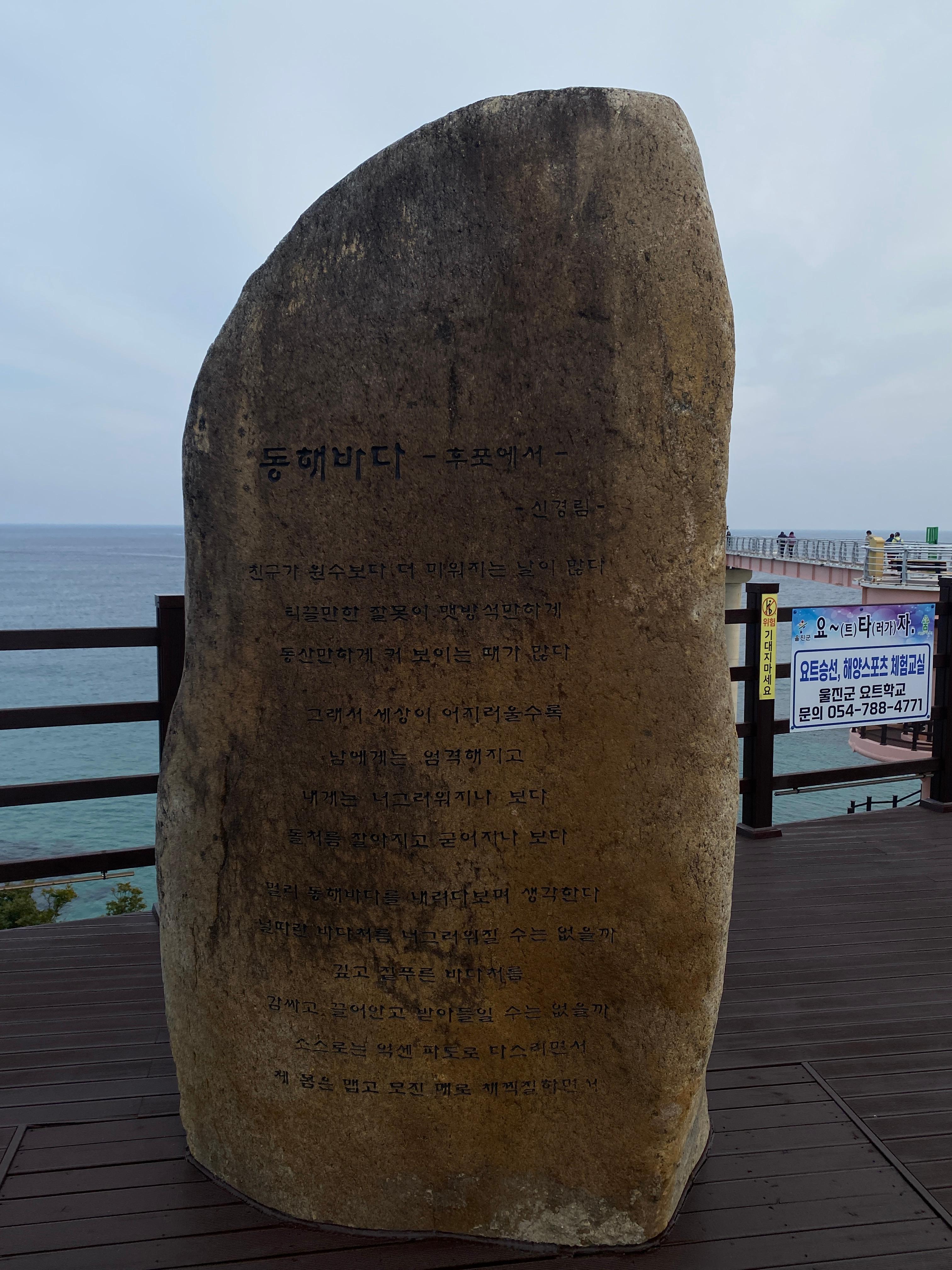 신경림의 시 <동해바다>(부제: 후포에서)란 시비를 보니 나도 후포에 근무할 당시 '후포에서'란 제목으로 연작시를 썼던 기억이 새롭다. 나와 같은 고향(충주) 출신의 시인이기도 해서 더욱 정감이 가는 작품이다.