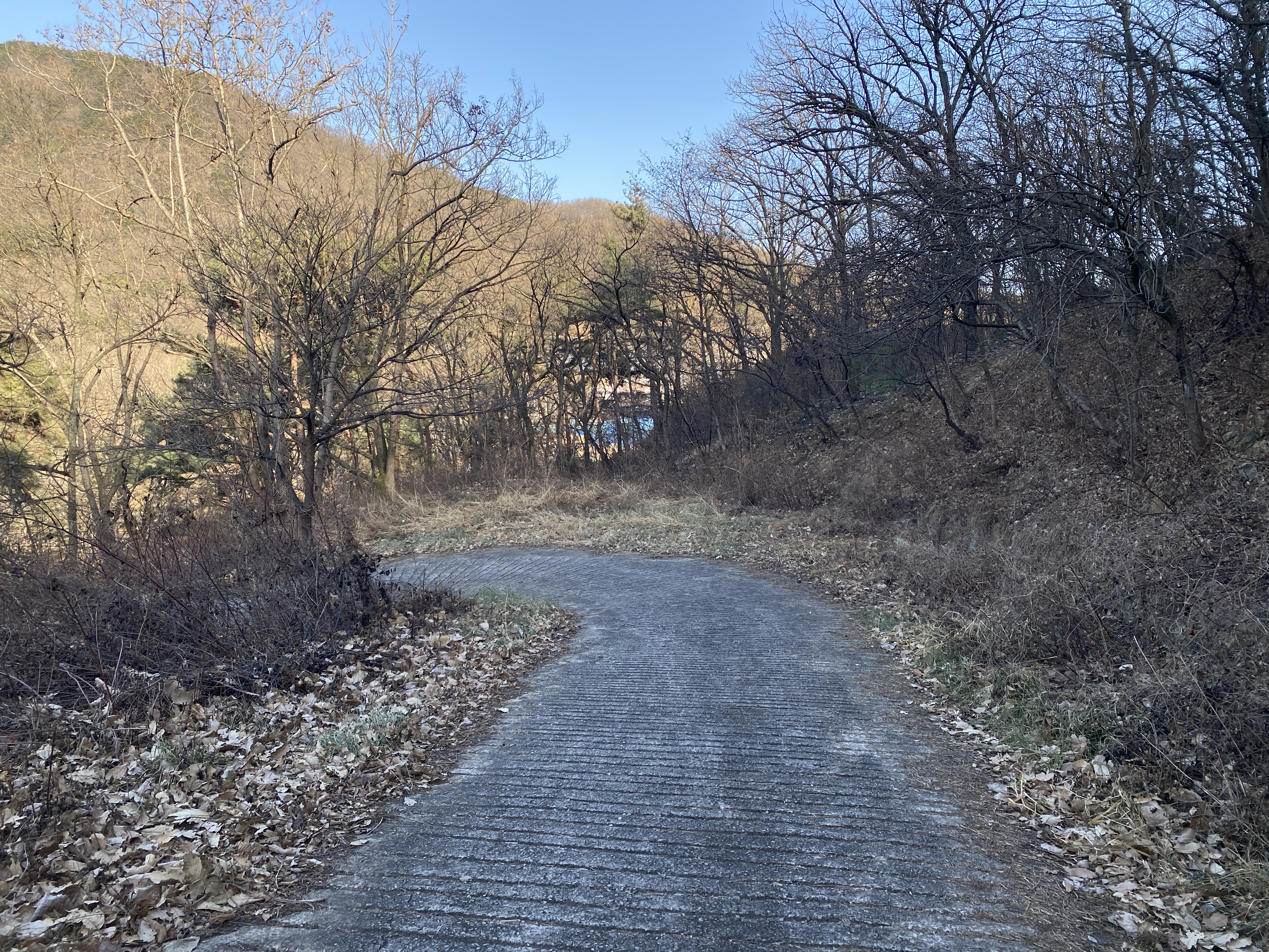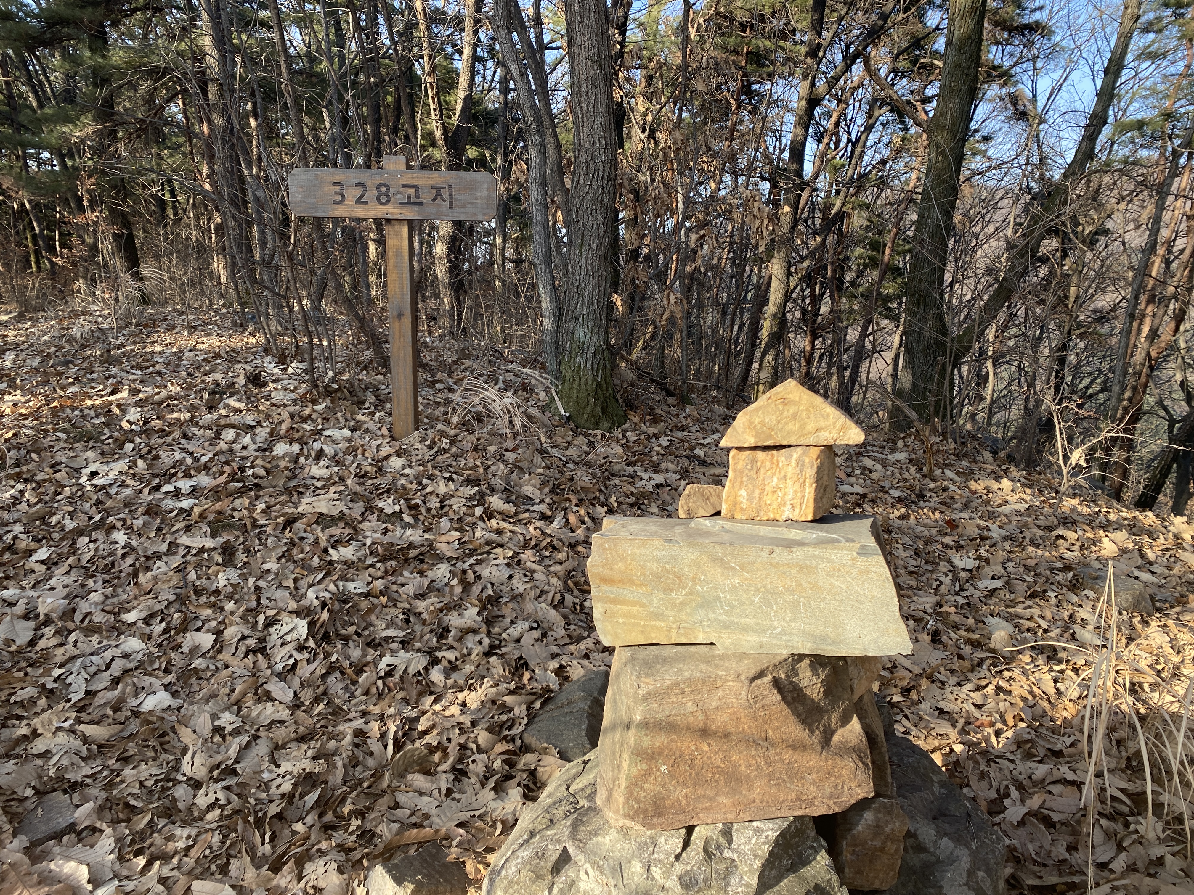 찬바람을 머금은 겨울 추위는 오후에도 누그러지지 않아 옷을 단단히 여미고 모자와 목도리까지 준비해서 328 고지를 향해 천천히 걷기 시작했다. 길은 시멘트 포장이 되어 있어서 차를 몰고 가면 쉽게 올라갈 수 있겠지만 그냥 쉬엄쉬엄 걸어오르는 것을 선택했다. 시간이야 얼마나 걸리든 한 걸음 한 걸음 내디디면서 가슴에 새겨지는 감정을 고스란히 느끼고 싶어서다.