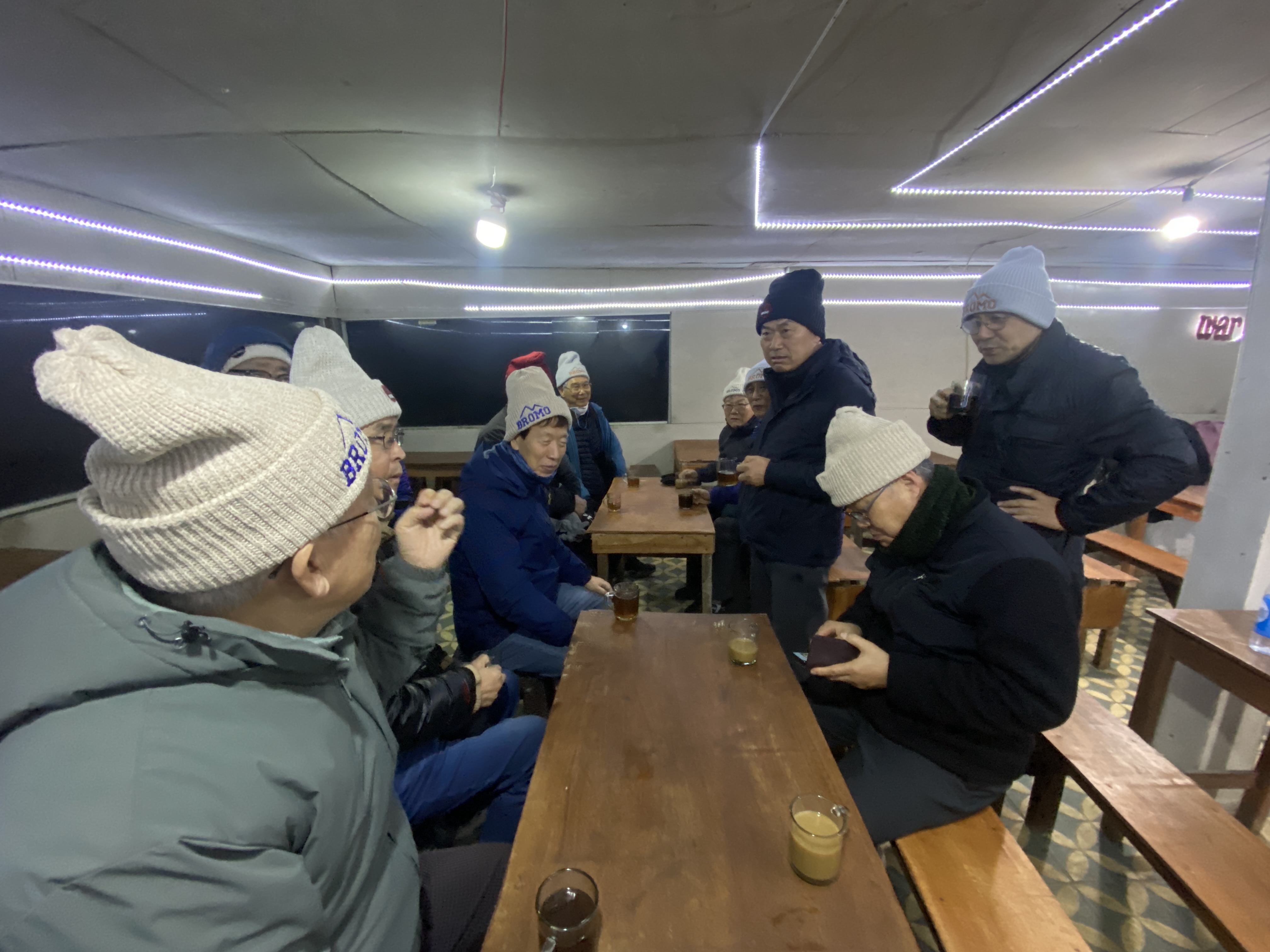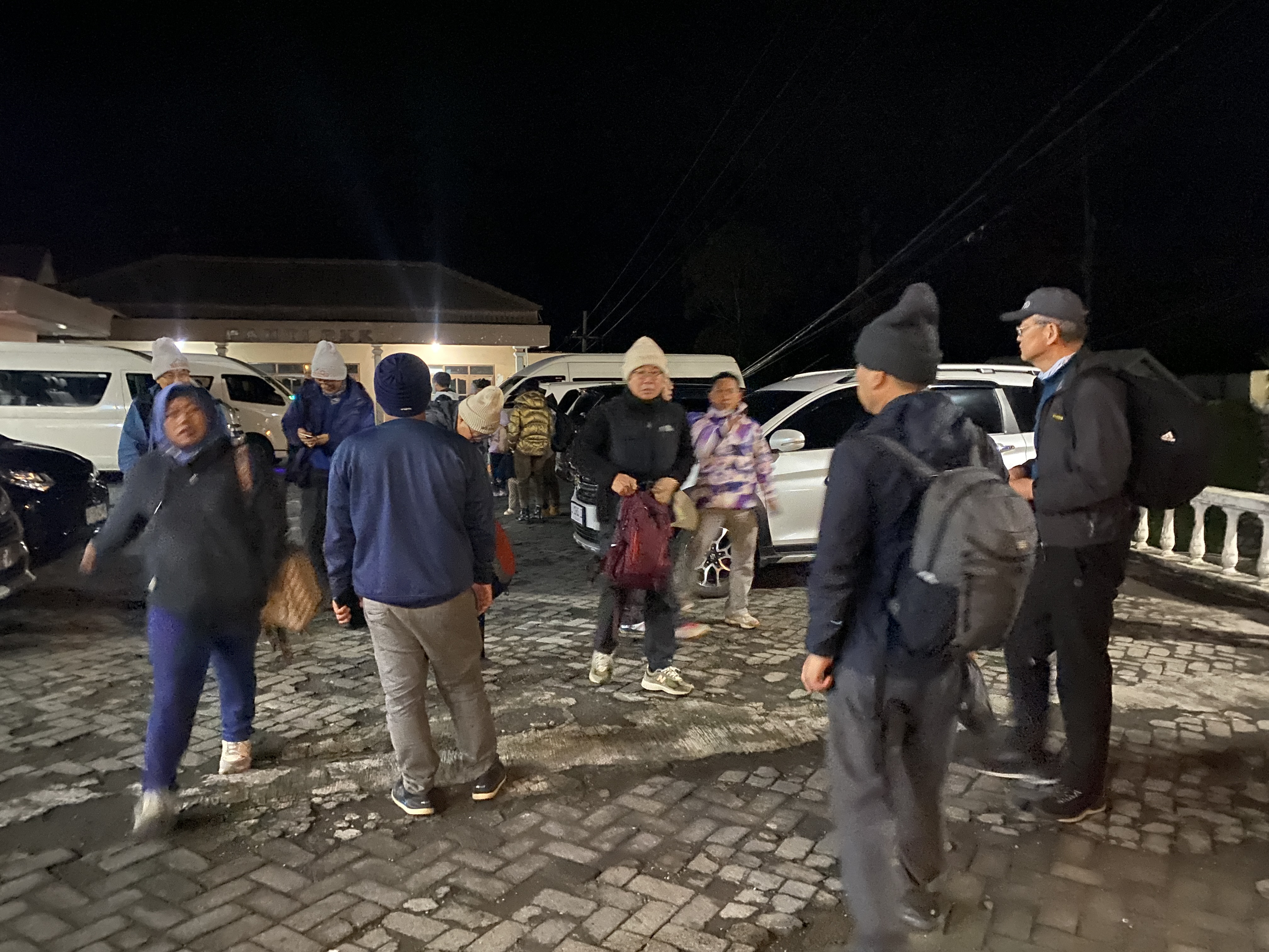완만한 경사 지역까지는 SUV 차량으로 이동이 가능했지만 앞으로는 사륜구동의 힘좋은 짚차를 이용해야 한다. 굴곡지고 경사 급한 길과 화산재가 쌓인 분화구를 통과해야 하기 때문이다. 우리 일행이 쓰고 있는 하얗고 빨간 털모자는 태천이가 우리들에게 하나씩 사 준 선물이다. 고지대 새벽의 추운 날씨를 극복할 수 있게 해 주는 털모자여서 여간 고맙지 않다. 고맙데이.^^