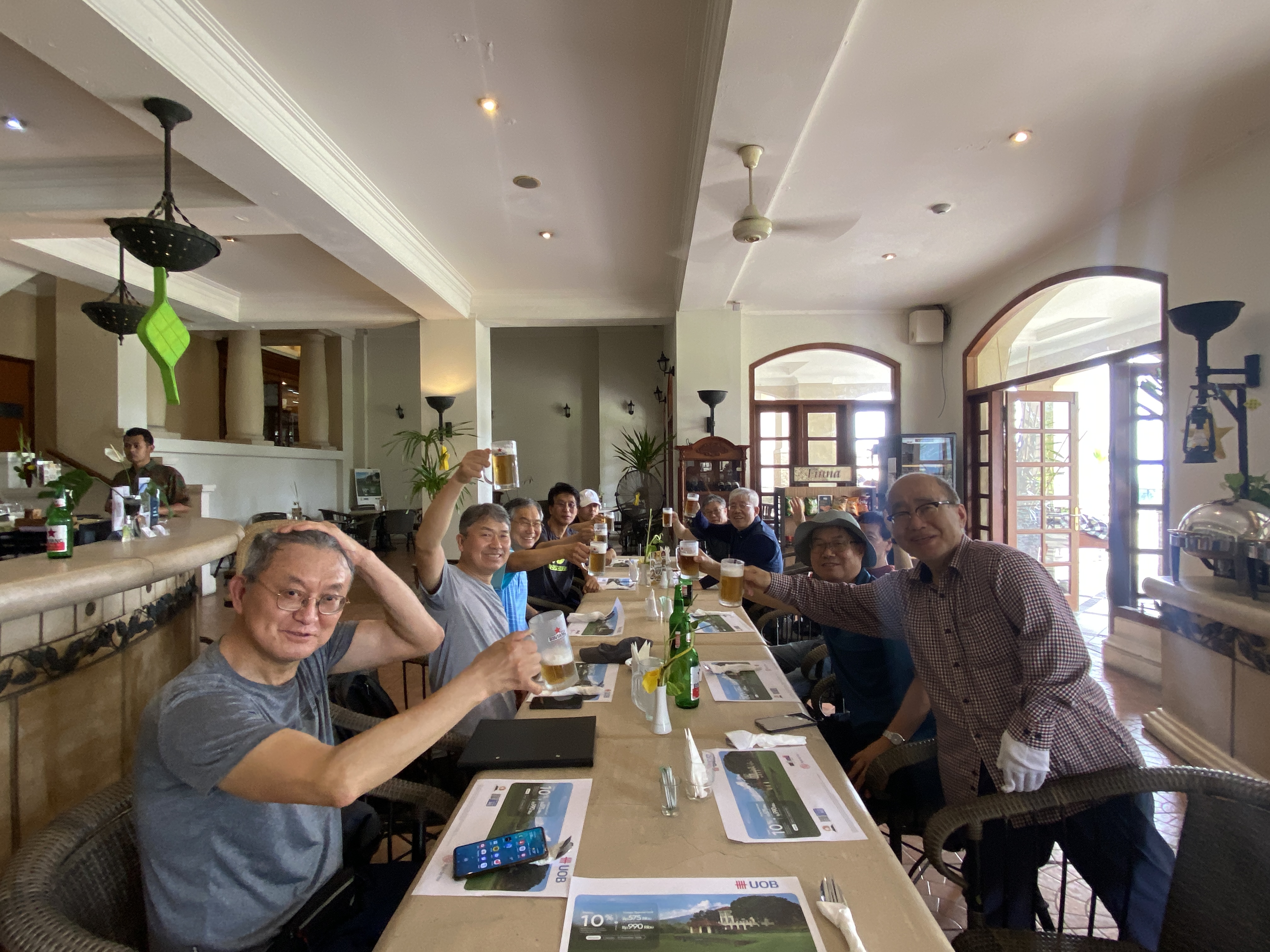 여장을 풀고 가볍게 옷을 갈아입은 뒤, 13:30, 점심 식사를 하기 위해 찾은 공간이다. 시원한 맥주를 한잔씩 하면서 그 기분좋음을 즐기기로 한다. 이런 즐거운 자리를 만들어 주고 오늘이 있기까지 아니 여행 끝날 때까지 온갖 신경을 써야하는 태천과 명배에게 그 고마움을 전하고 싶다. 모두의 건강과 즐거운 여행을 위하여 건배!!!