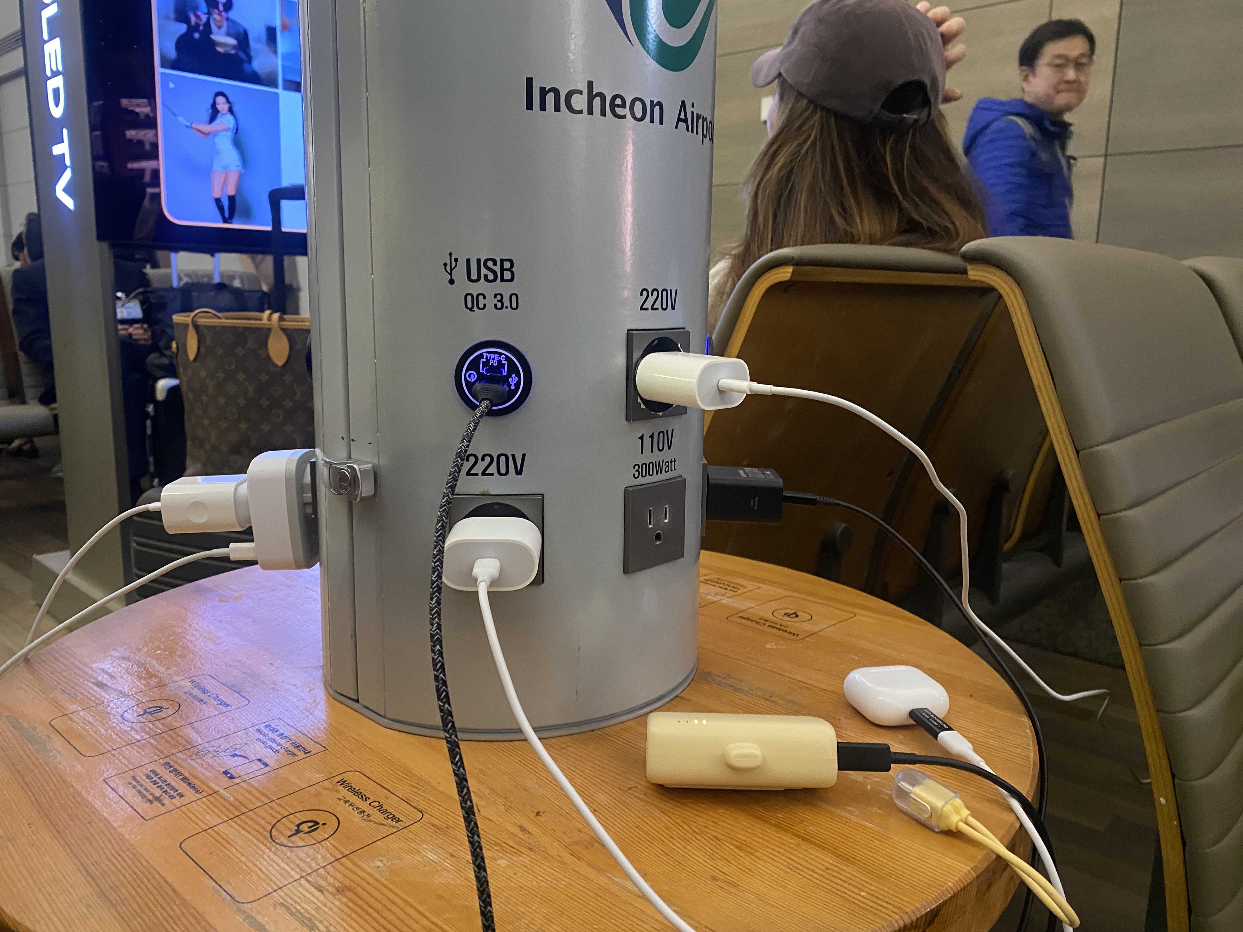 출발 시간이 많이 남아 시간 활용 차원에서 휴대폰 충전을 시도했다. 공항 곳곳에 충전할 수 있는 공간이 있어서 좋긴 한데 이용객이 많아 늘 복잡한 것 같다.