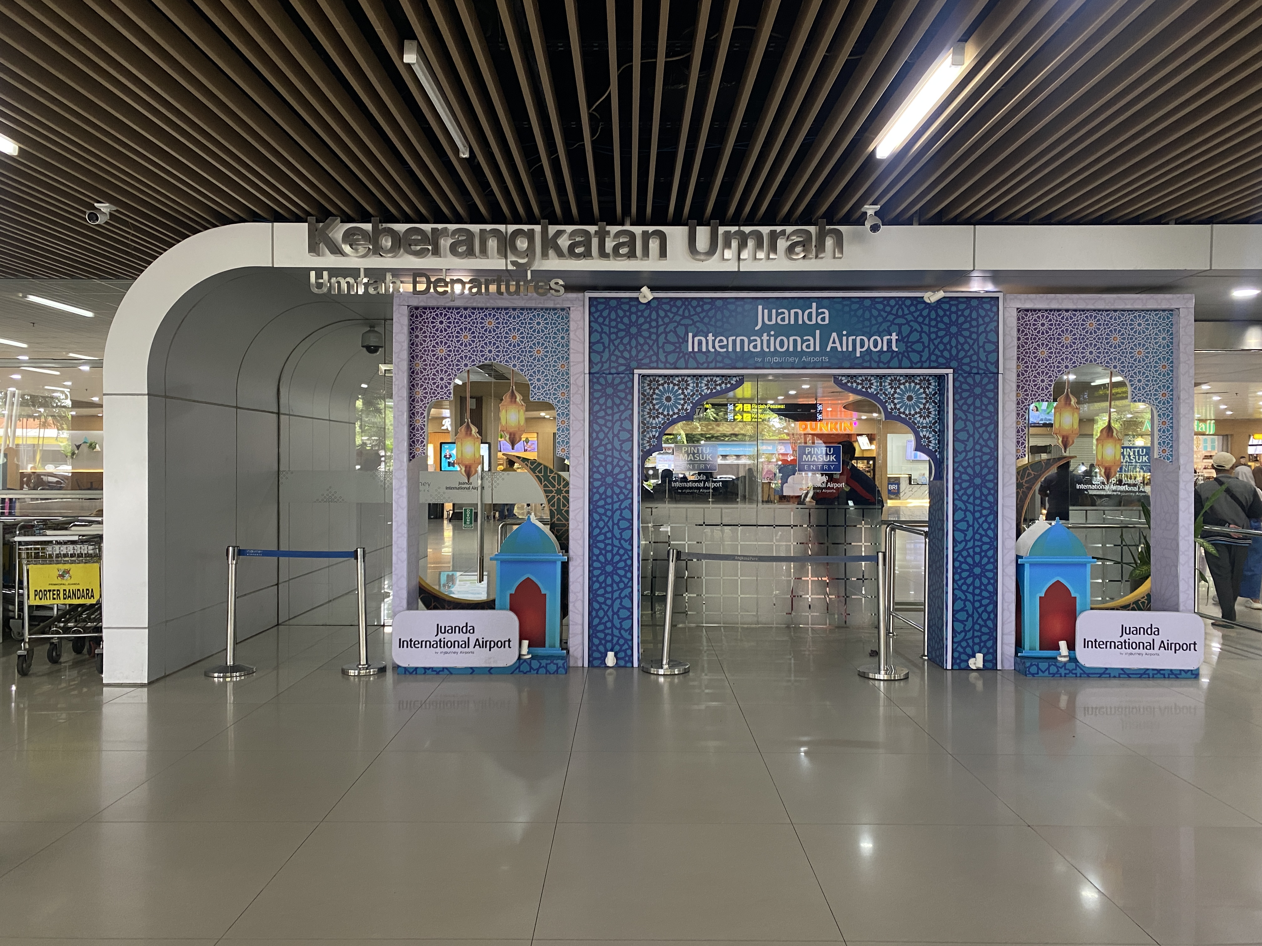수라바야 주안다 국제공항은 비교적 한산했다. 1964년에 Perak 해군 항공 기지로 사용 중이던 지역을 당시 총리이던 주안다가 공항으로 개발할 것을 주장 후 성장하게 되어 주안다 국제공항으로 명명되었다. 대한민국에서 직항편은 없다. 자카르타나 발리섬, 쿠알라룸푸르, 싱가포르나 홍콩을 경유하여 가는 게 일반적이라고 하나 종종 타이베이시를 경유하여 가는 경우도 있다.