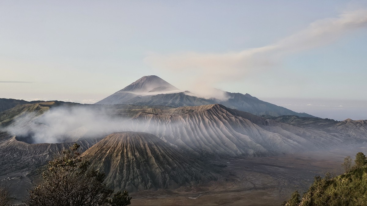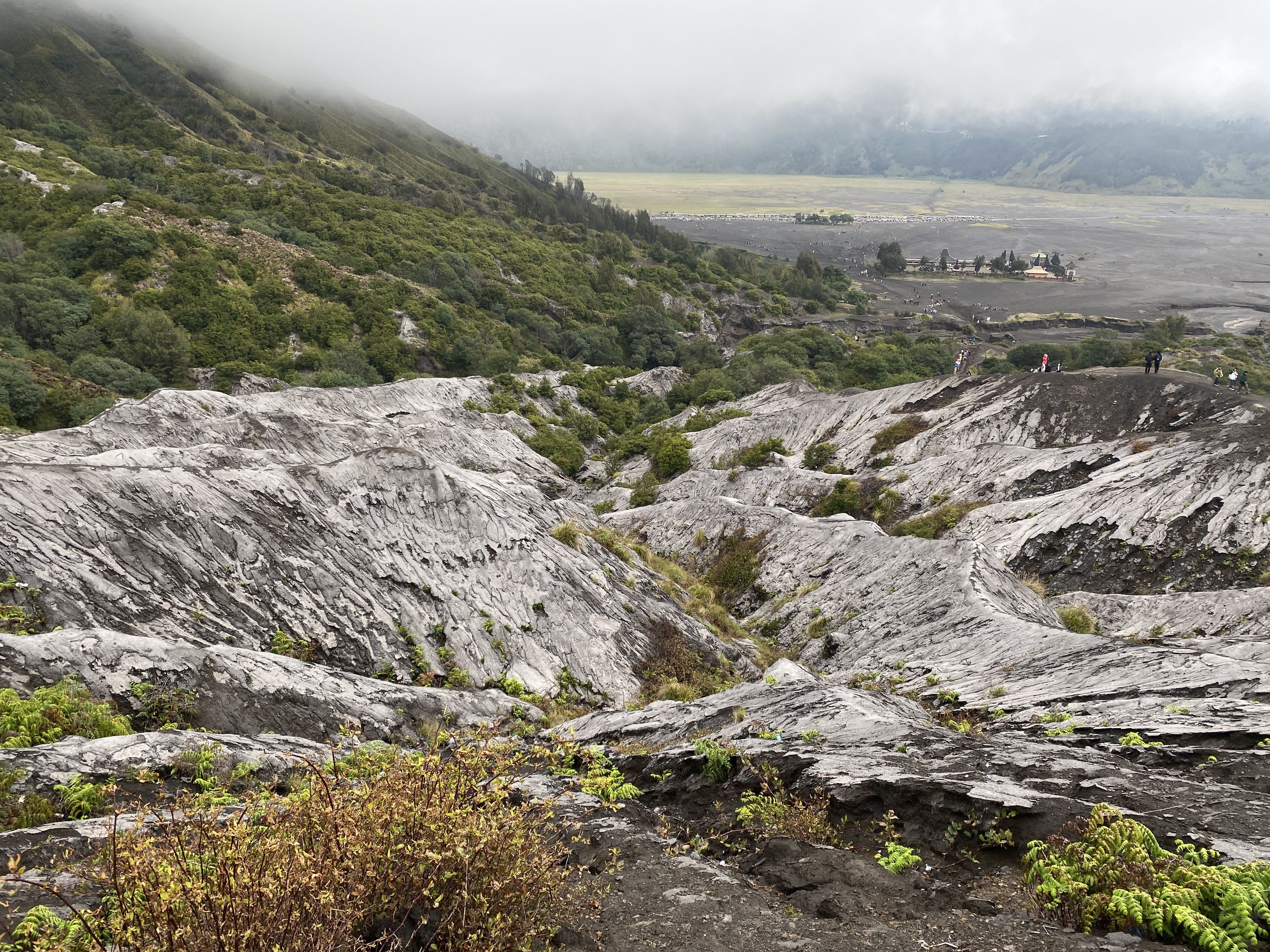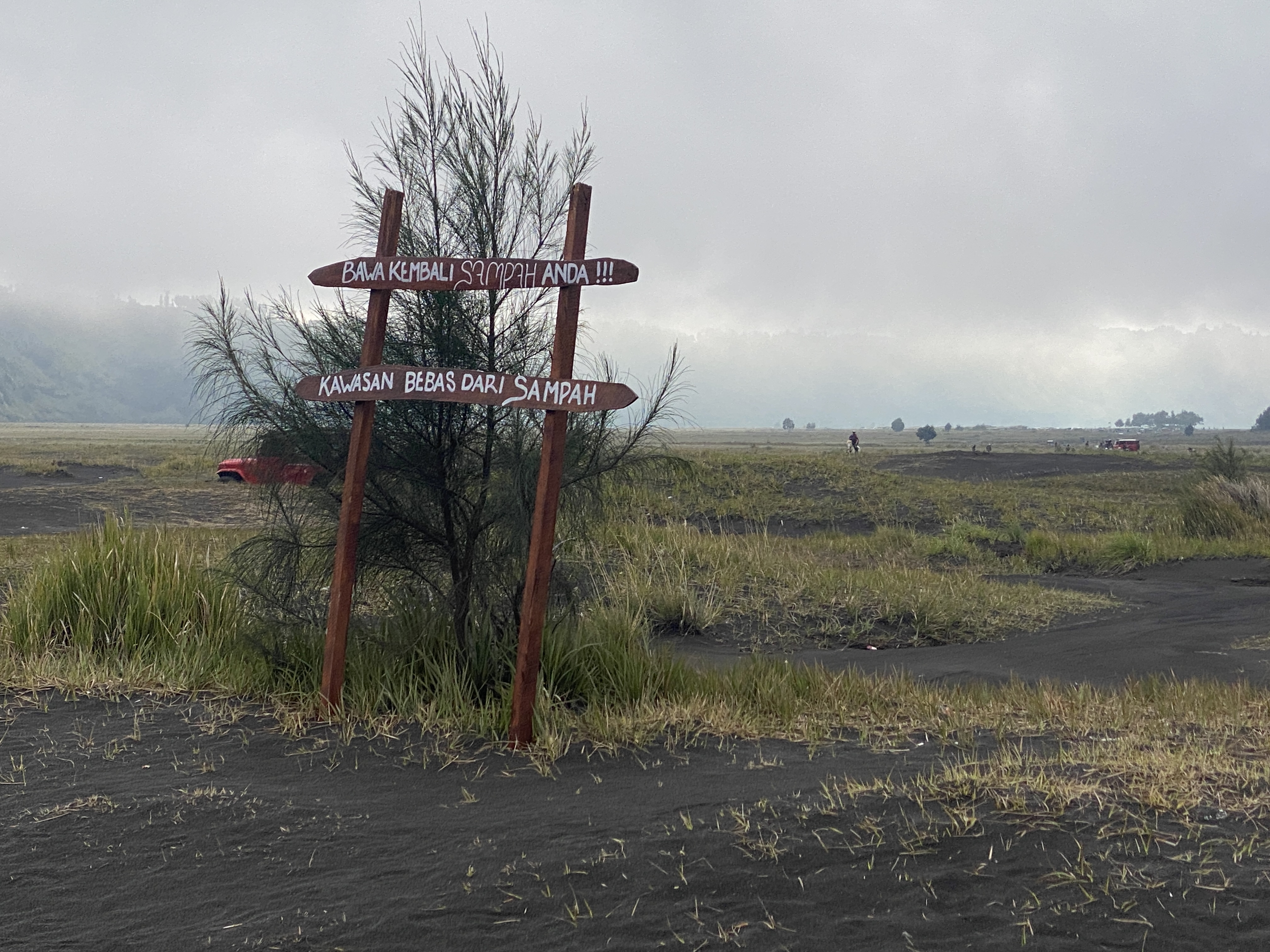 거대한 분화구 안이다. 화산재가 쌓인 평야지대라 해도 과언이 아니다. 이 광활한 분화구에서 다시 용암이 분출하여 또 다른 화산이 그 안에 생겼는데 그 화산이 바로 브로모 화산이고, 지금도 그 안에서 유황가스가 끊임없이 빠져나오고 있고 언제 또 용암이 분출할지 알 수 없는 활화산인 것이다. 화산의 모습은 잠시 뒤에 보기로 한다.