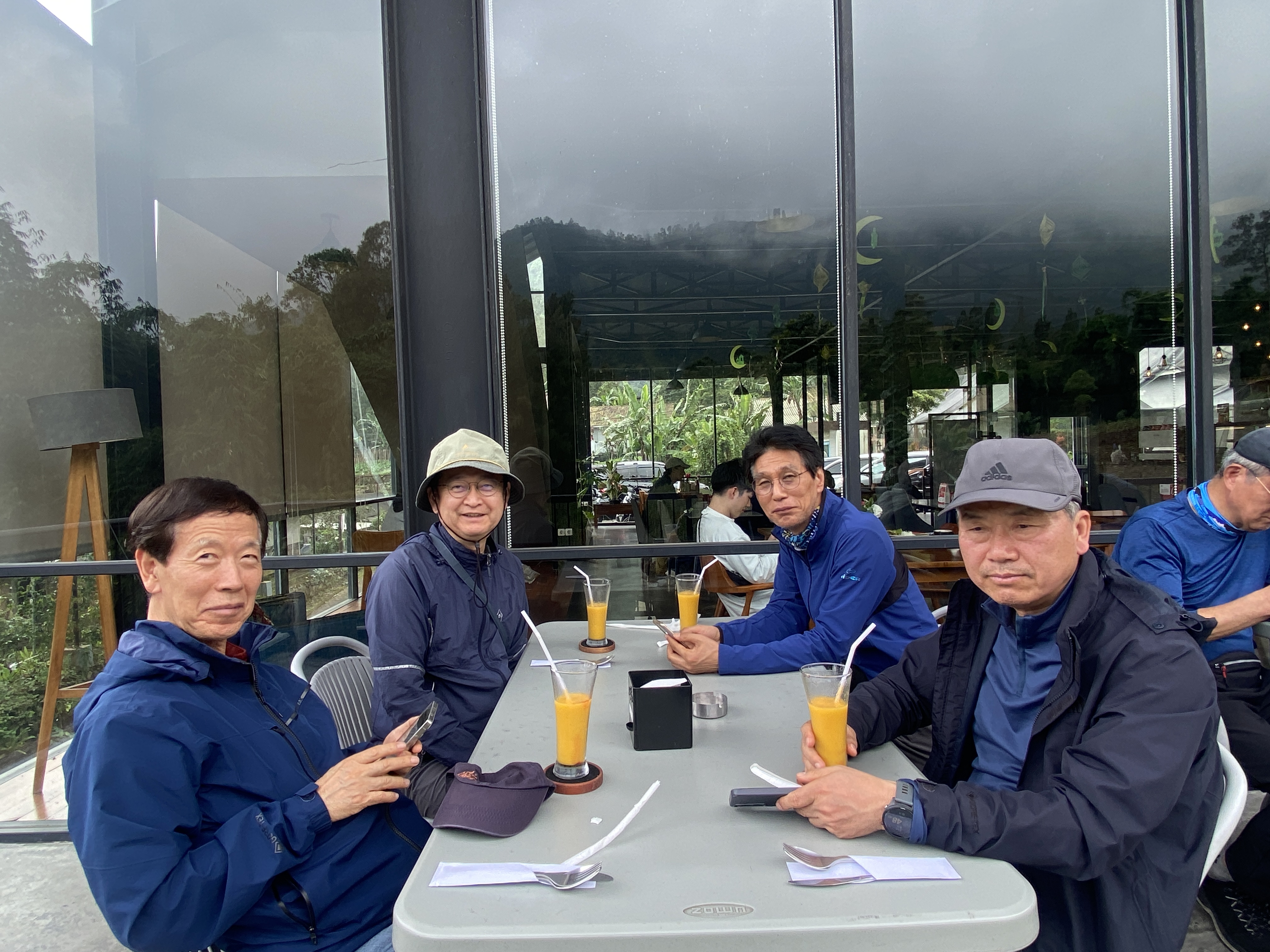 09:30 화산 인근의 모 식당에서 아침식사를 하기로 했다. 식당은 매우 깔끔해 보였다. 식사 전에 음료를 마시는 것이 순서라면서 우리는 망고 주스를 한 잔씩 주문해서 마신 후 식사를 했다. 식사의 내용은 무엇을 먹었는지 기억나지 않는다.