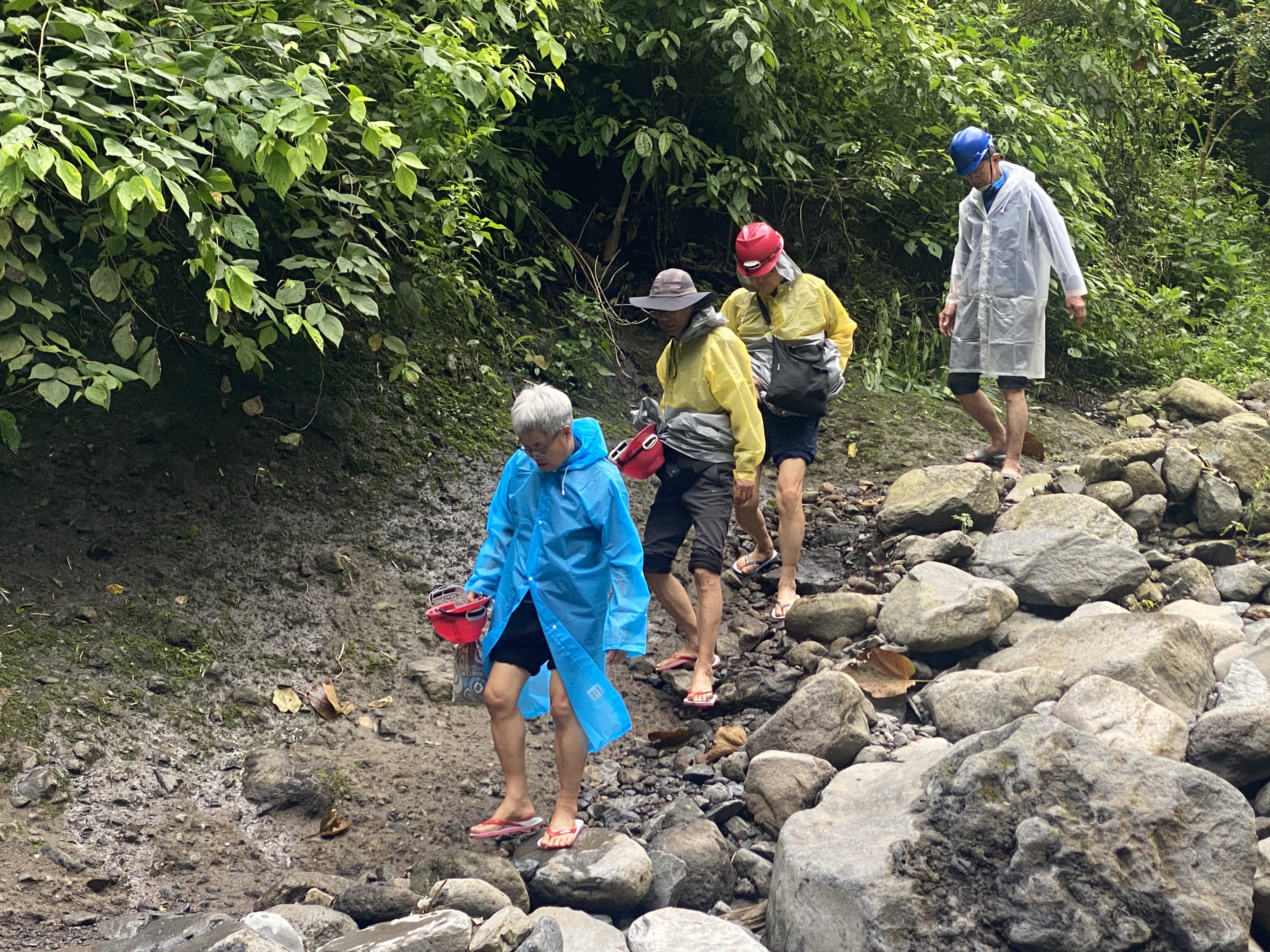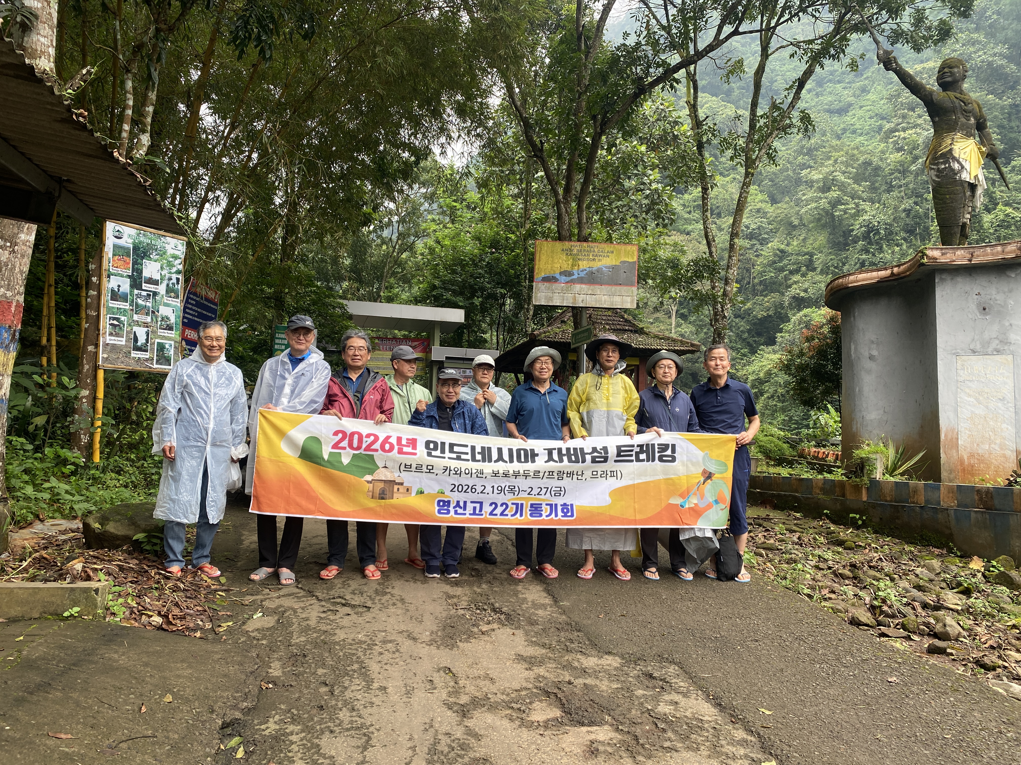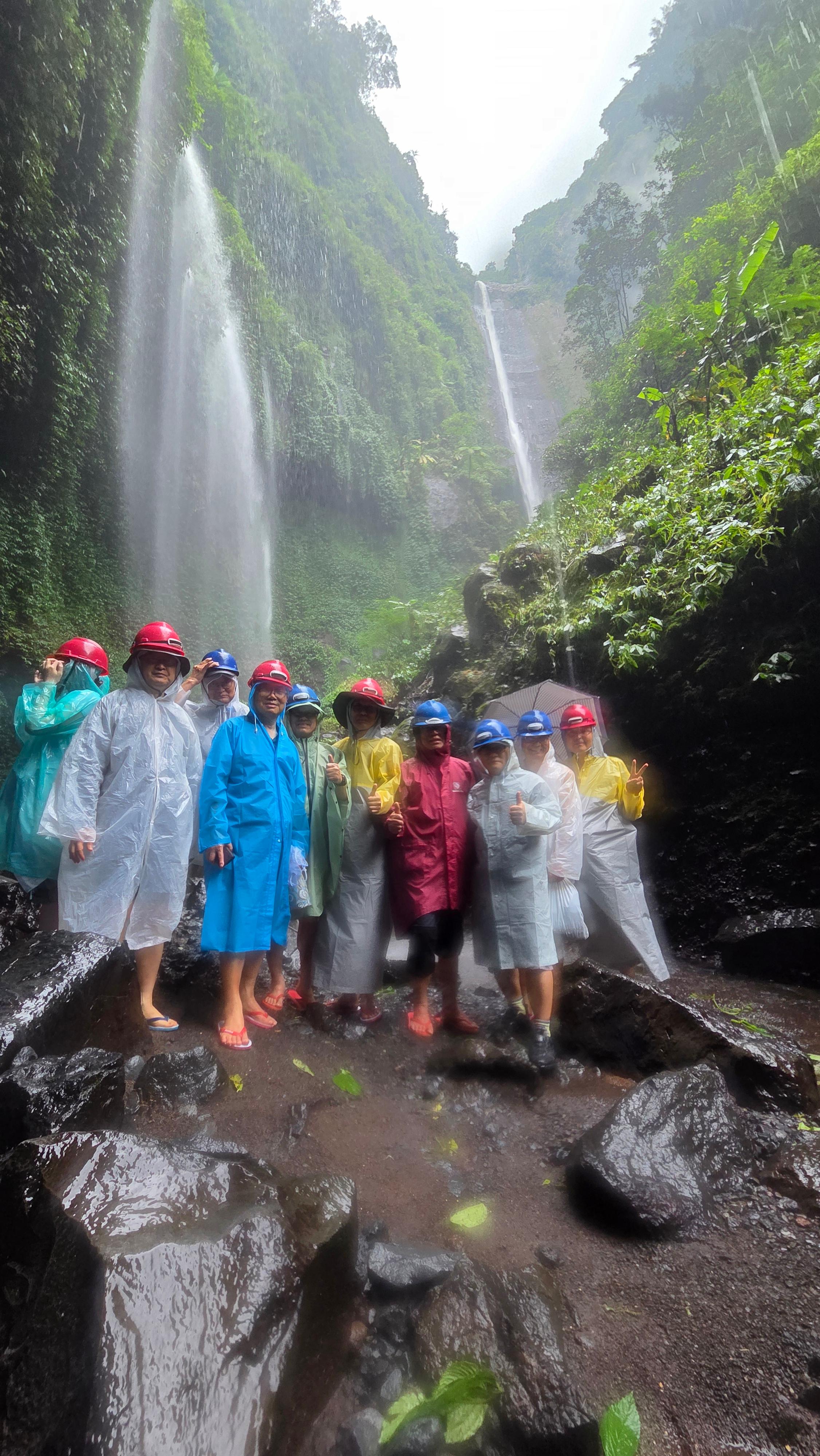 10:00 마다가리푸라 폭포 트레킹을 시작하면서 찍은 사진이다. 폭포 밑까지 진출하기 때문에 신과 옷은 다 버린다고 생각해야 하고 모두 슬리퍼로 갈아신는 게 좋다면서 태천이는 슬리퍼까지 사 주면서 신을 바꿔 신을 것을 주문했다.