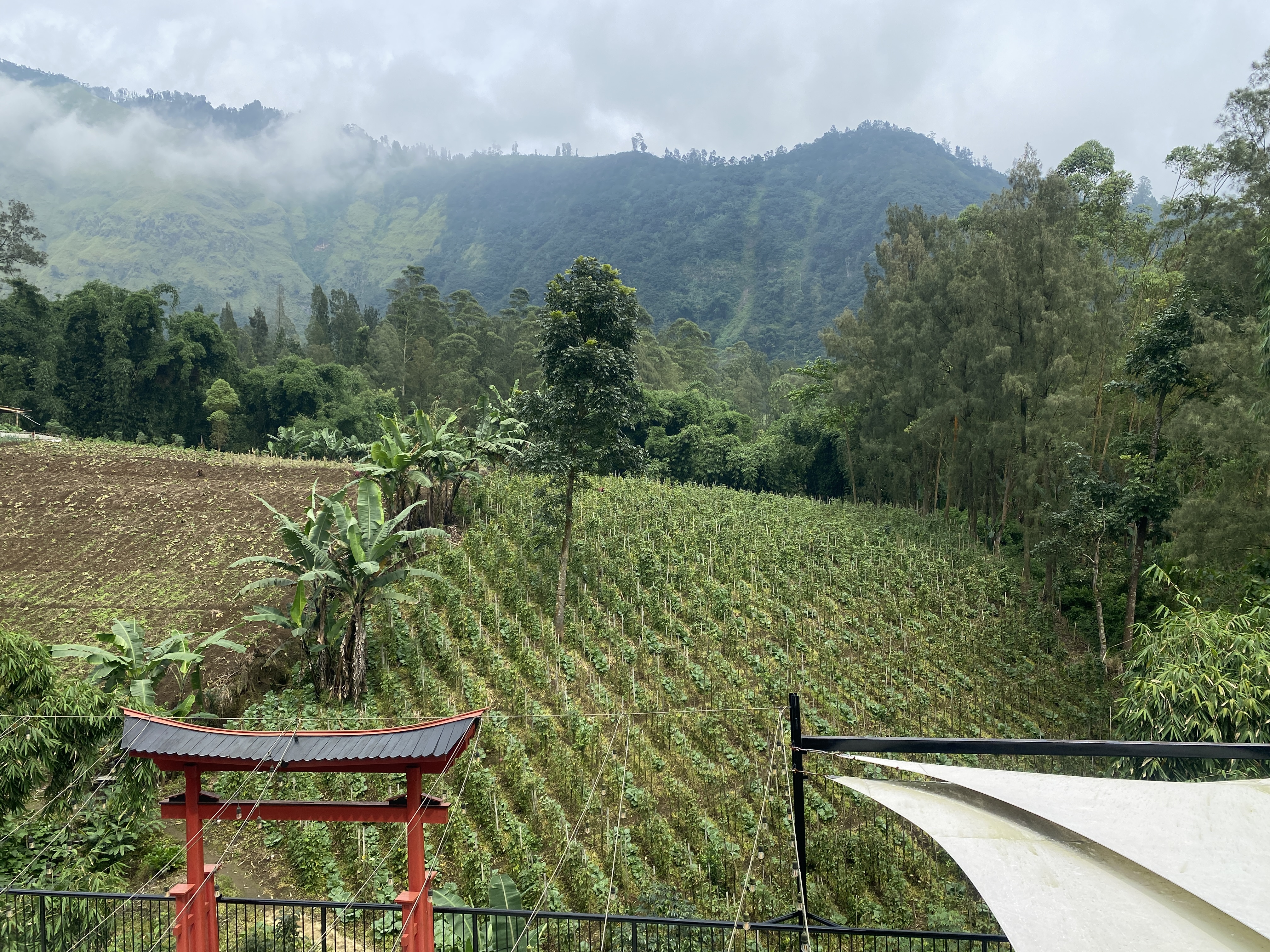화산의 가파른 경사의 밭에는 여러 종류의 작품이 재배되고 있음을 확인할 수 있었다.