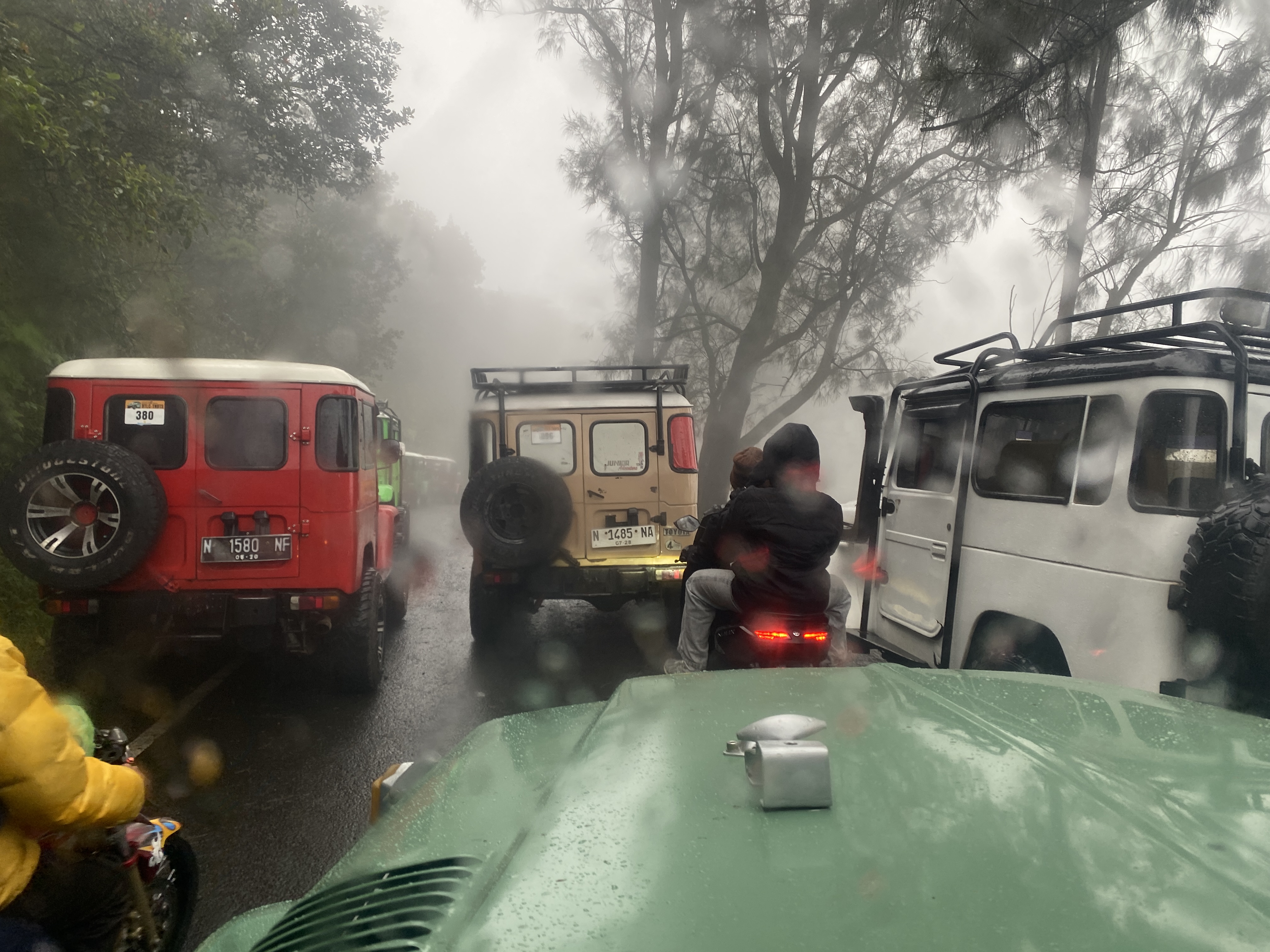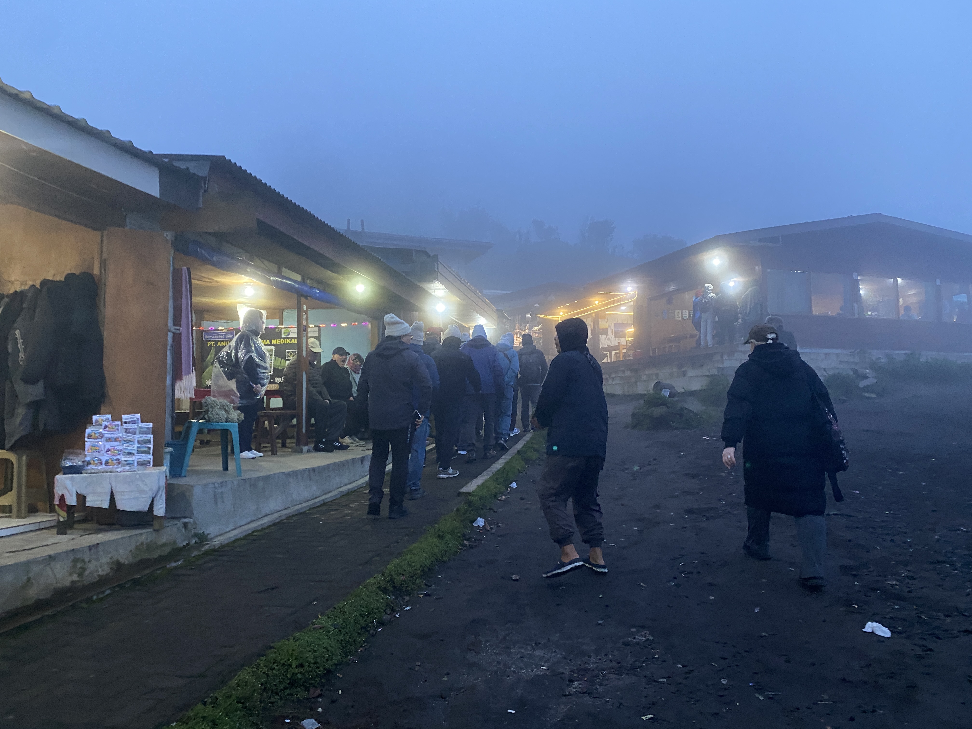 해가 곧 뜰 시간이다. 그런데 곰탕처럼 안개만 잔뜩 끼어있다. 아무것도 보이지 않는다. 밤보다 더 심해져서 보이는 거리가 얼마 되지 않는다. 어떡하나? 그 멋지다고 하는 브로모 화산의 모습과 일출 장면을 못 보고 그냥 내려가야 한단 말인가?