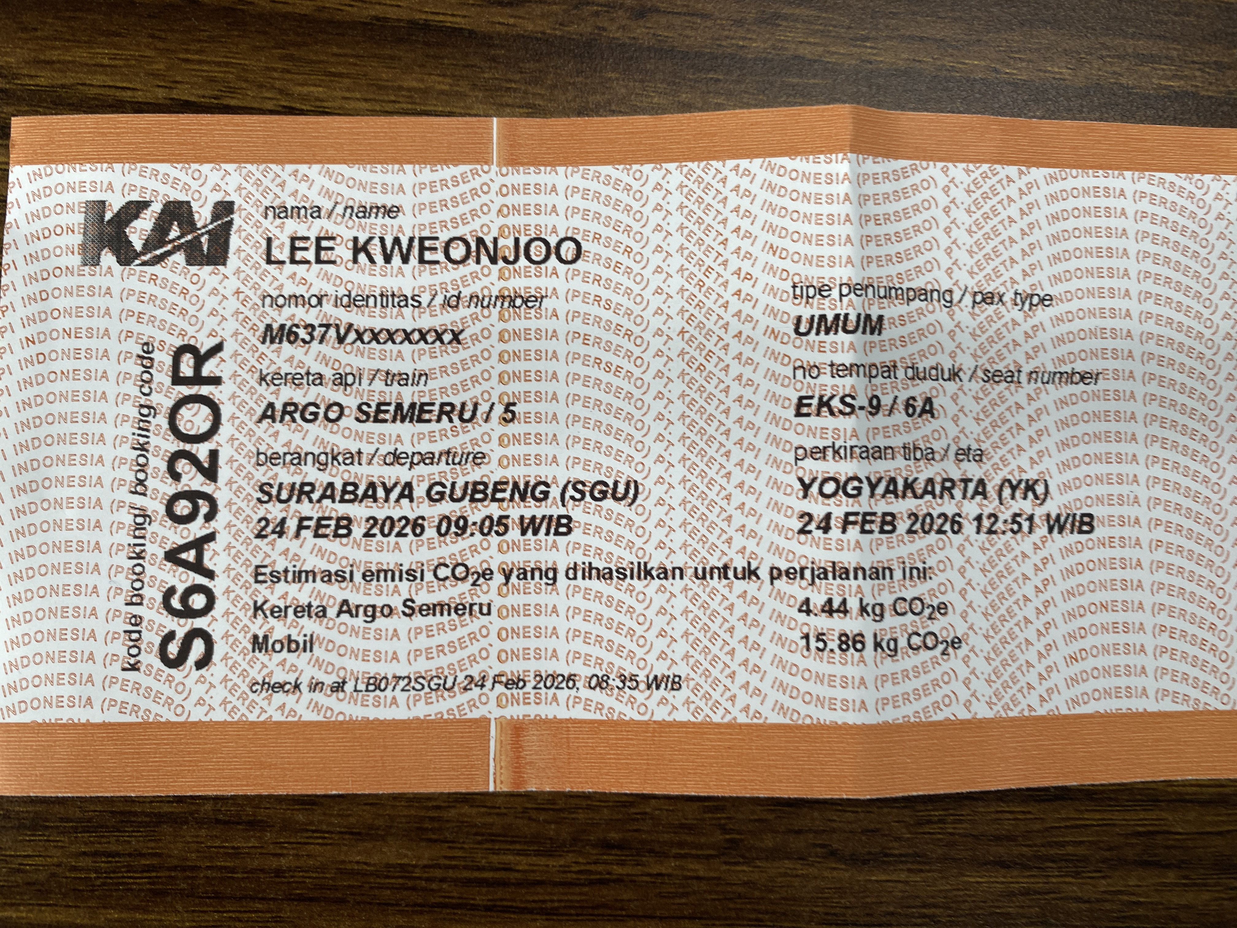 수라바야에서 족자 구간까지 기차를 이용할 수 있는 승차권인데 금방이라도 잘 찢어질 정도로 얇아서 다루기가 조심스러울 정도였다.