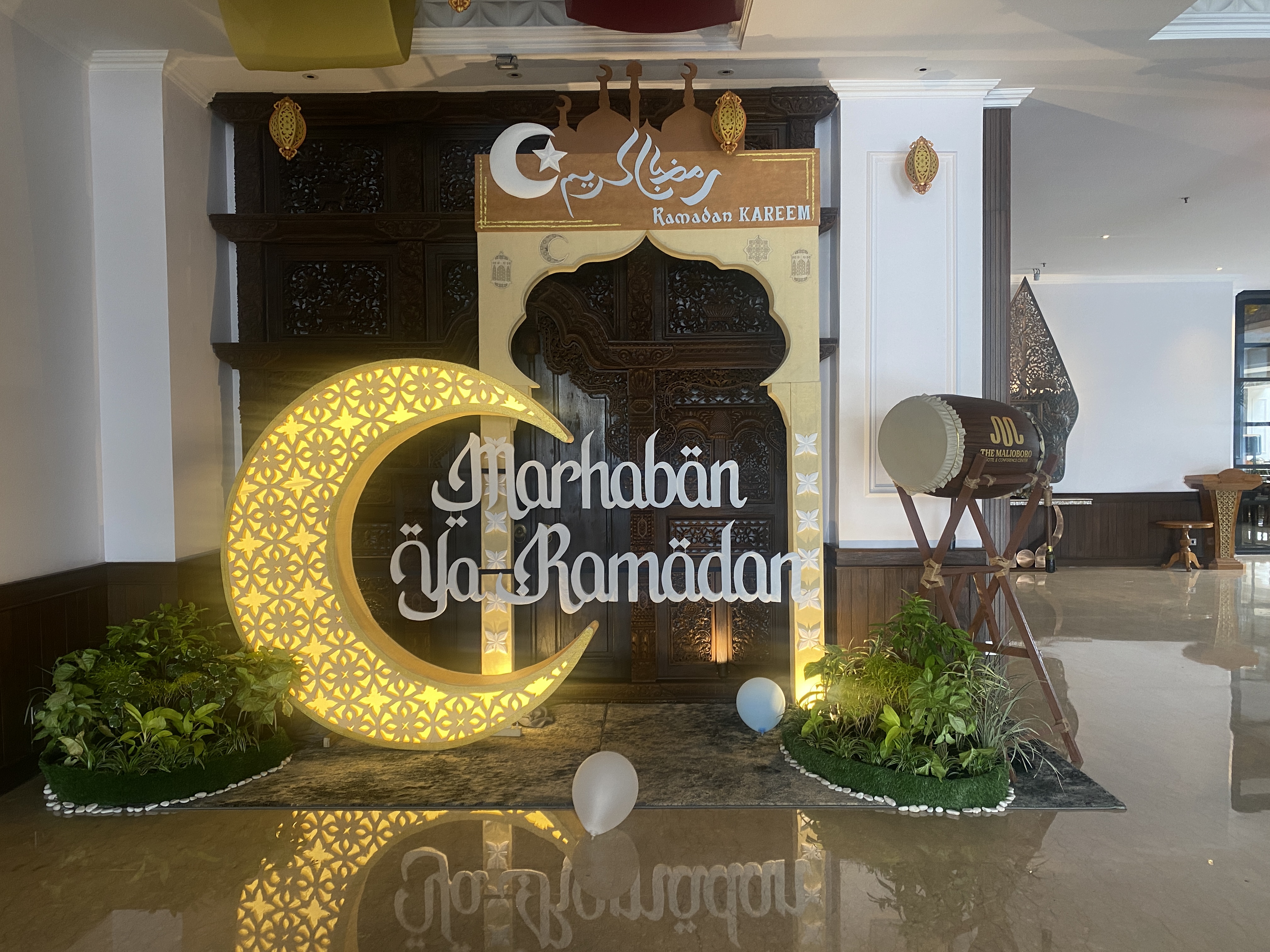 족자 역에서 10분 거리에 있는 말리보로 호텔, 태천이가 며칠 전에 예약해 둔 숙소다. 요즘이 이슬람의 라마단 기간임을 보여주고 있는 상징물이 호텔 로비의 끝부분에 위치해 있다.