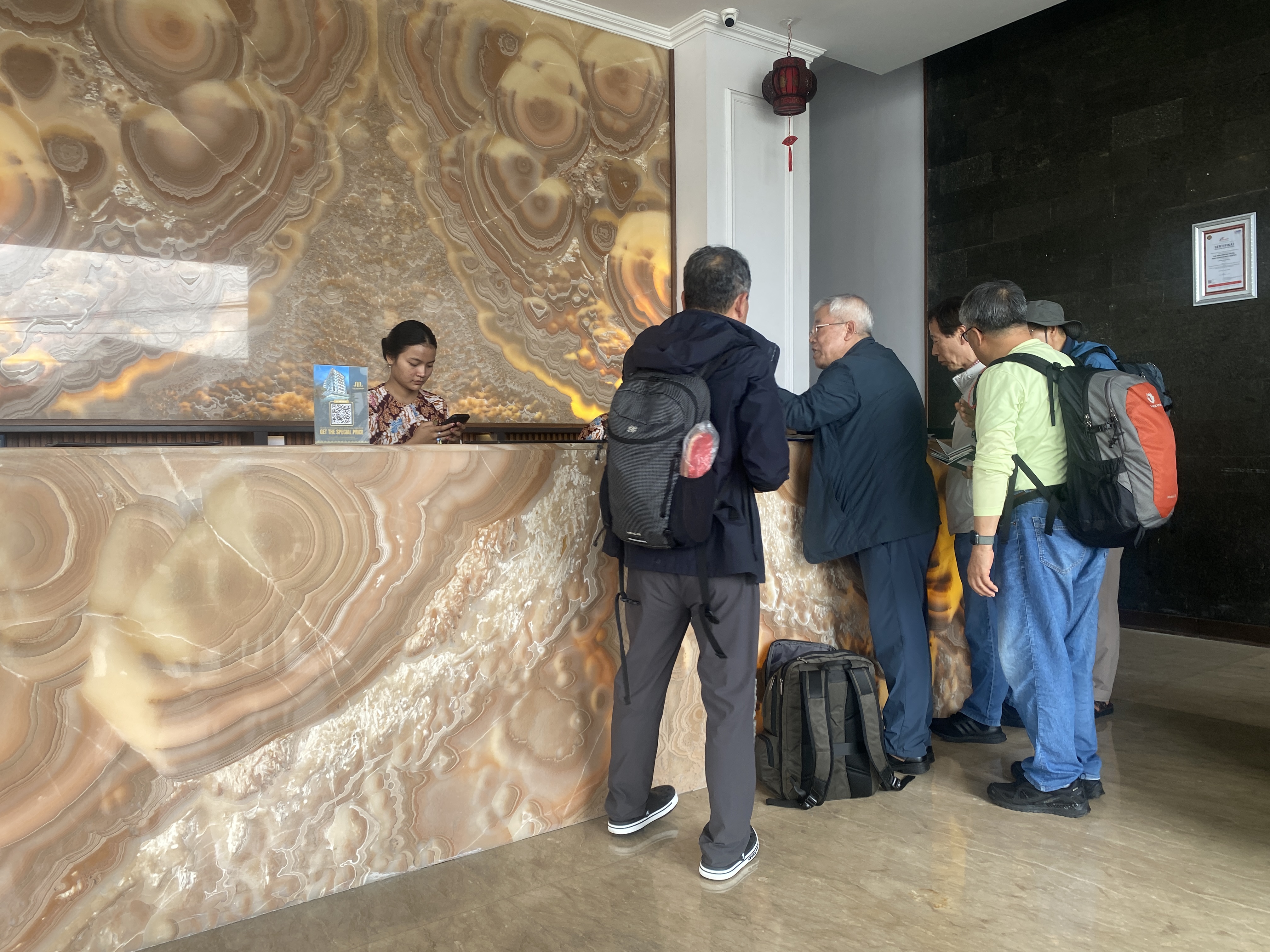 숙소를 나오기 전에 일찍 싸두었던 트렁크를 계단을 통해 높은 곳으로 끌고 올라오기가 쉽지 않았는데 이곳에서 봉사하는 분들이 고맙게도 일일이 차로 옮겨주었다. 며칠간 지켜봤지만 그들은 참 친절하고 착하다는 느낌을 받았다. 이틀 동안 시내에서 저녁 식사를 하고 어두운 경내로 들어올 때에도 약속이나 한 듯이 오토바이를 타고 우리 일행을 천천히 따라오면서 그 불빛으로 밤길을 환히 비쳐주었던 분들이다. 일일이 말은 통하지 않아도 그 따스한 배려심이 한없이 고마웠다.