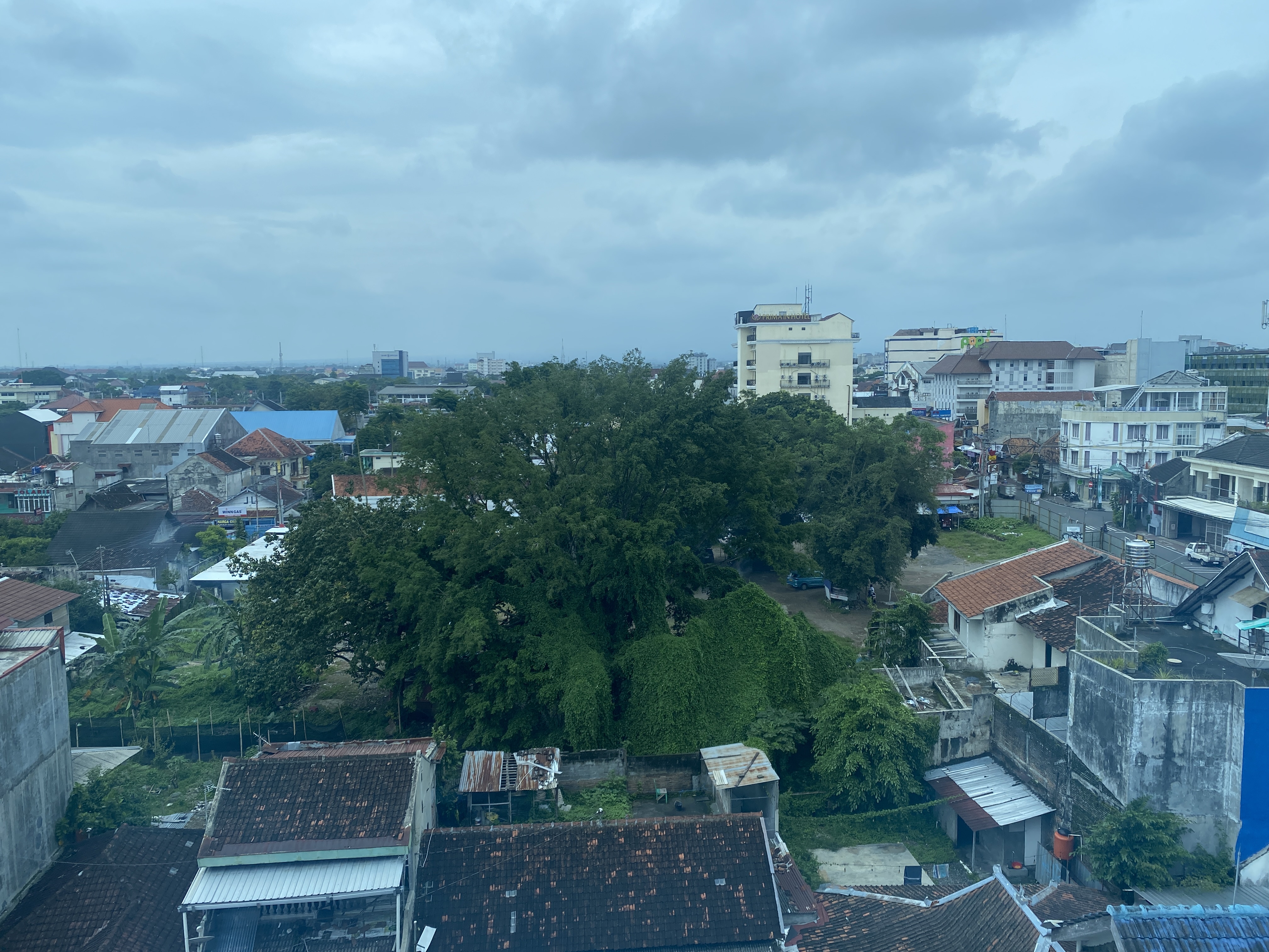 호텔 617호에서 내려다 보는 족 자카르타 시내의 모습, 큰 건물이 많지 않지만 퍽 평화로워 보인다. 여장을 풀고 곧 힌두교 사원인 프람바난 사원으로 이동하기로 되어 있어 잠시 머물다가 간단한 짐을 챙겨 로비로 가야 한다.