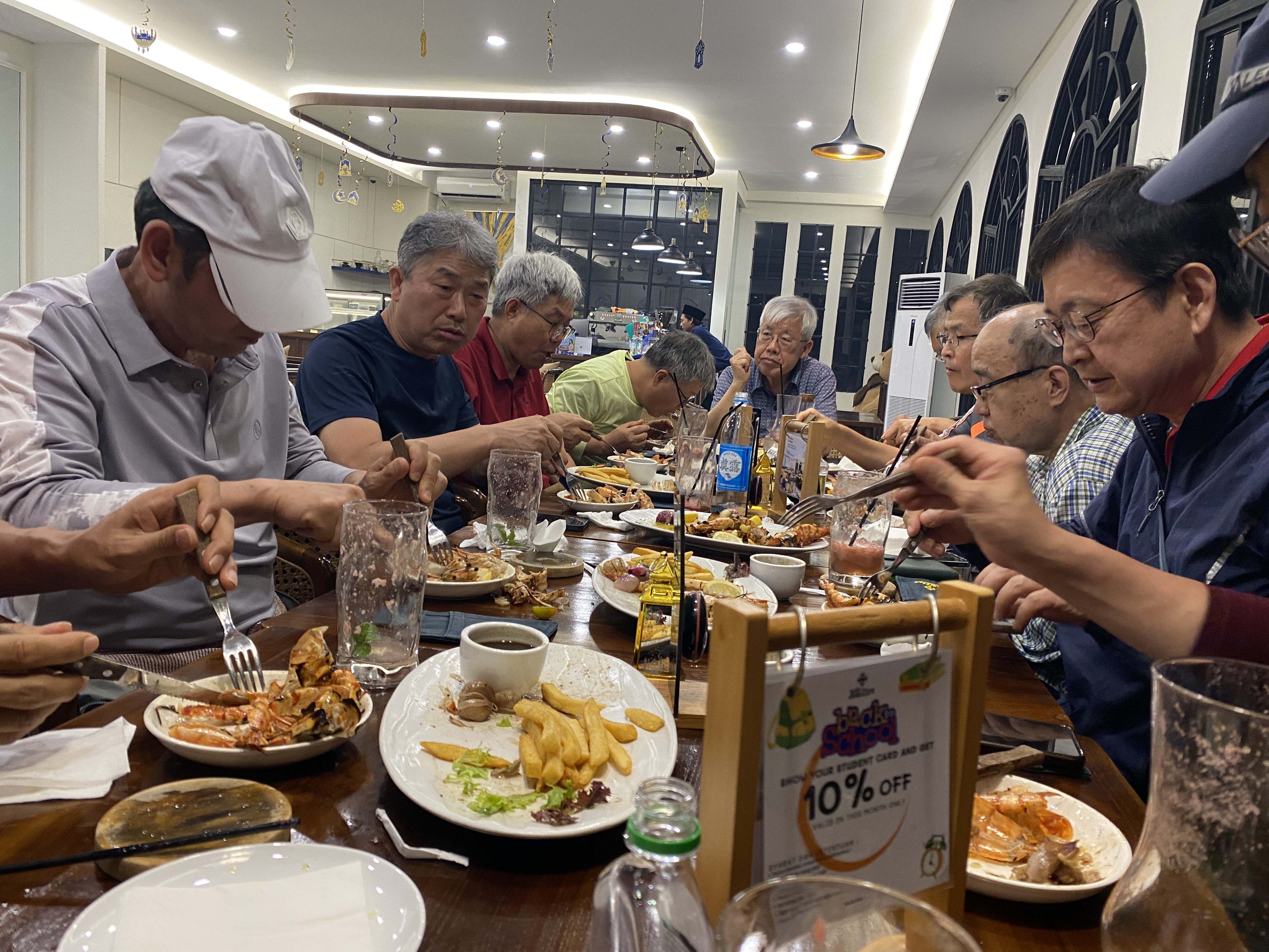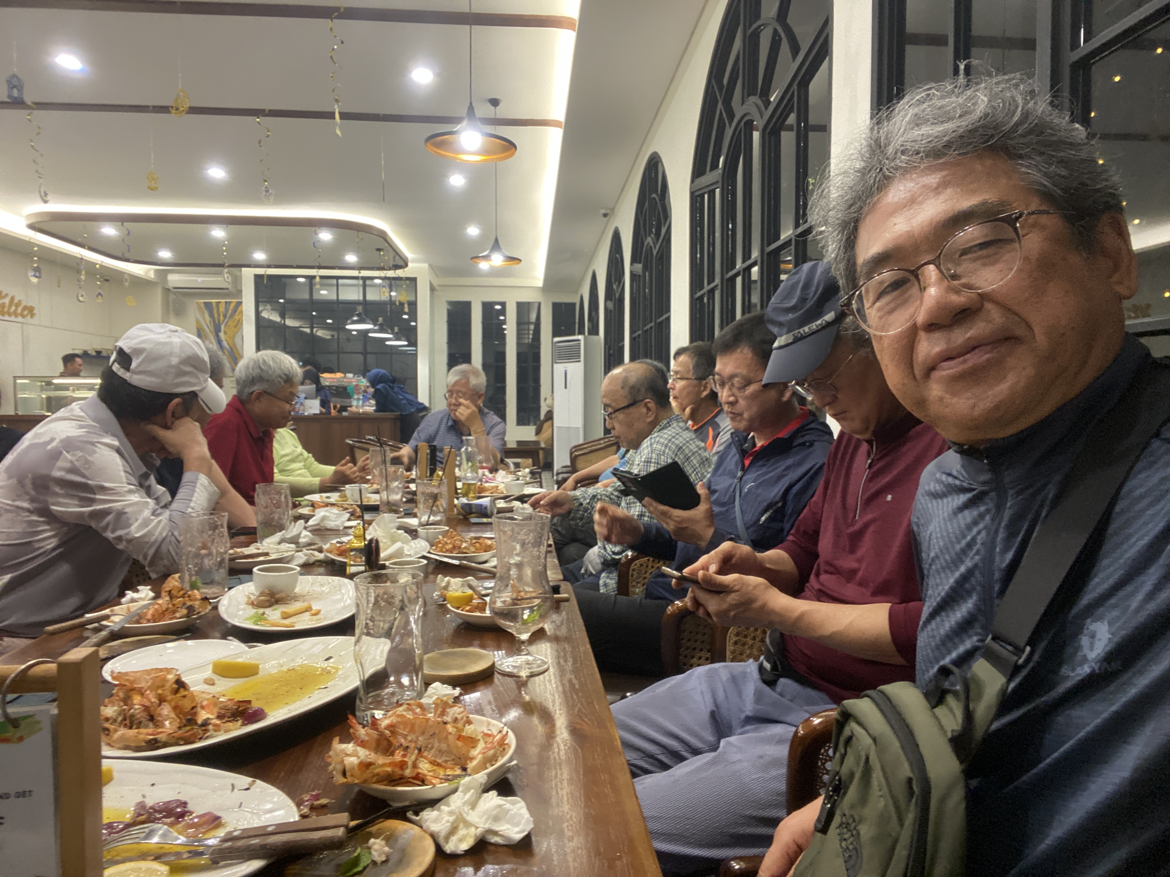 저녁 식사는 호텔 주변의 괜찮은 식당을 찾아서 하기로 했는데 마침 분위기 좋은 레스토랑이 있어서 들어갔다. 서빙하는 여인의 아름다운 미소가 썩 마음에 들었는지 모두들 만족해 하는 것 같았다. 망고 주스, 수박 주스를 비롯해서 음료로 목을 축인 뒤에 소고기 스테이크, 피자, 킹크랩 등 예사롭지 않은 음식들을 주문해서 배불리 먹었다. 레스토랑 주인과 직원들도 한국사람들의 엄청난 식욕에 매우 놀랐을 것이다.
