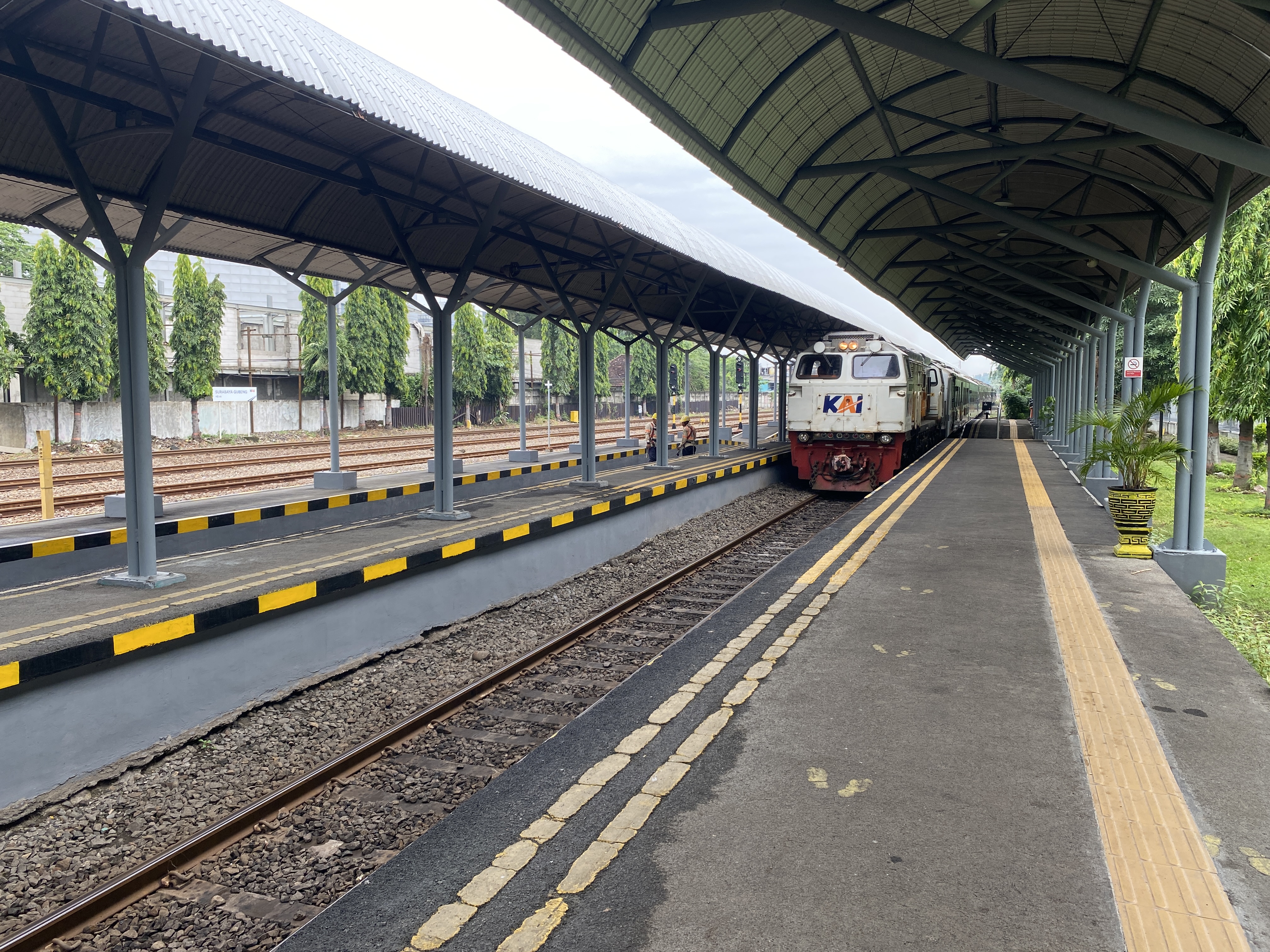 수라바야 역으로 진입하는 열차의 모습, 왜 하필이면 이름이 KAI일까? 우리나라에서는 한국항공우주산업을 가리키는 말인데..... KF-21을 수출하는 기업