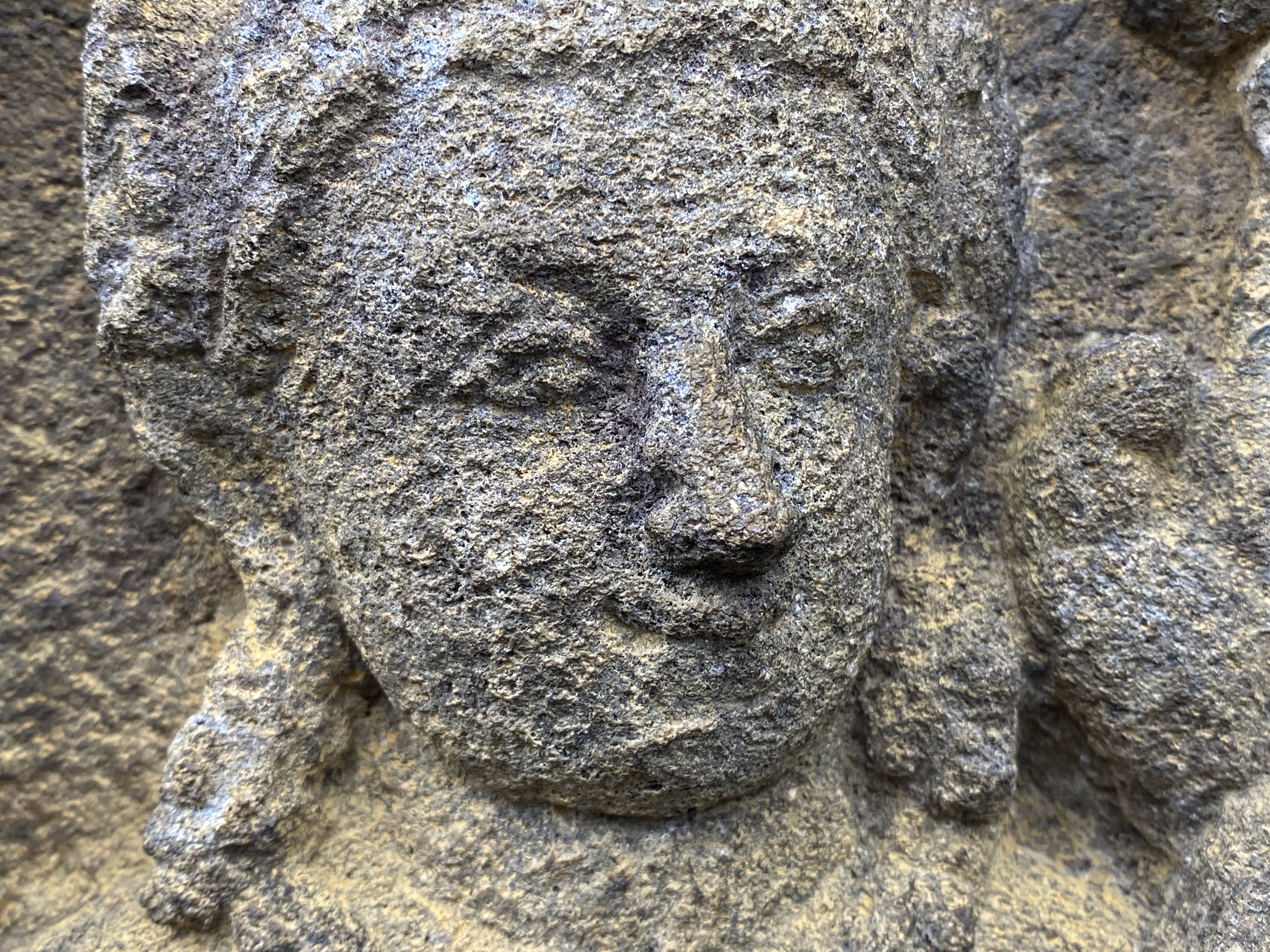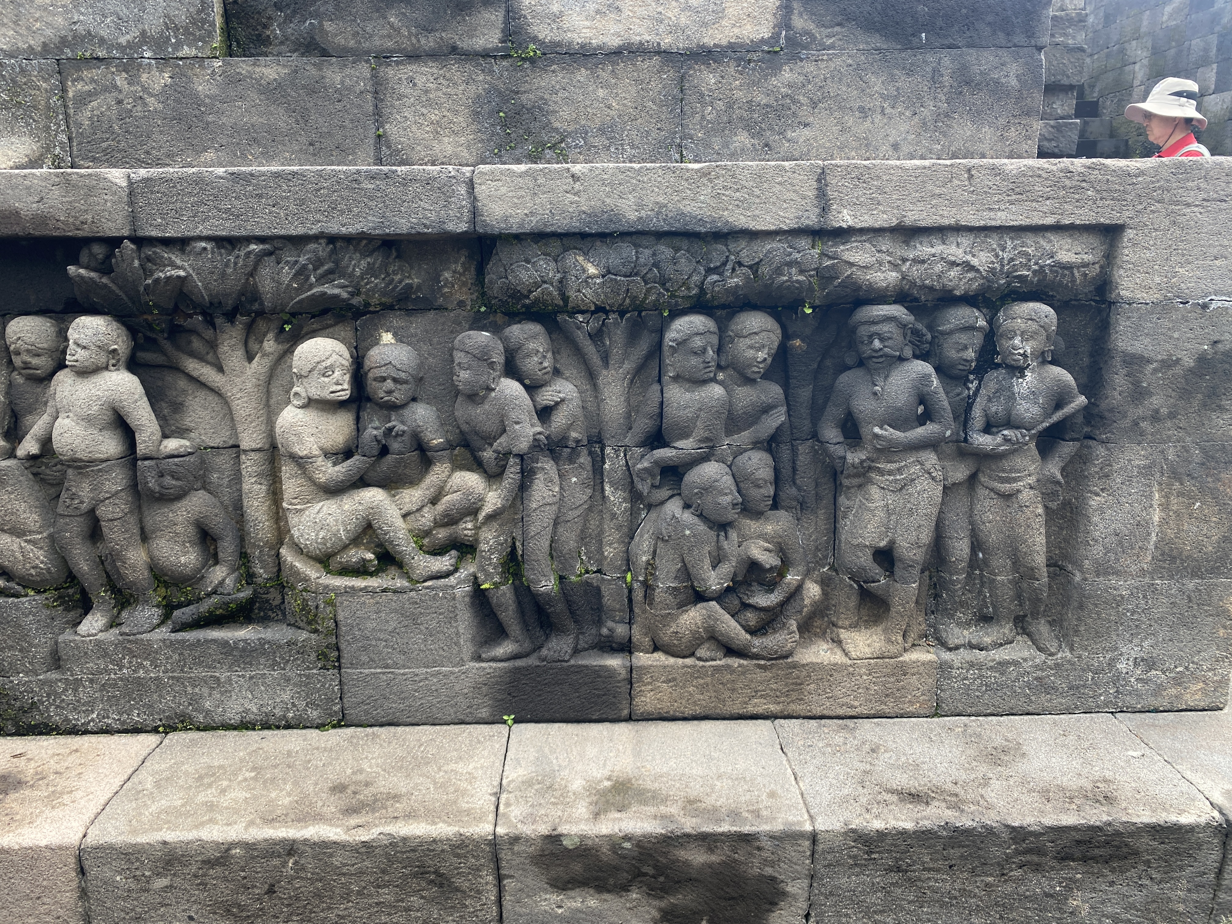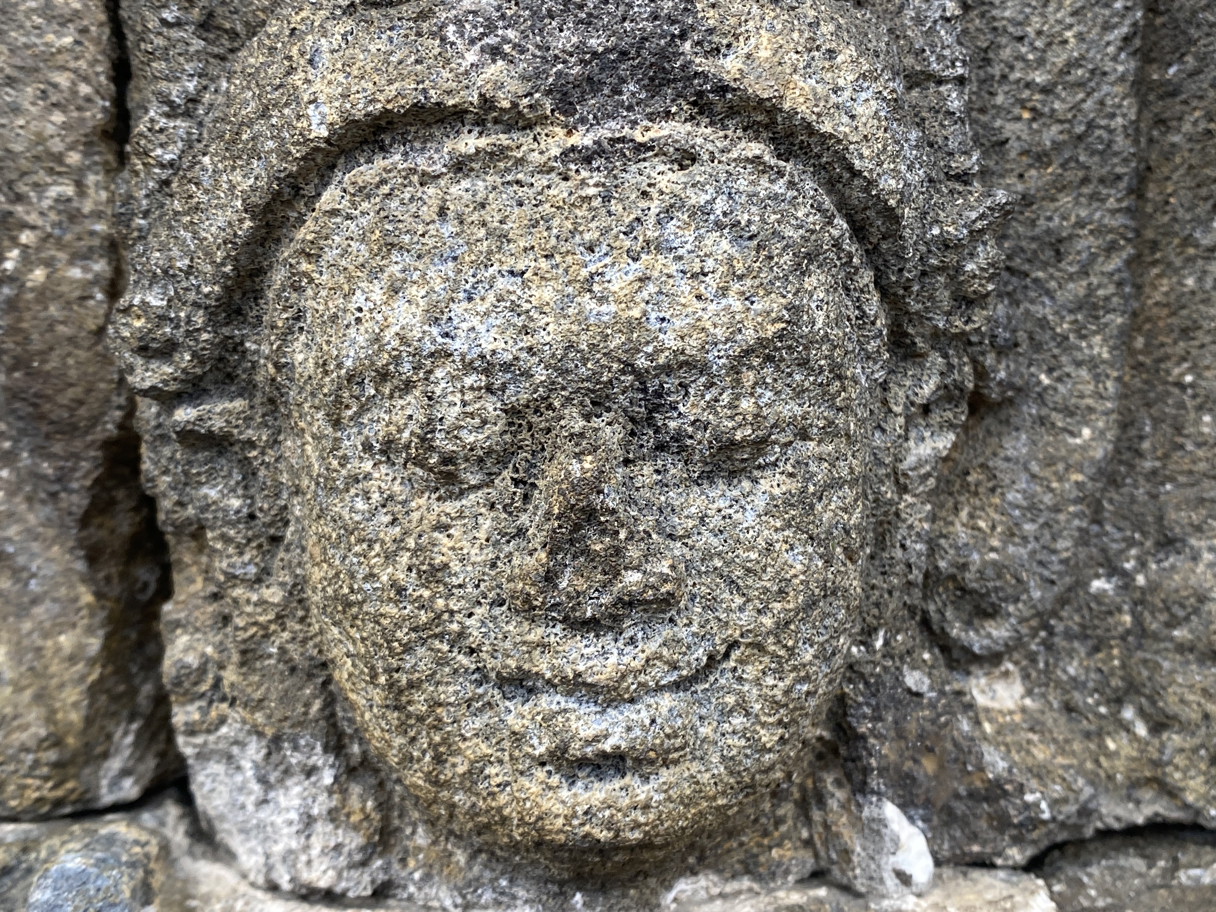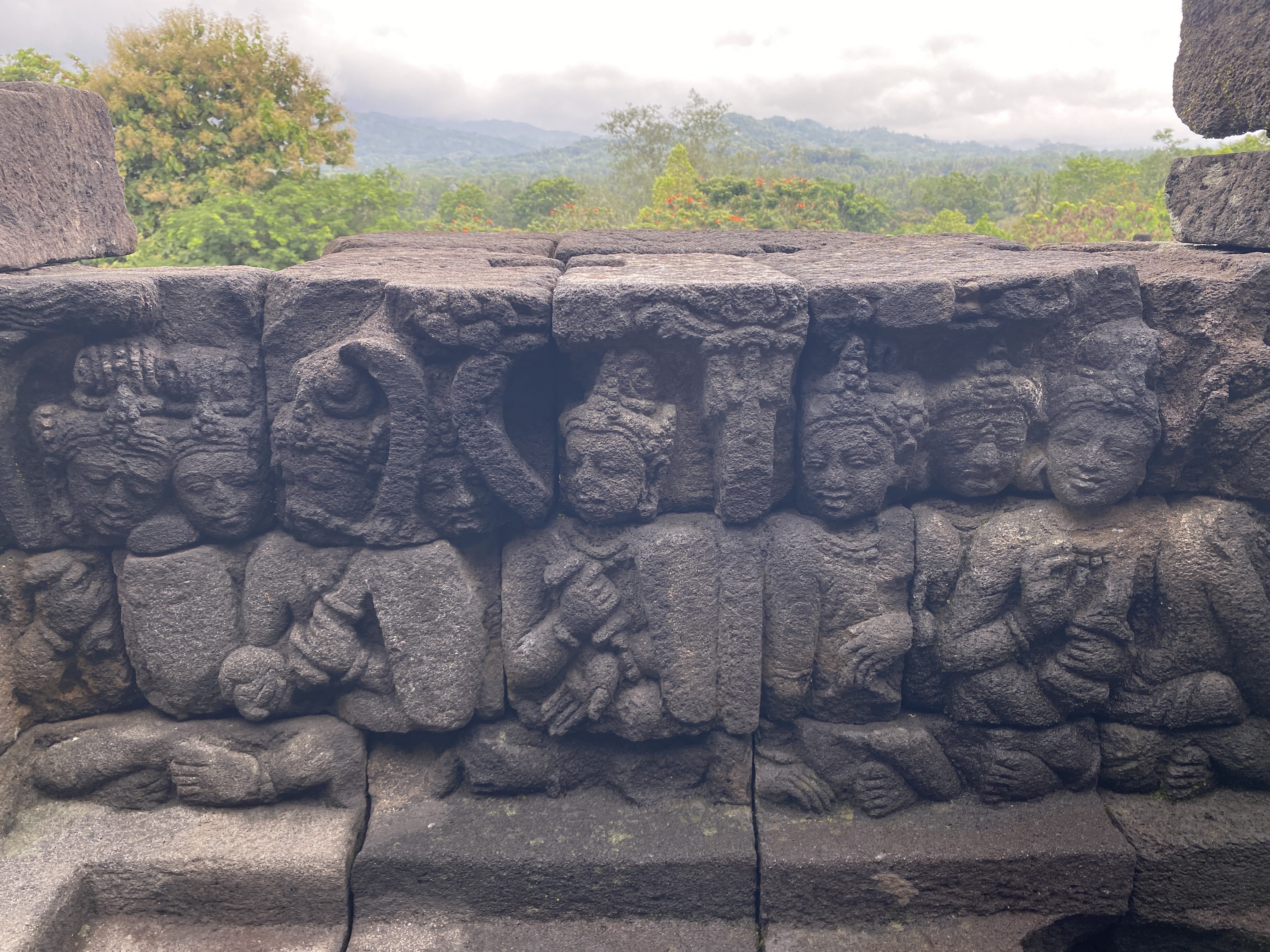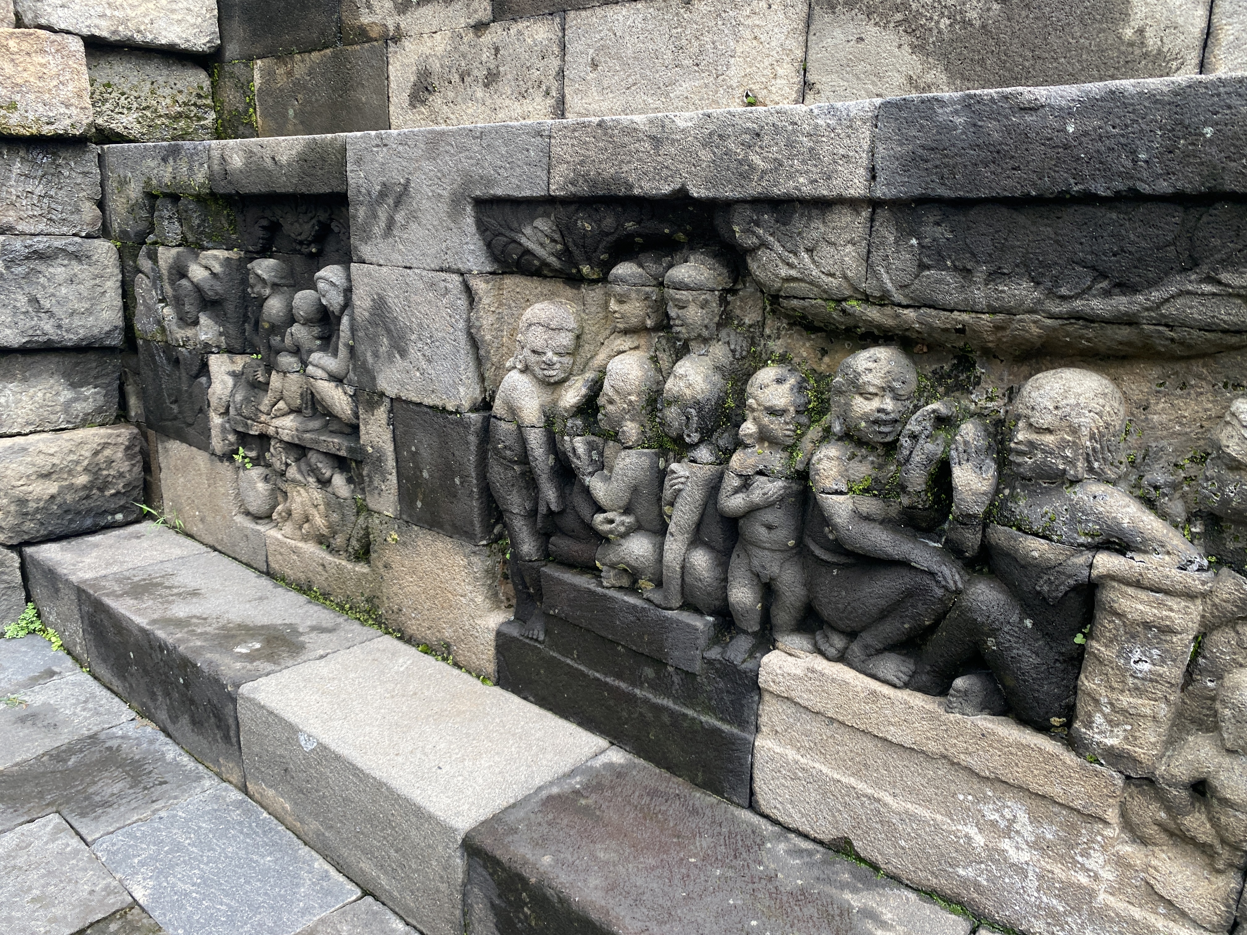부조의 정교한 조각 솜씨가 그저 놀라울 뿐이다. 살아 움직이고 있는 듯하다. 대체로 얼굴과 몸매가 통통하고 표정 또한 평화로워서 바라보는 이들도 마음이 가벼워진다. 아래 사진으로 보이는 얼굴 모습들은 평화로움의 극치가 아닐까 한다. 그 눈매와 입술에서 빚어지는 미소 하나하나가 너무 정겹지 않는가? 살며시 다가가 볼에 입을 맞추기라도 한다면 금방이라도 환하게 웃으며 뭔지모를 메시지를 던져줄 것만 같다.