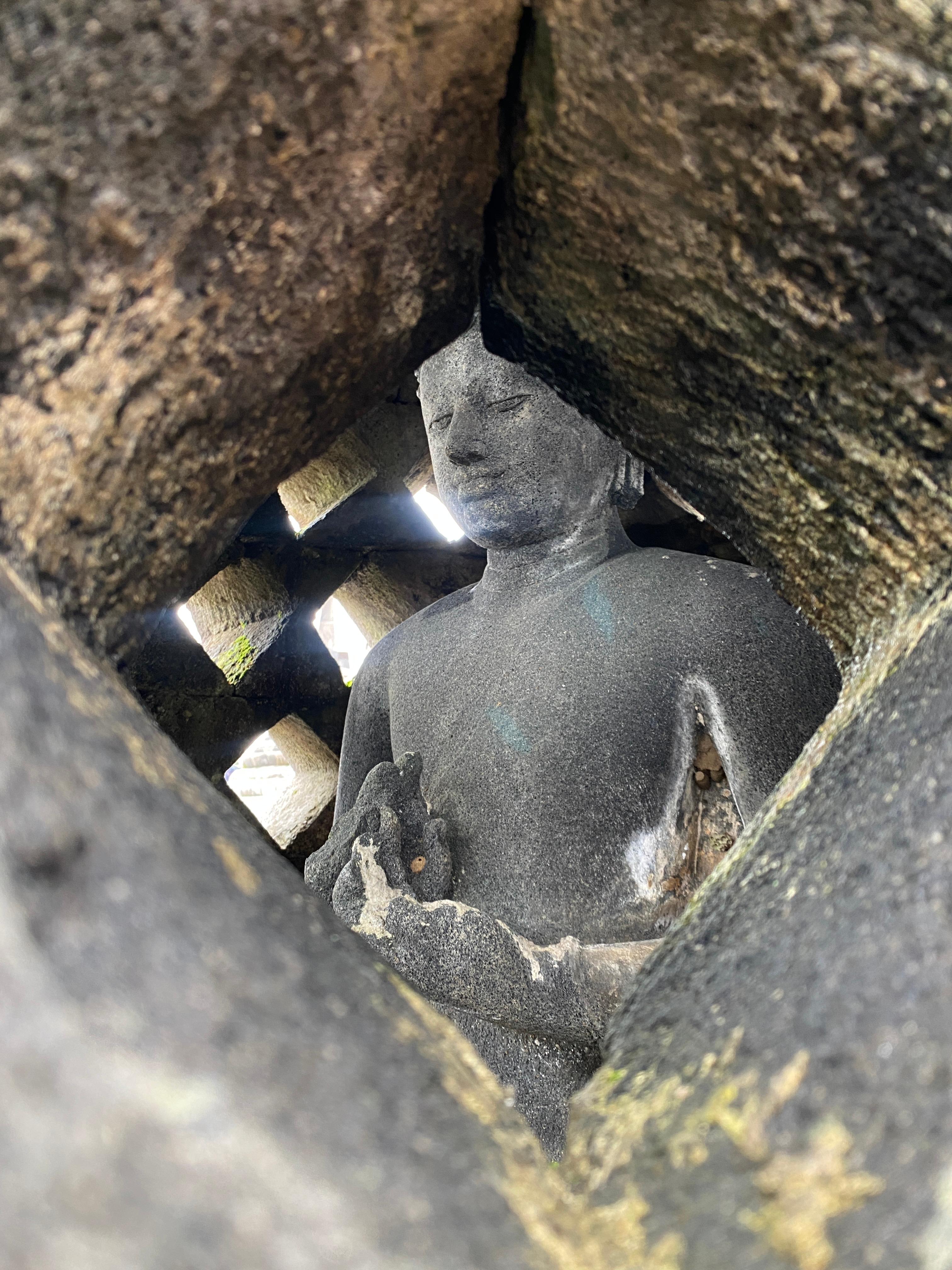 네모난 구멍 안에 들어앉은 부처님의 표정이 참 자애롭다.