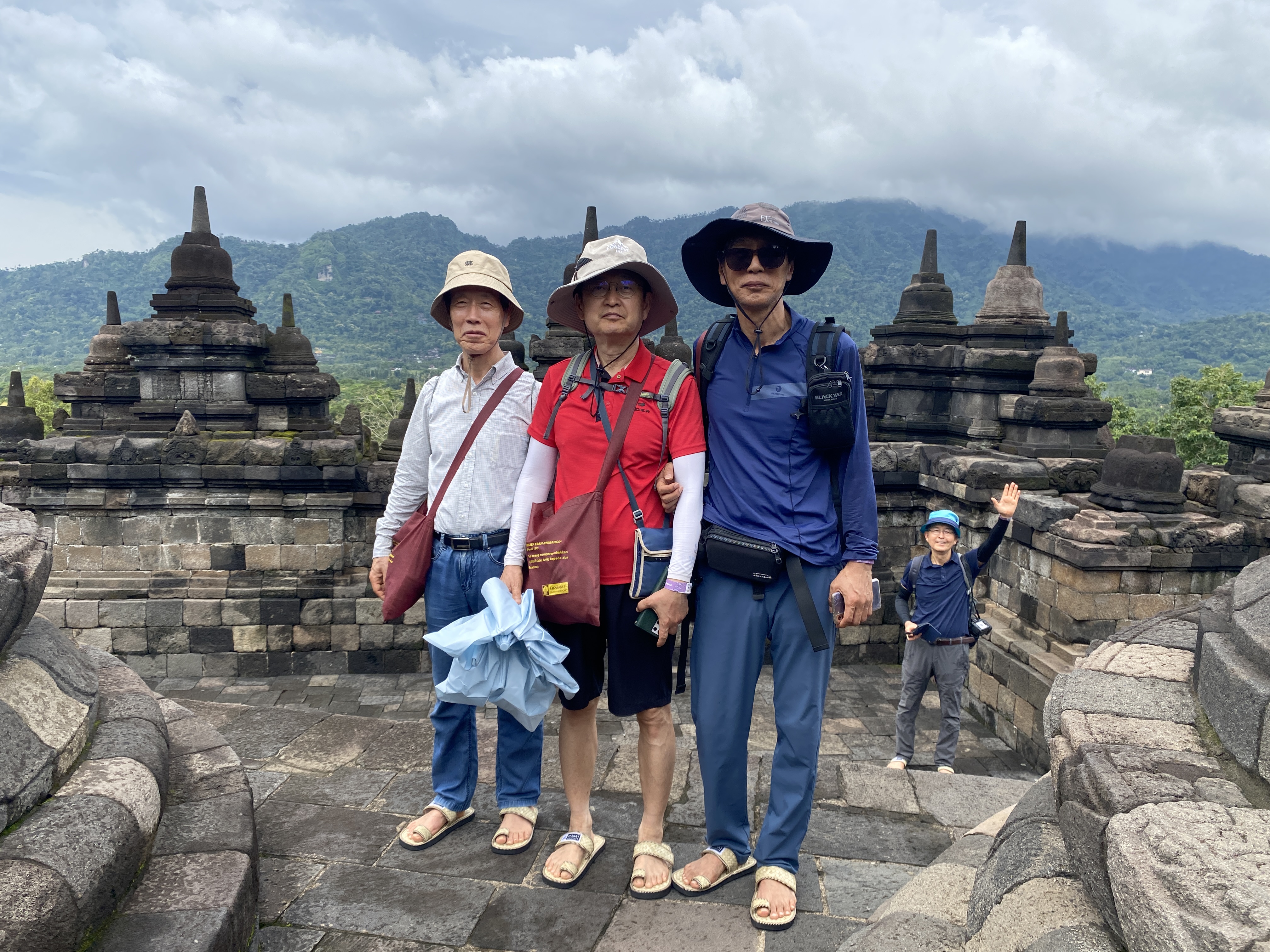 보로부두루 사원을 모두 둘러보았으니 또 한장의 기념 사진을 남겨기고 떠나야 하지 않을까? 똑같은 신발을 신은 맨발의 청춘들, 아직은 멋을 잃지 않고 사는 풍류객들 같아서 참 좋소! 우린 짧은 7일간이었지만 마음이 서로 잘 통했잖소?^^