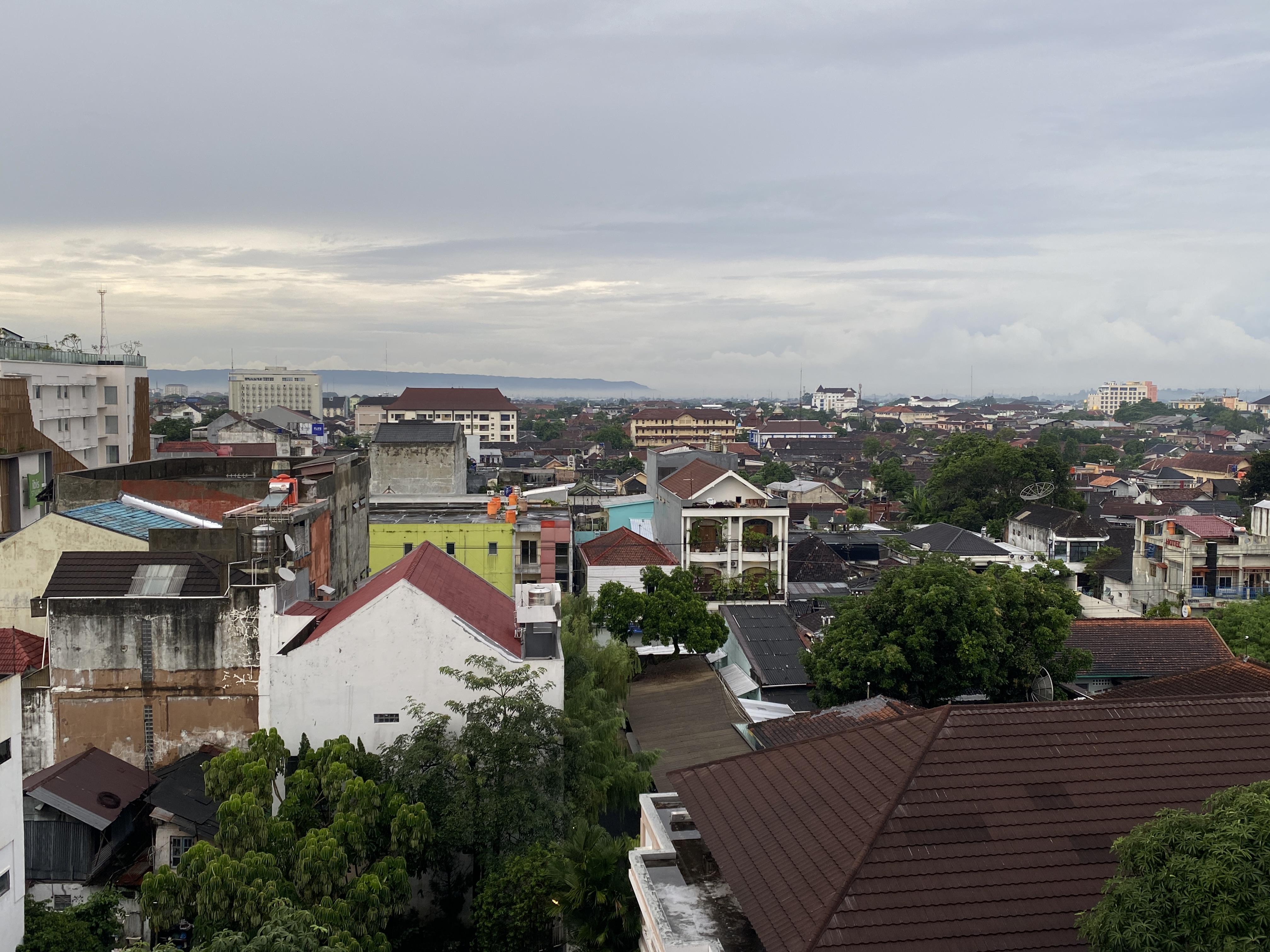 호텔의 6층에서 내려다 보는 풍광, 오늘도 구름이 잔뜩 끼어 있다.